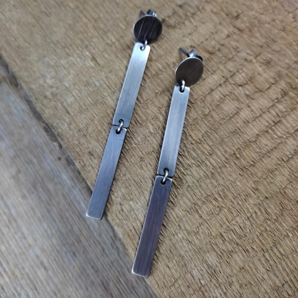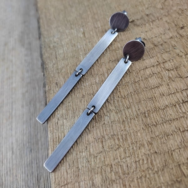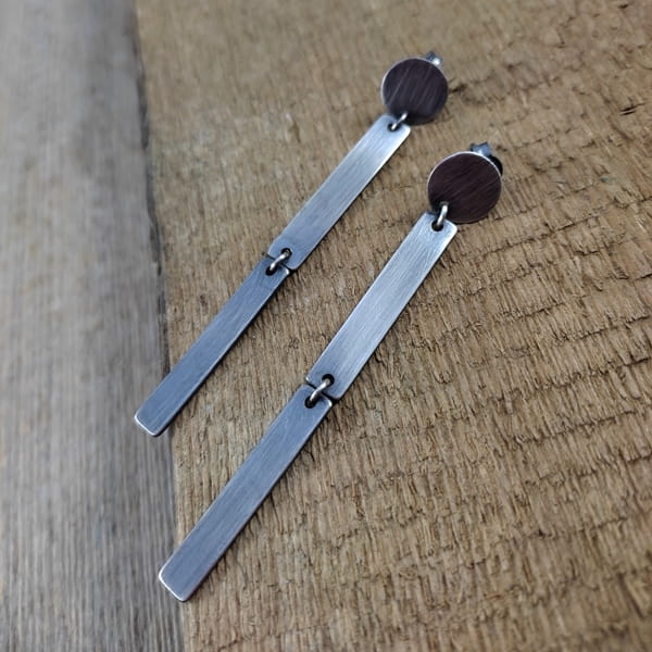 Kolczyki wykonane ze srebra 925, oksydowanego i wypolerowanego. Całkowita długość kolczyków wynosi ok. 7 cm. Elegancko zapakowane.