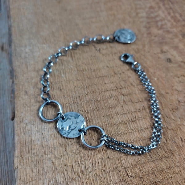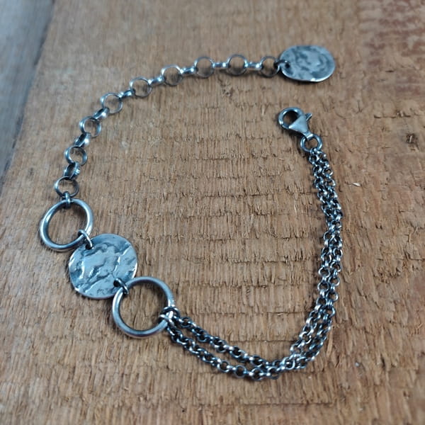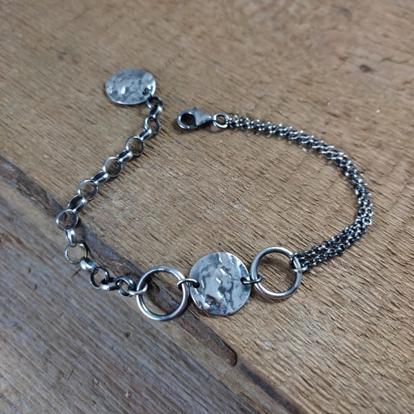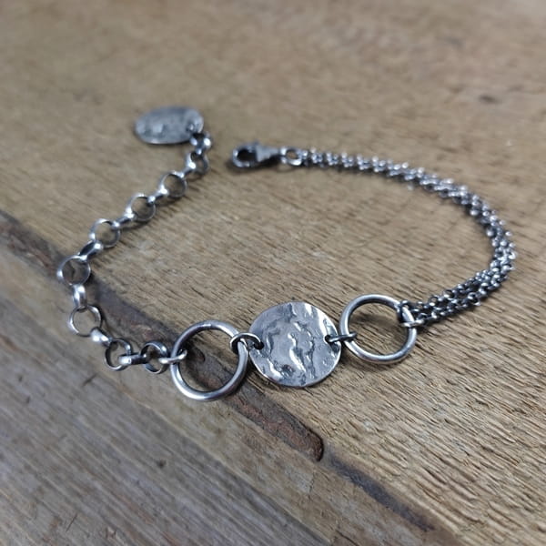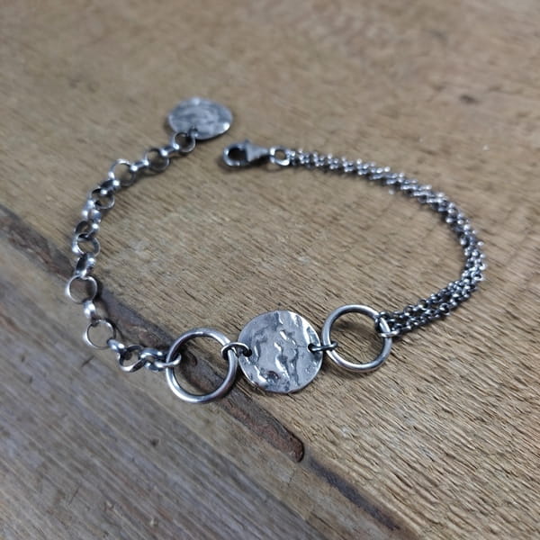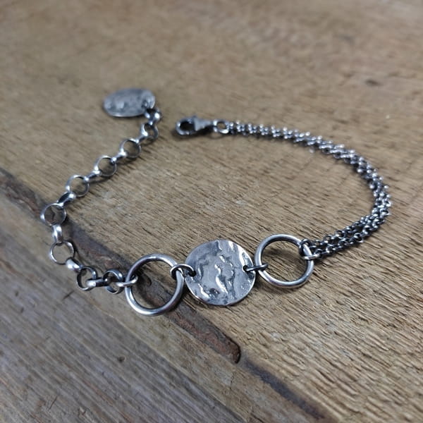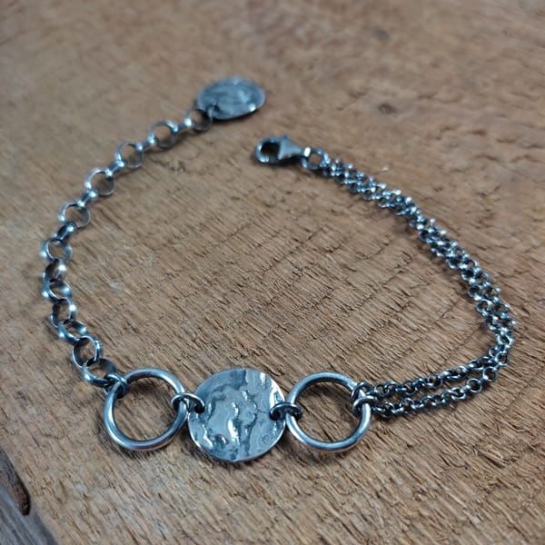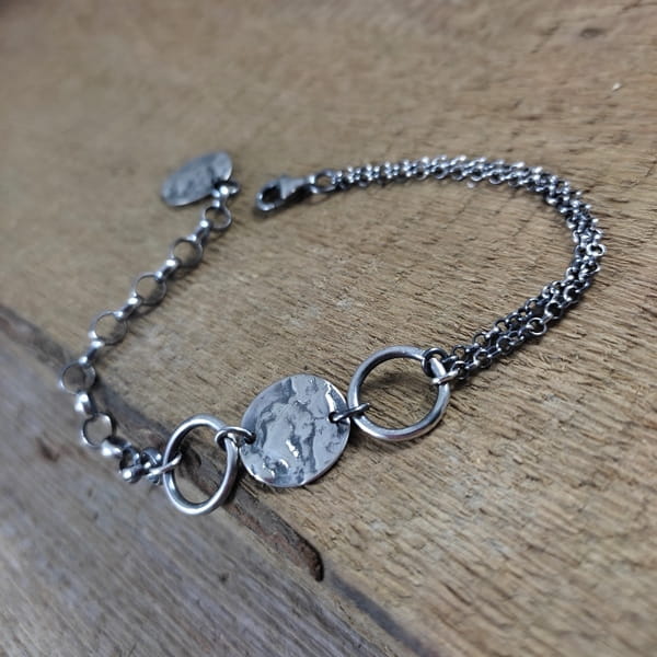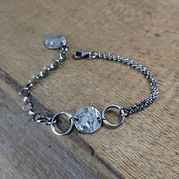 Bransoletka wykonana ze srebra próby 925, oksydowanego i wypolerowanego.