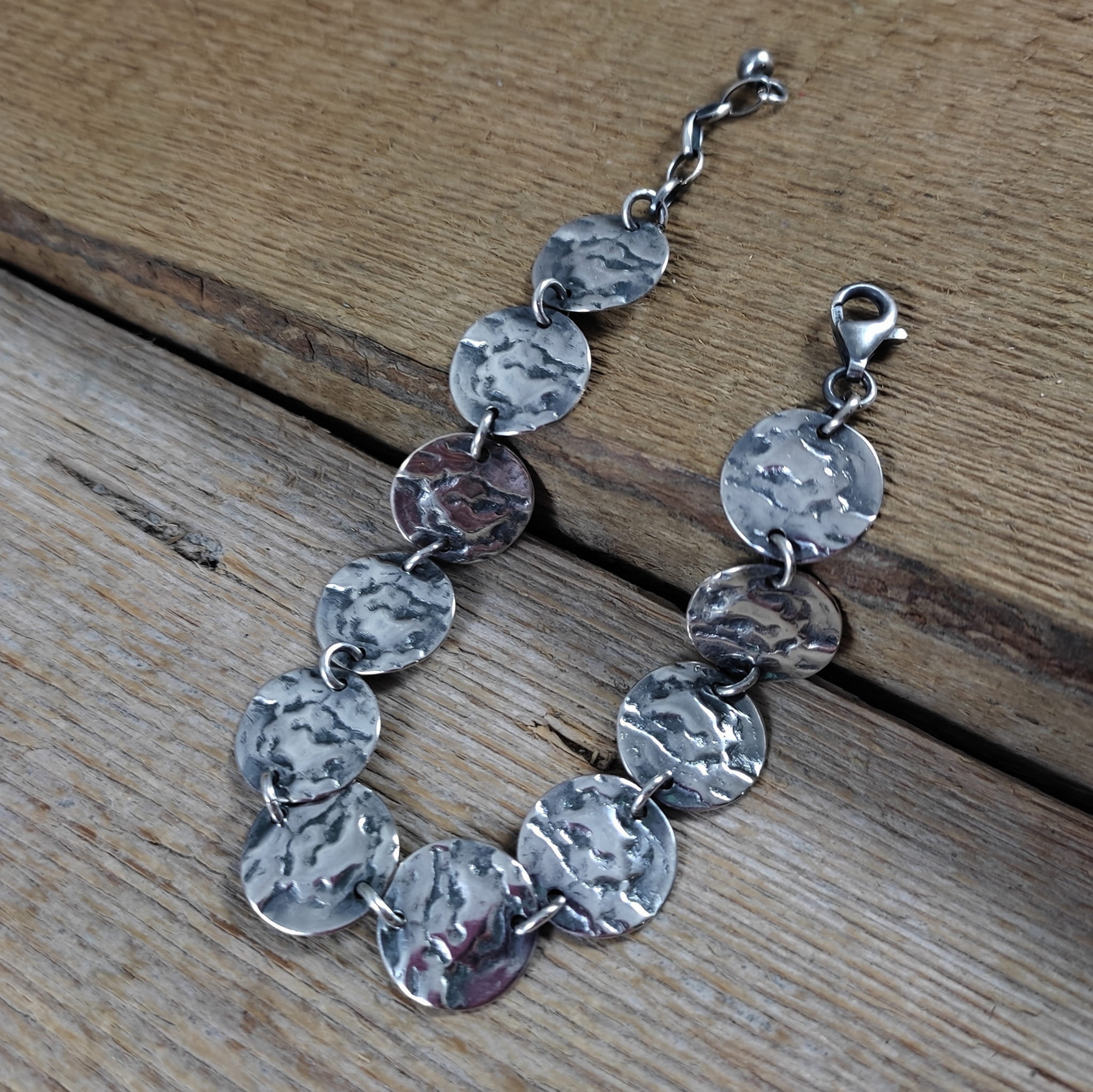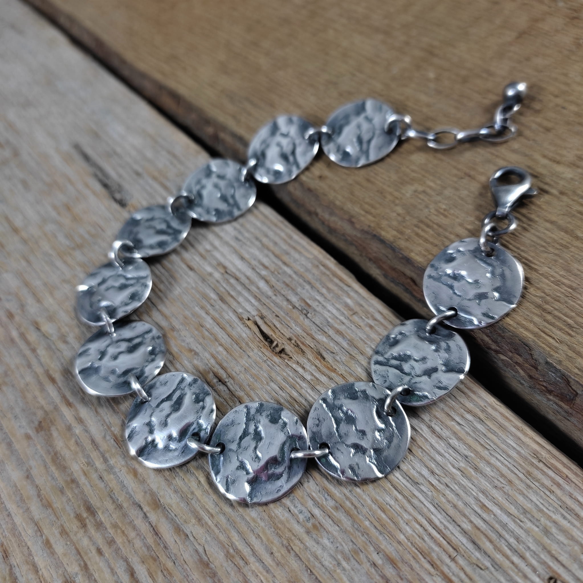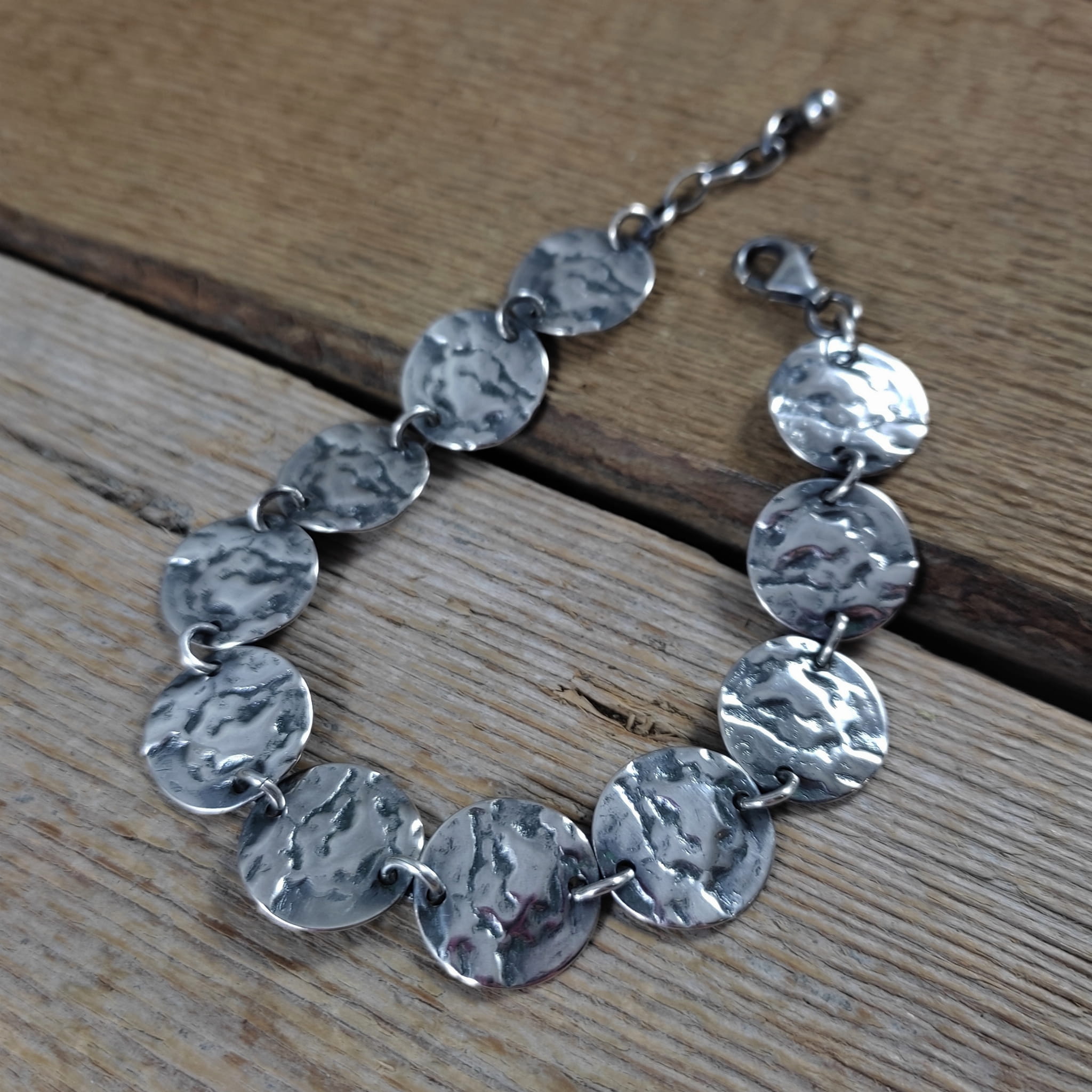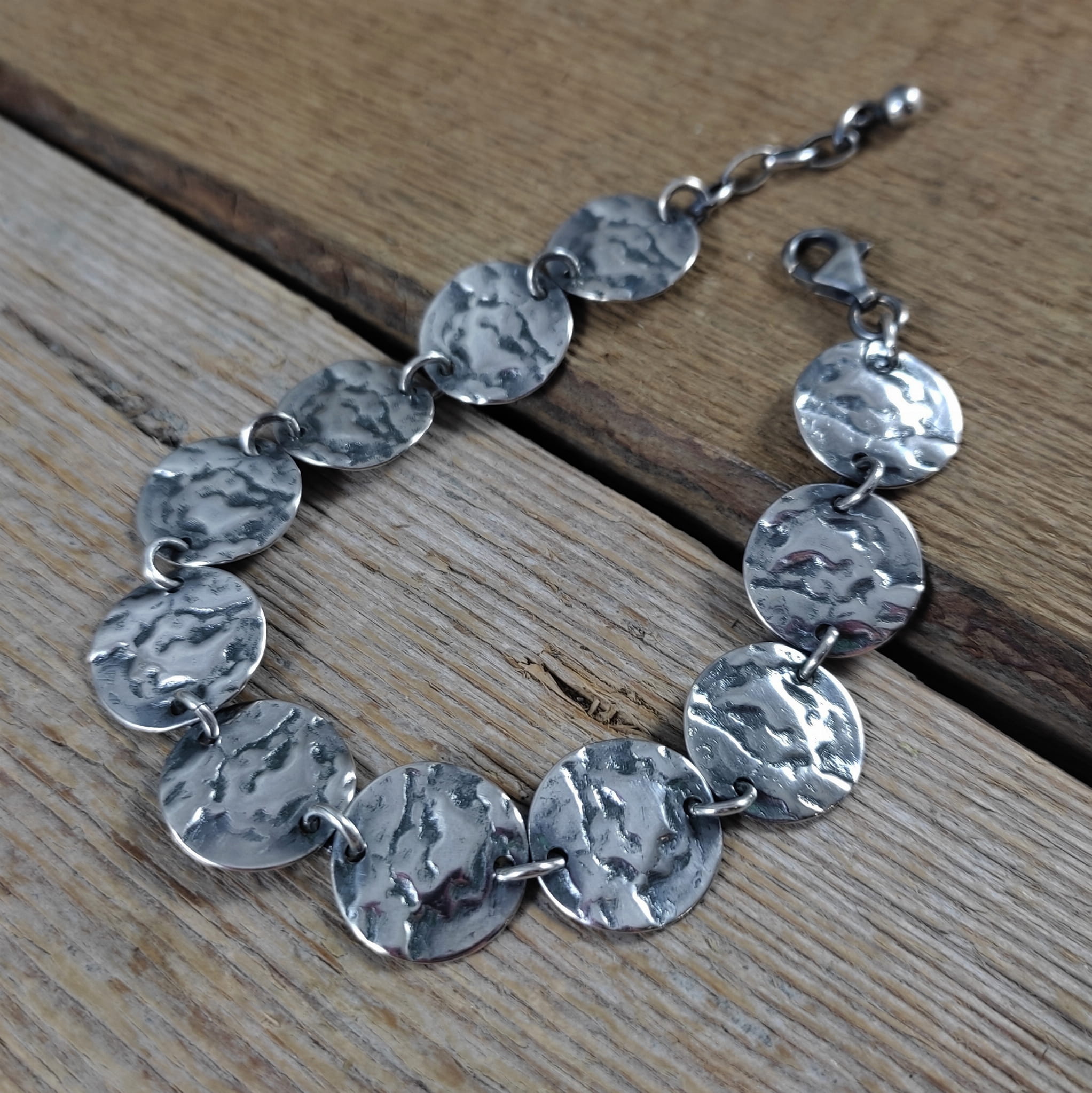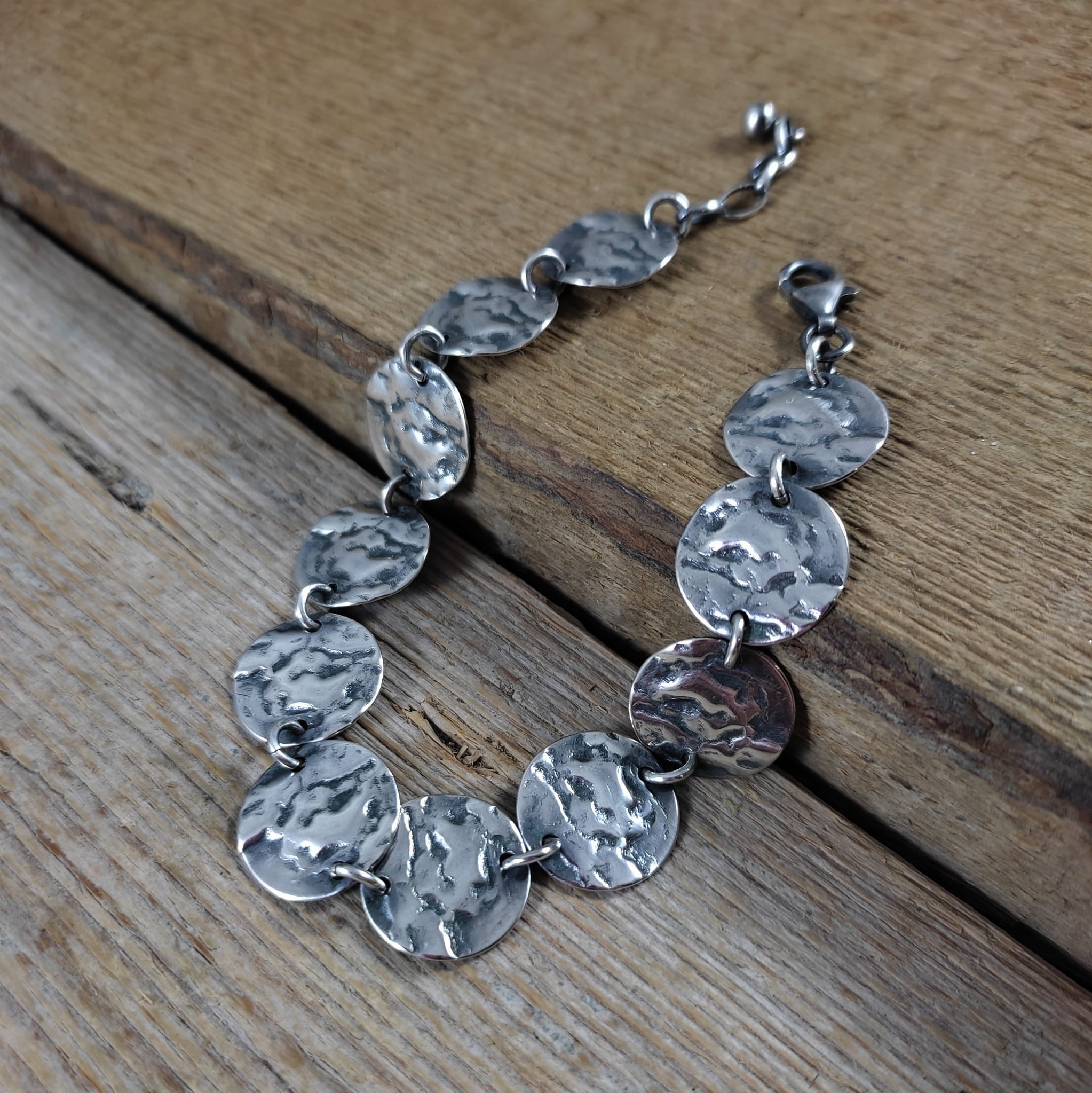 Bransoletka wykonana ze srebra próby 925, oksydowanego i wypolerowanego.