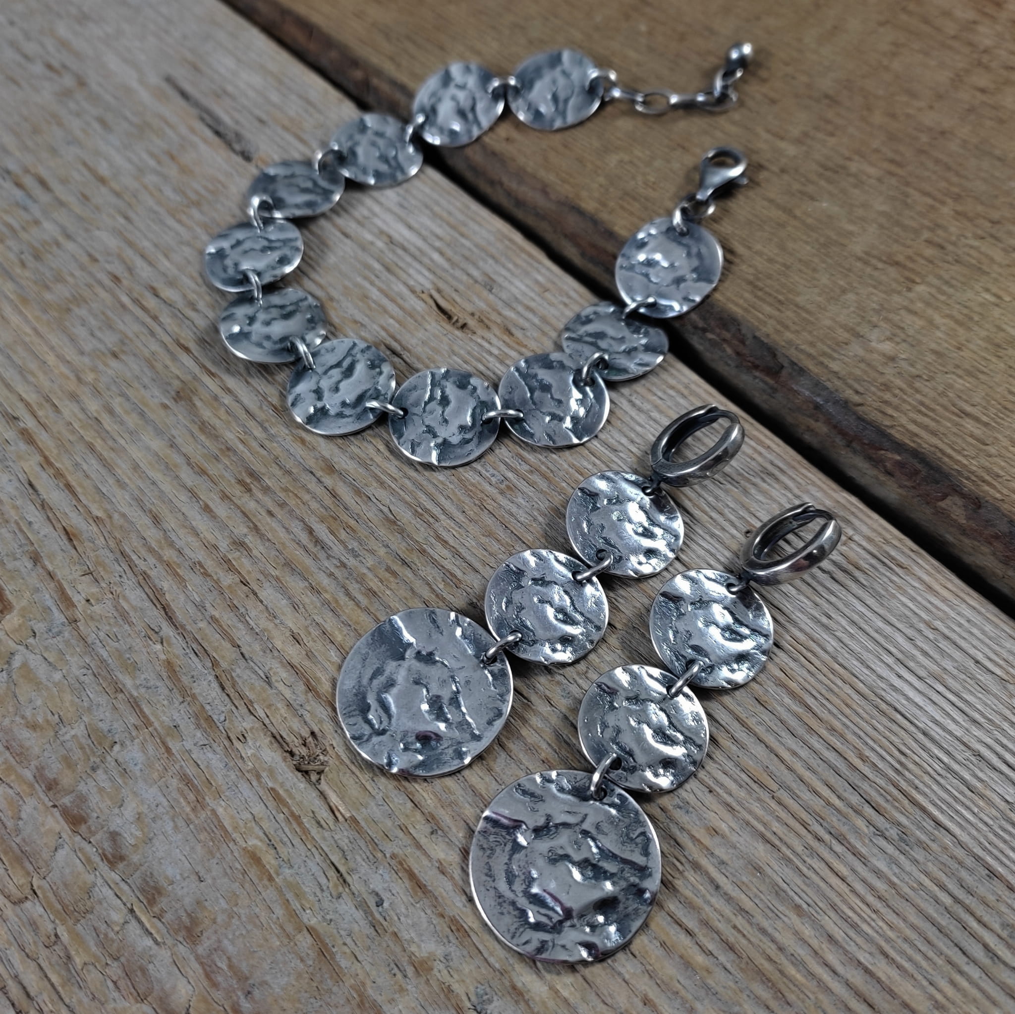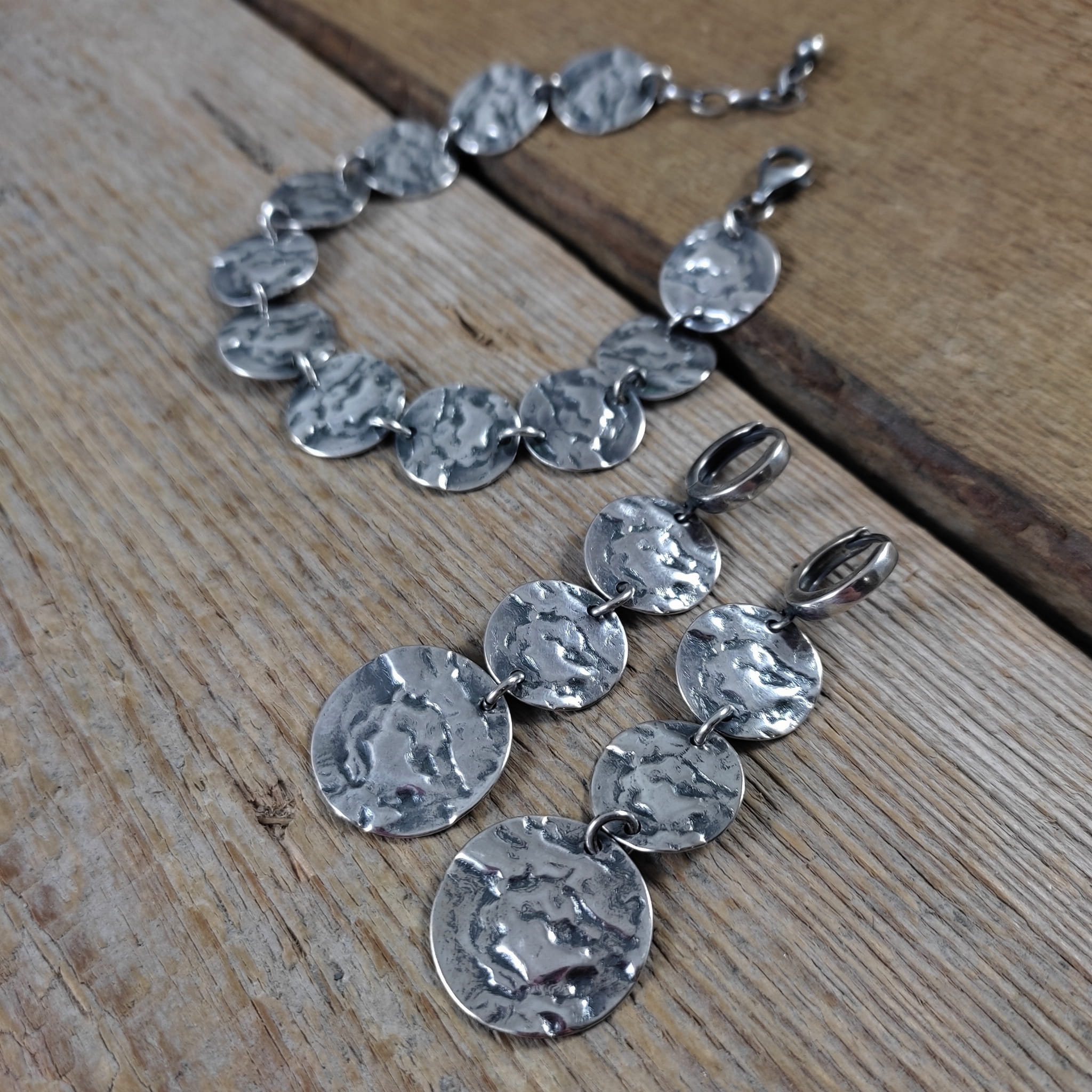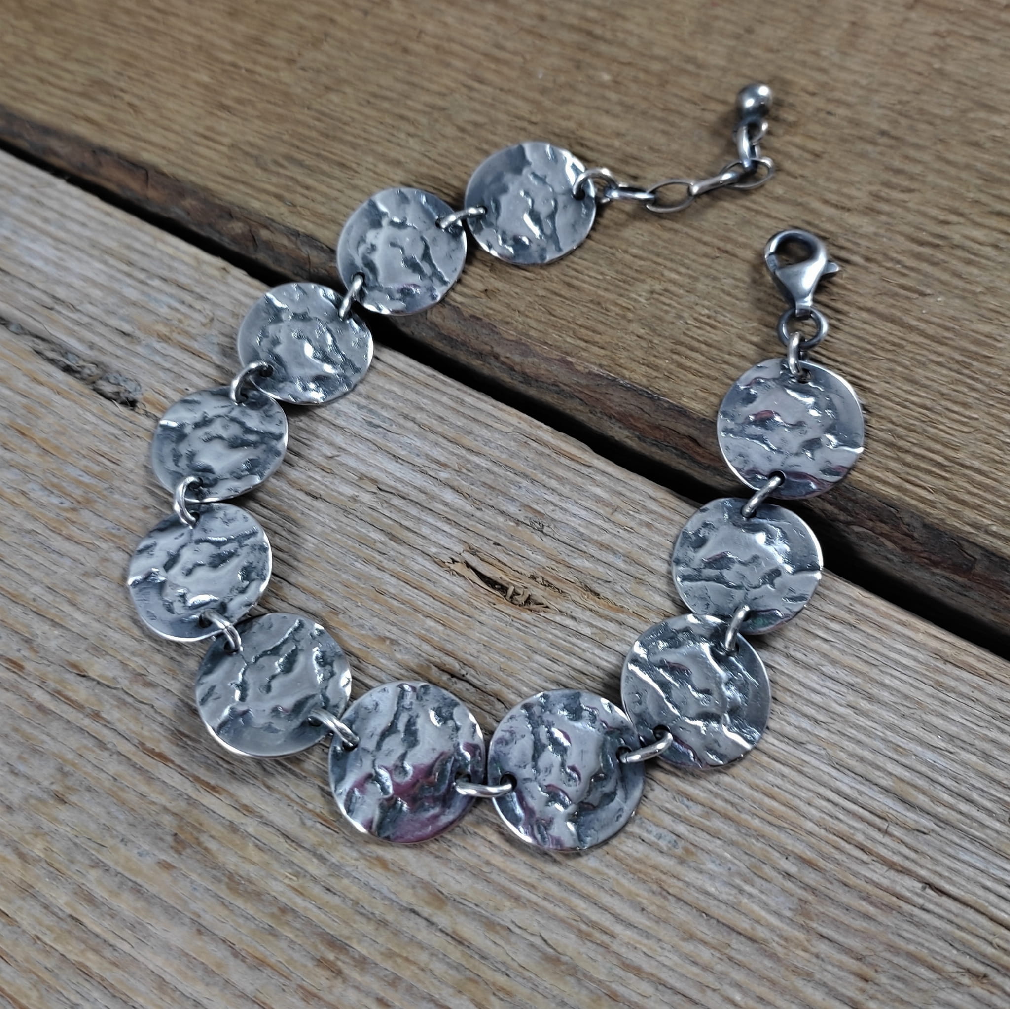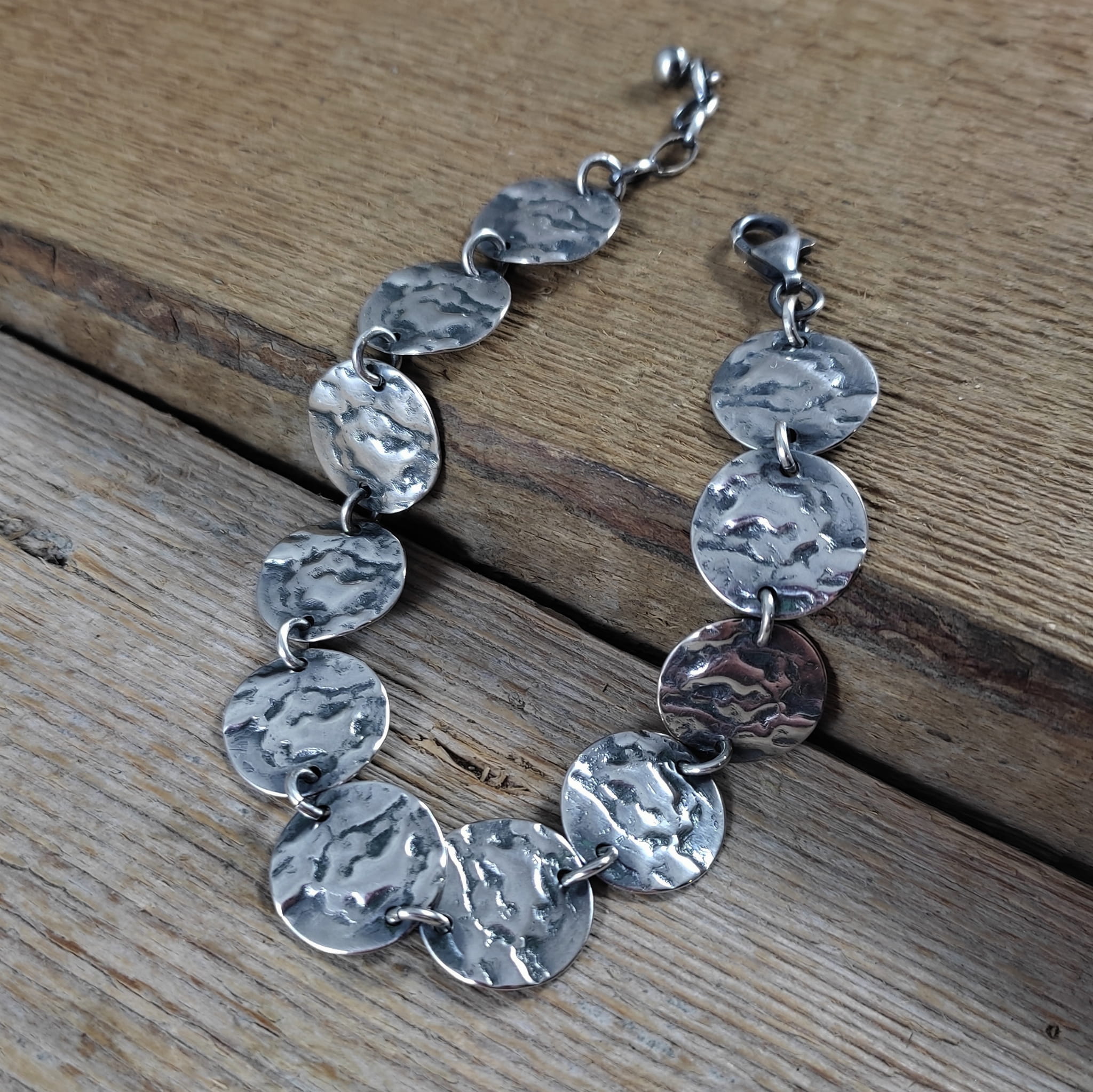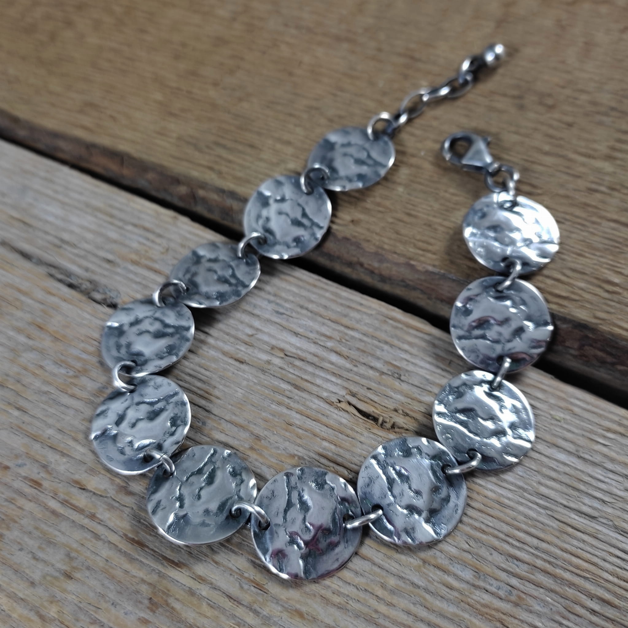 Bransoletka wykonana ze srebra próby 925, oksydowanego i wypolerowanego.