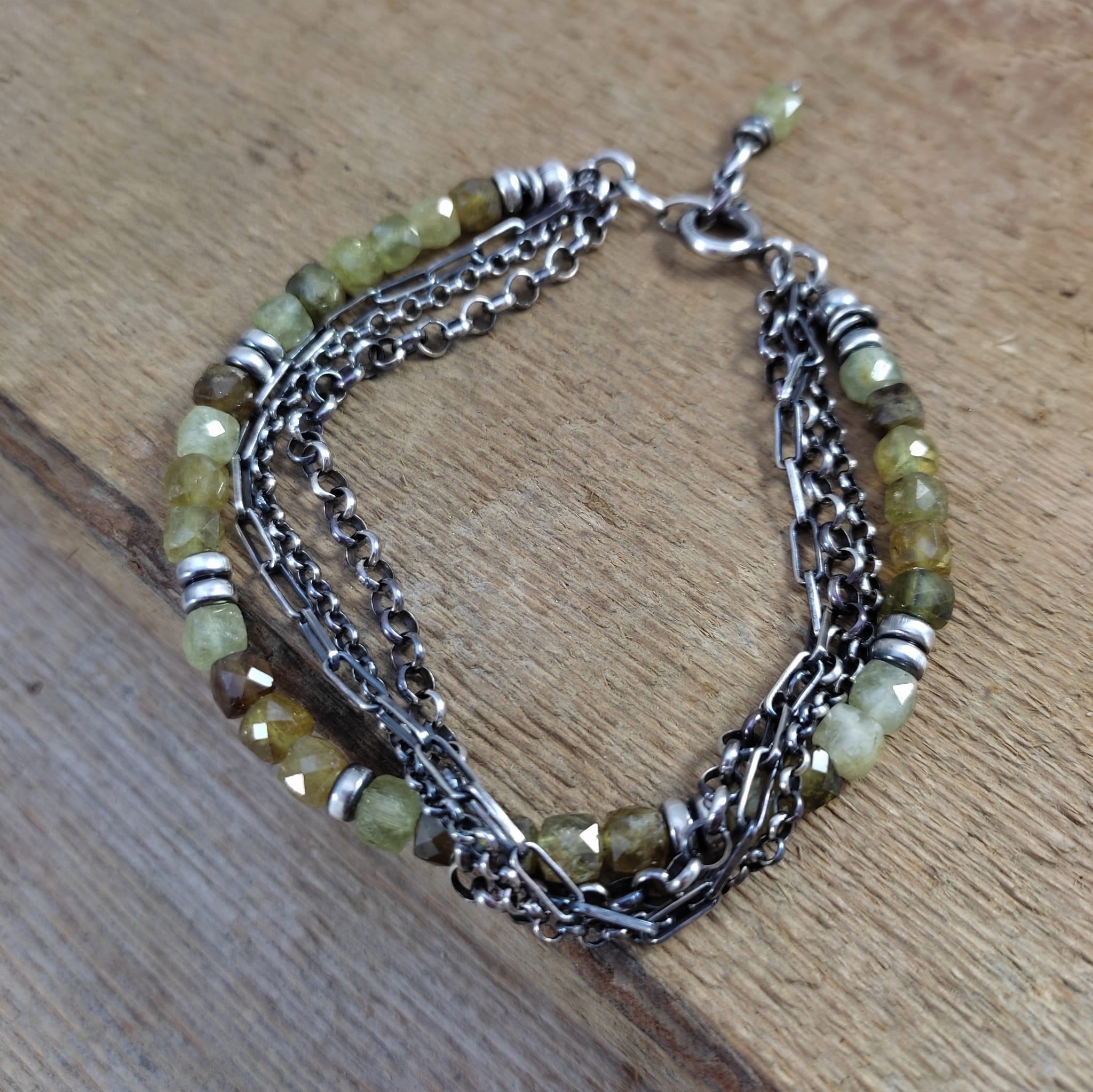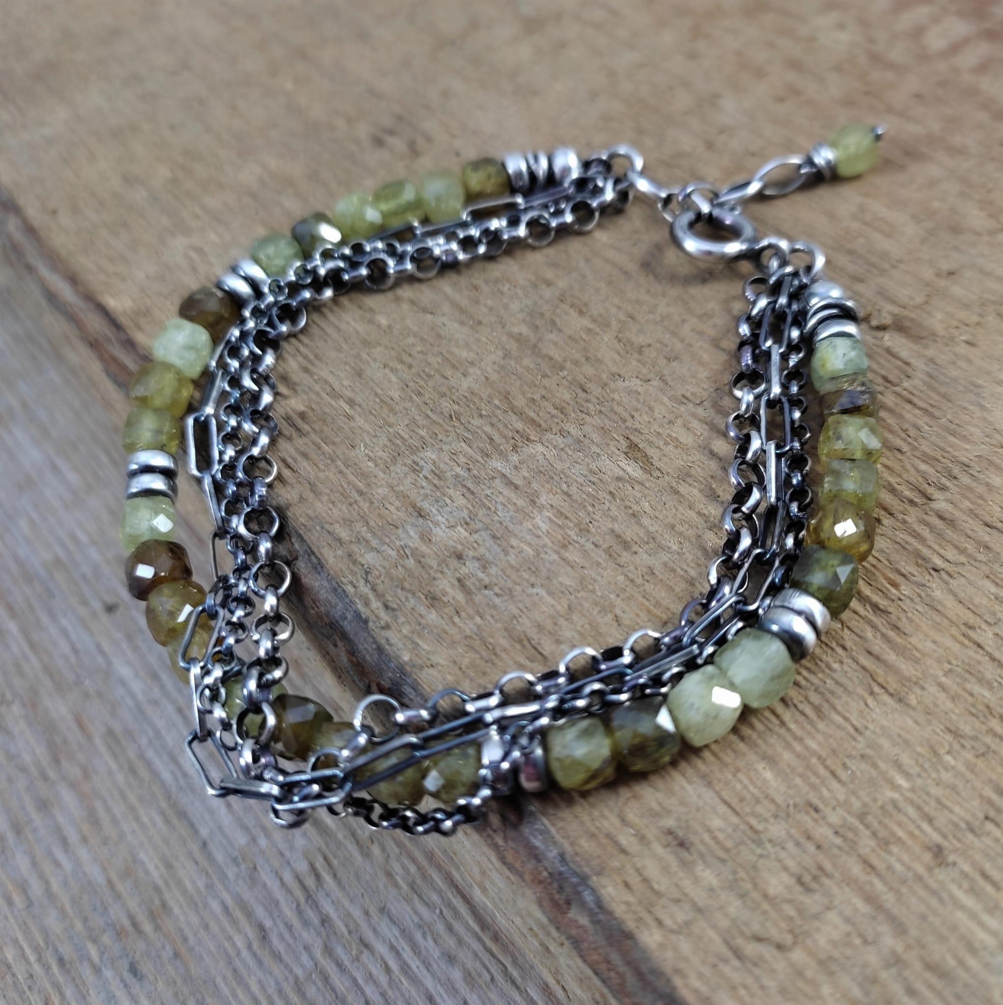 Bransoletka grossular z łańcuszkami