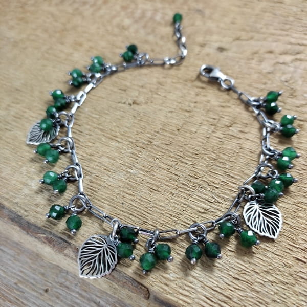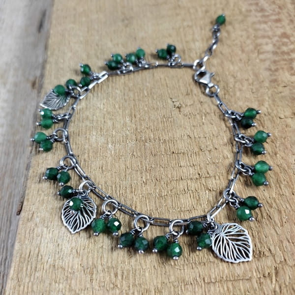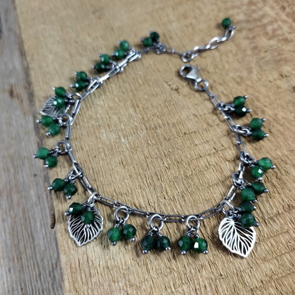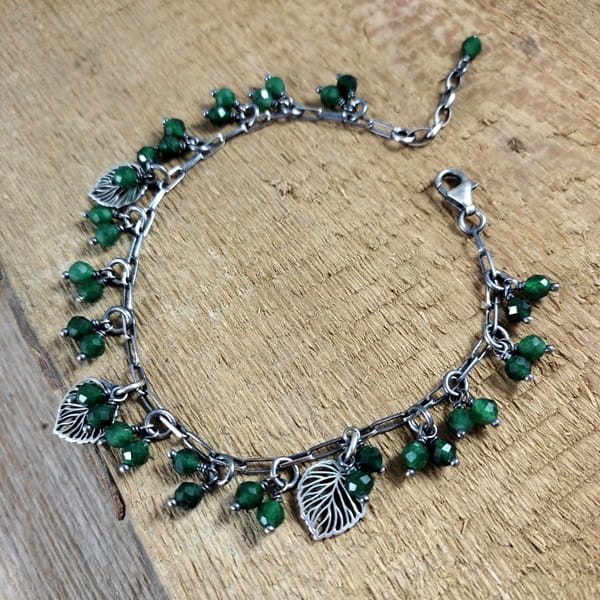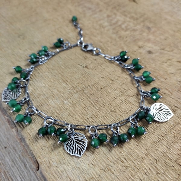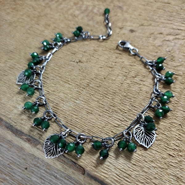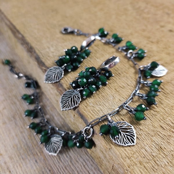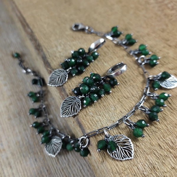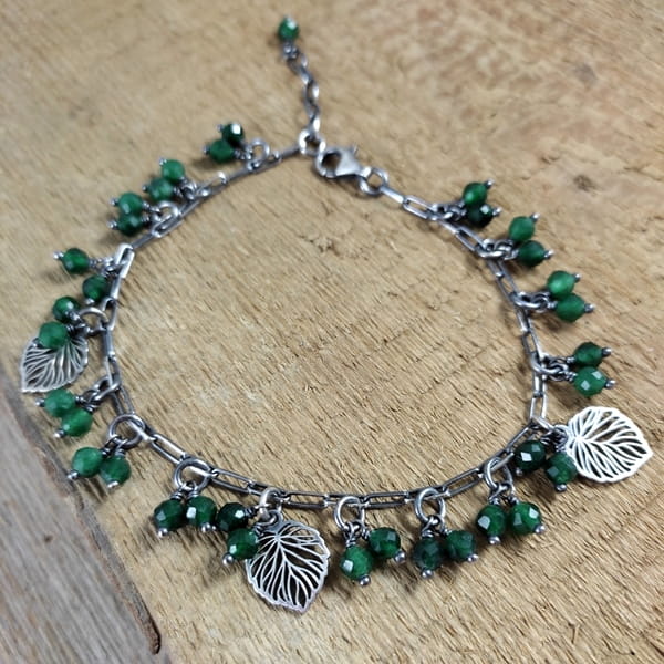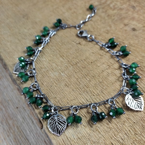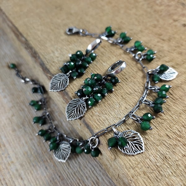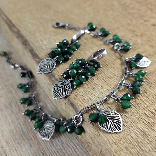 Bransoletka wykonana z fasetowanych kul jadeitu ok. 4 mm. Całość dopełniona srebrem 925, oksydowanym i wypolerowanym.