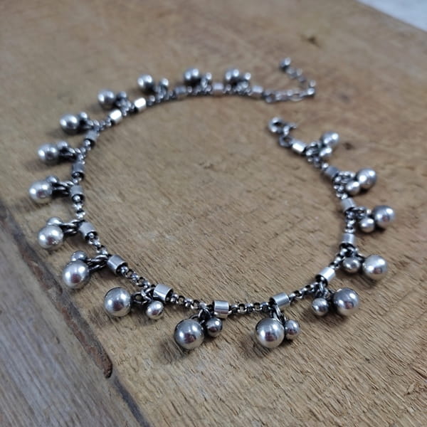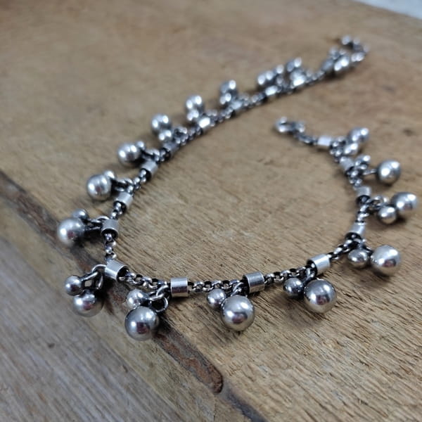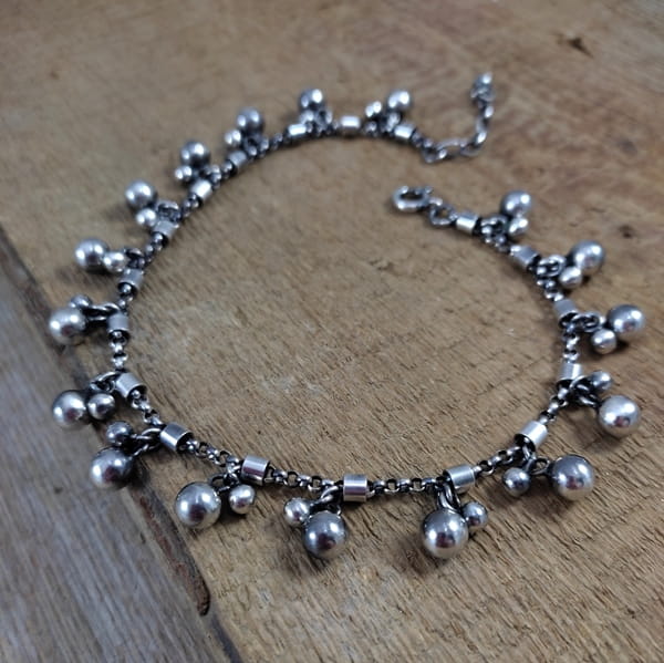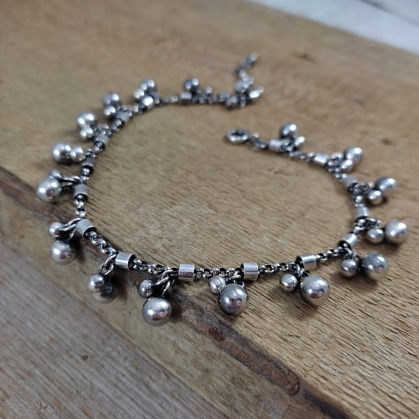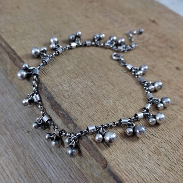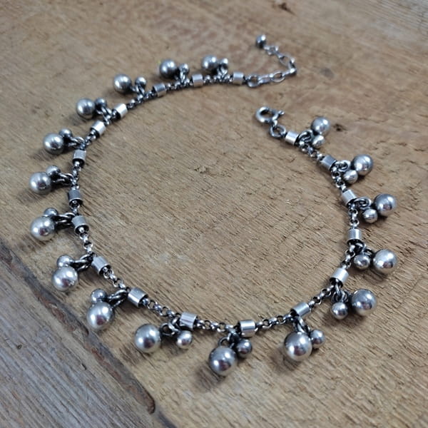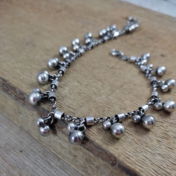 Bransoletka wykonana ze srebra próby 925, oksydowanego i wypolerowanego.