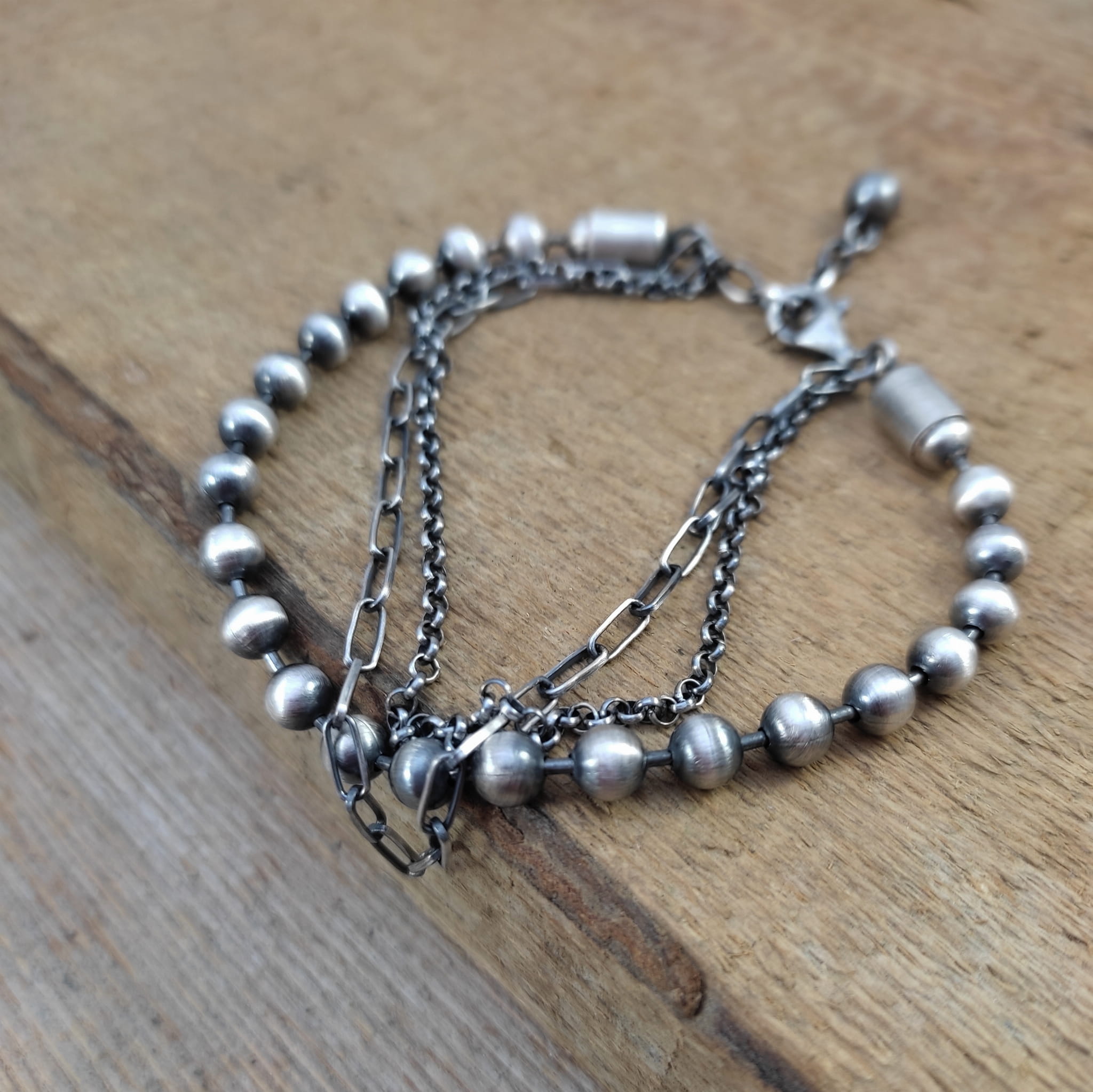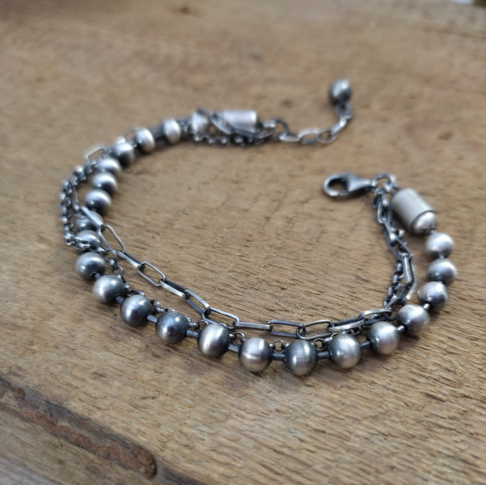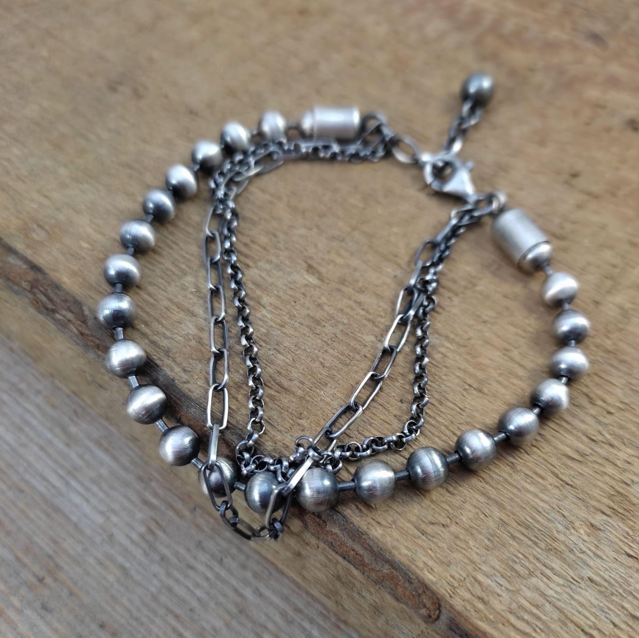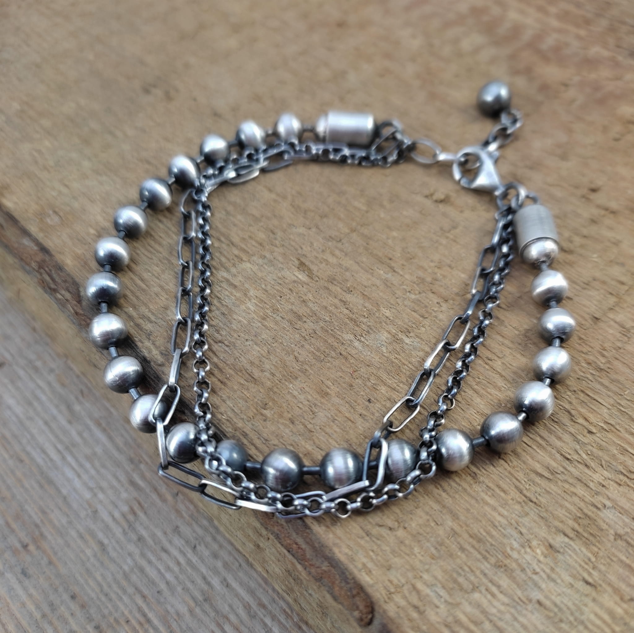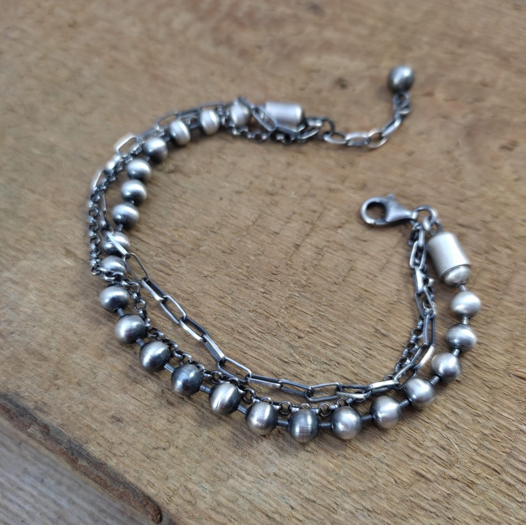 Bransoletka wykonana ze srebra próby 925, oksydowanego i wypolerowanego. Długość bransoletki wynosi ok. 18/19/20 cm, plus łańcuszek regulacyjny ok. 2 cm. (Proszę wpisać w komentarzu, w przypadku braku wysyłamy 19 cm). Średnica łańcuszków 2.2-5 mm. Elegancko zapakowana.