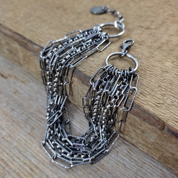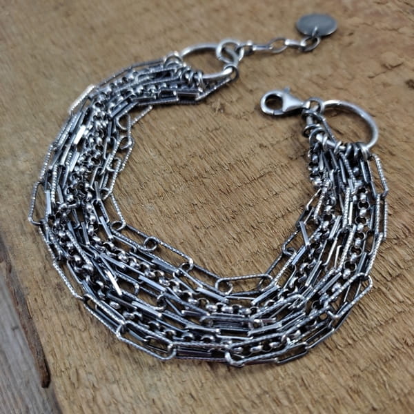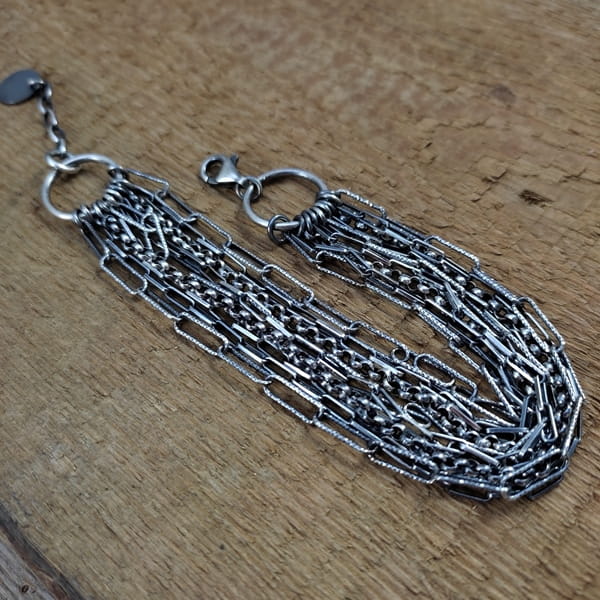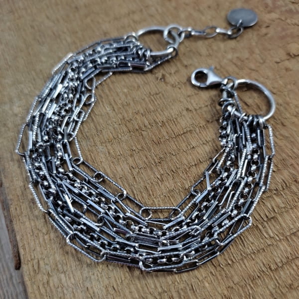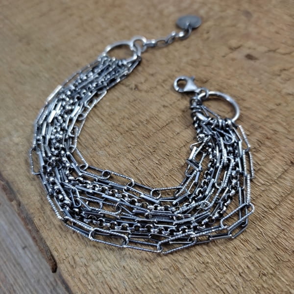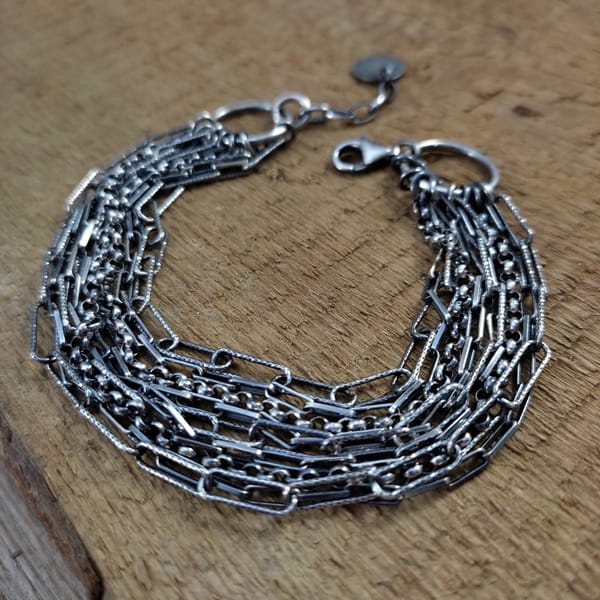 Bransoletka wykonana ze srebra próby 925, oksydowanego i wypolerowanego. Długość bransoletki wynosi ok. 18/19/20 cm, plus łańcuszek regulacyjny ok. 2 cm. (Proszę wpisać w komentarzu, w przypadku braku wysyłamy 19 cm). Elegancko zapakowana.