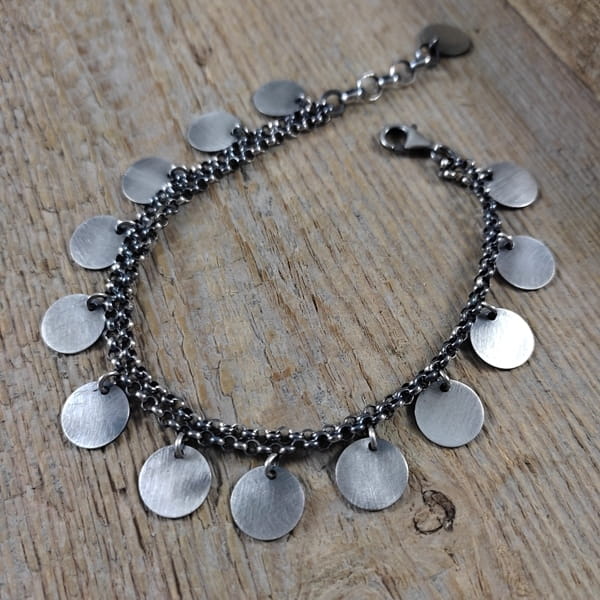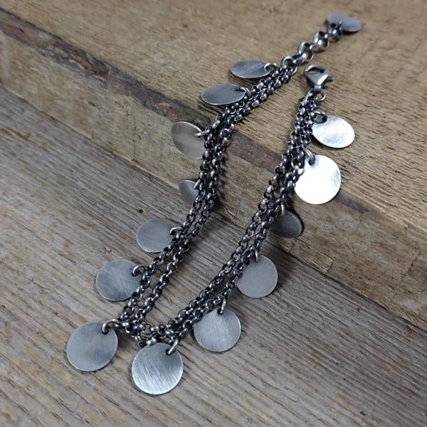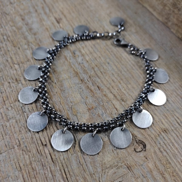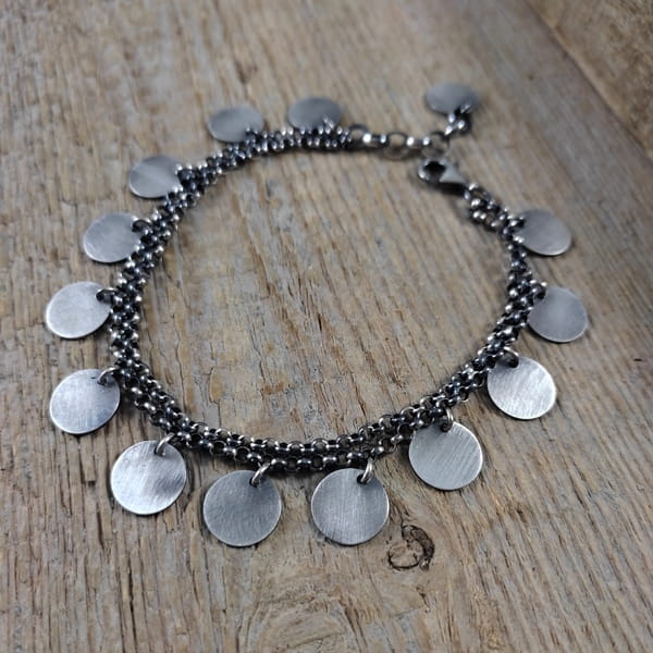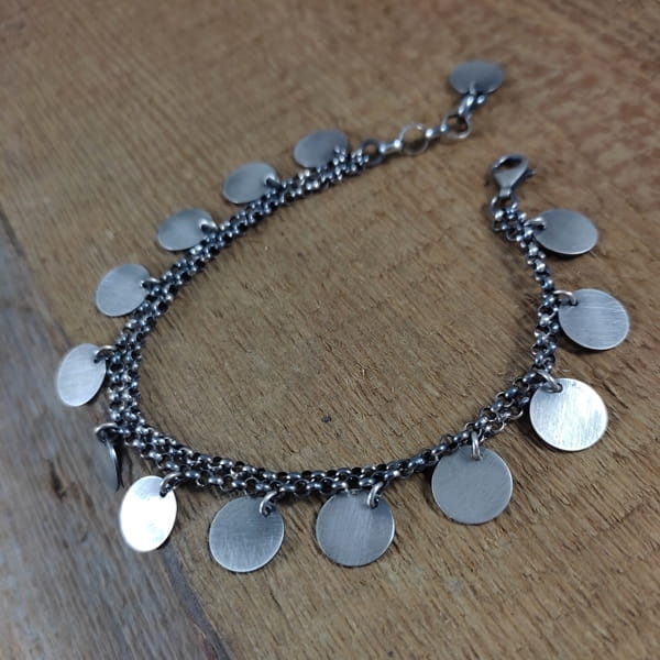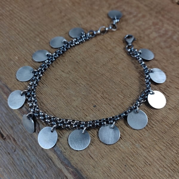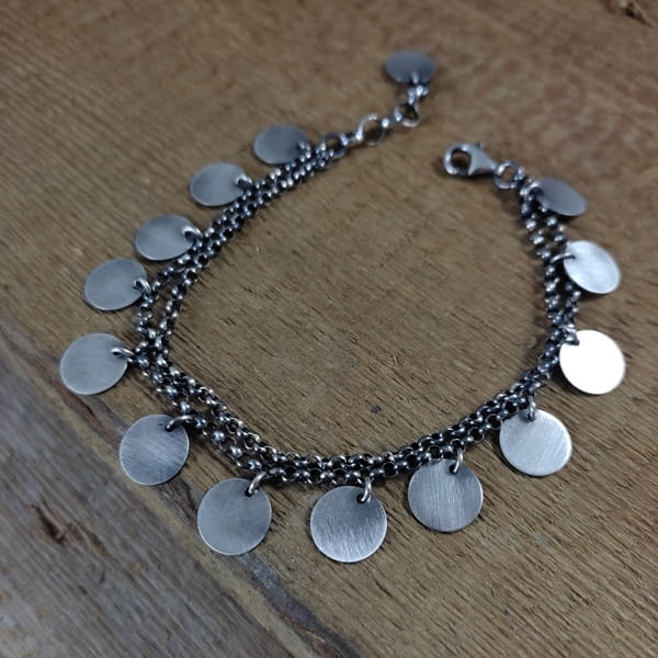 Bransoletka wykonana ze srebra próby 925, oksydowanego i wypolerowanego.
