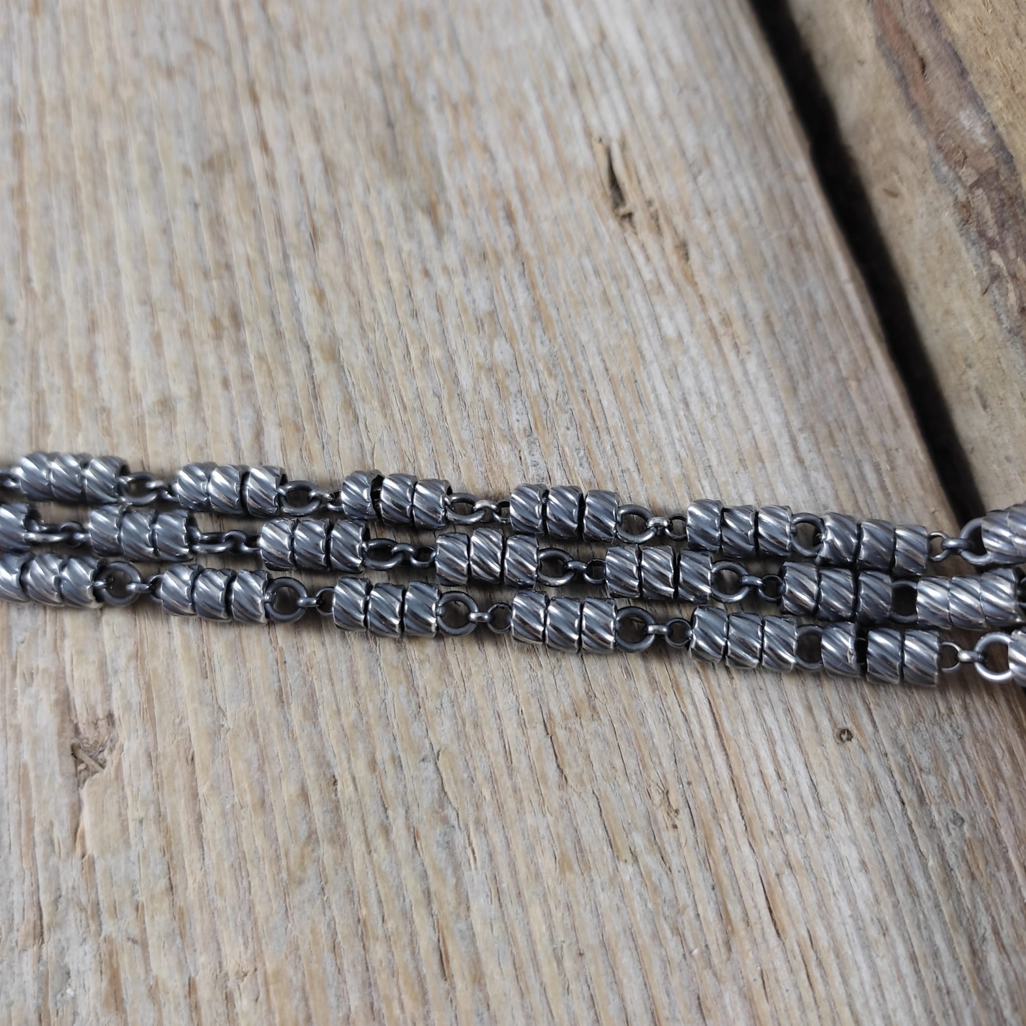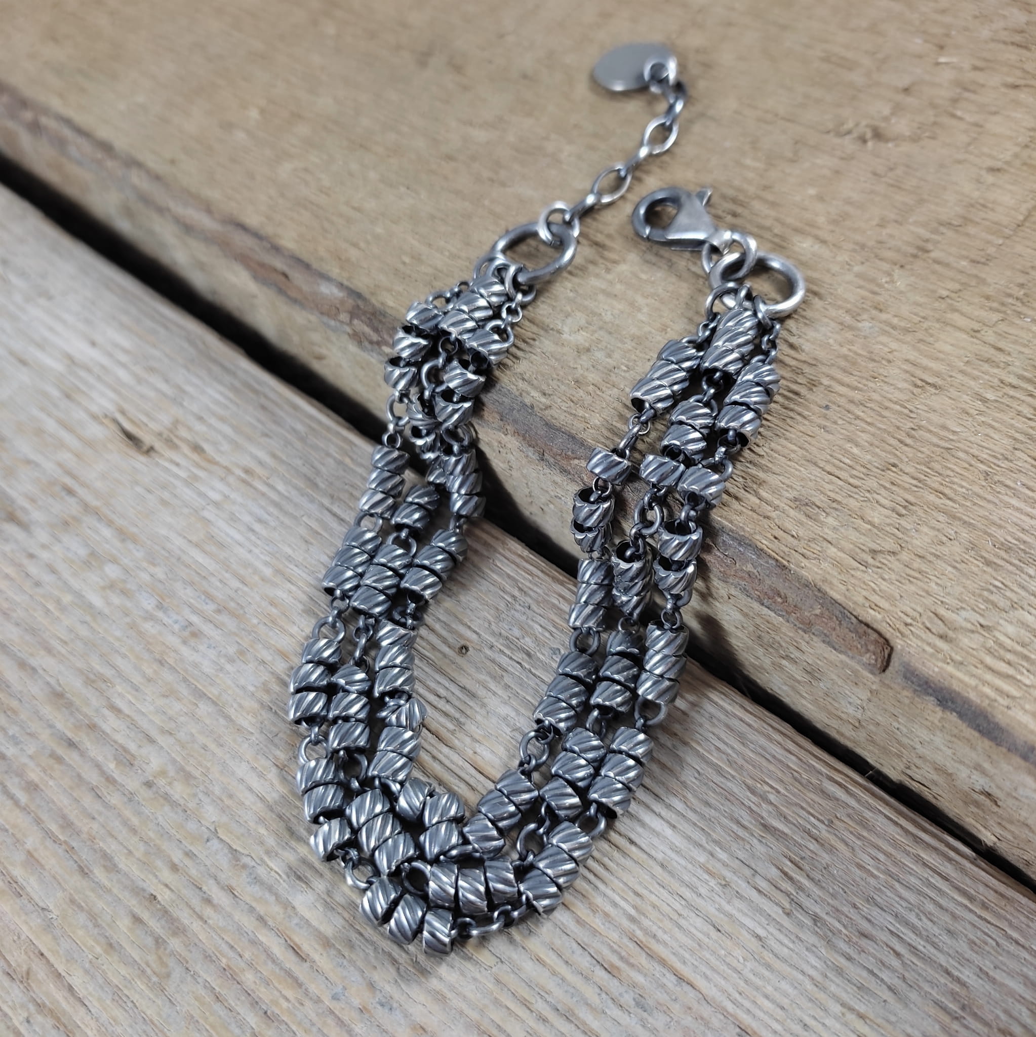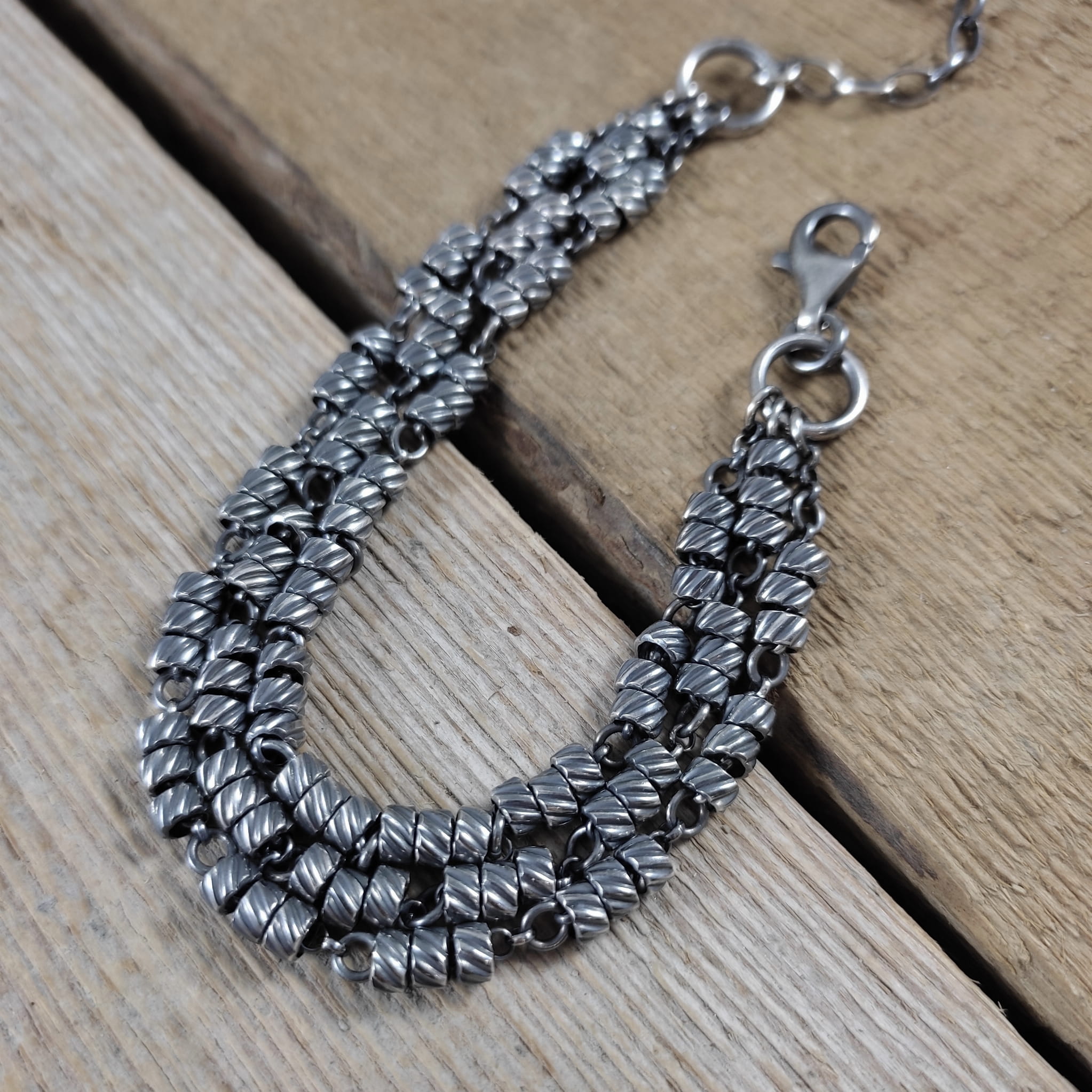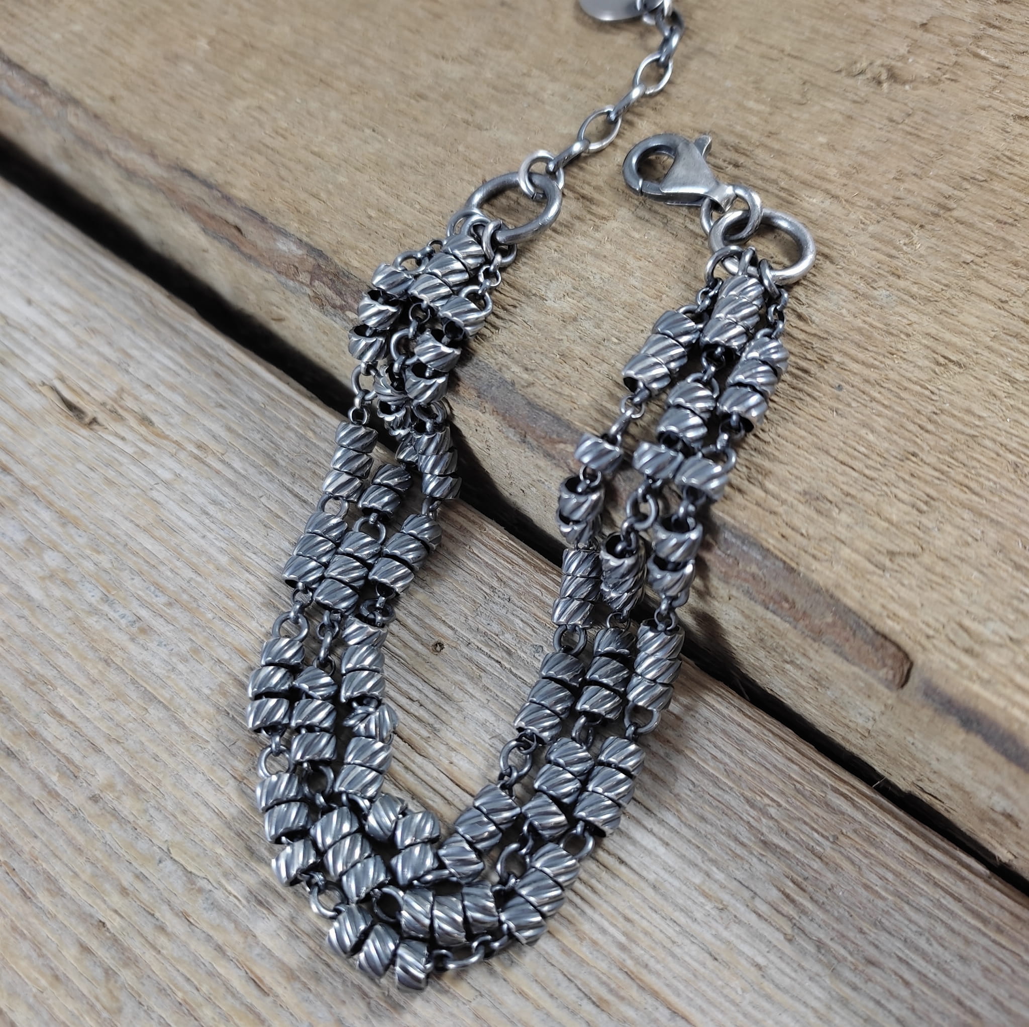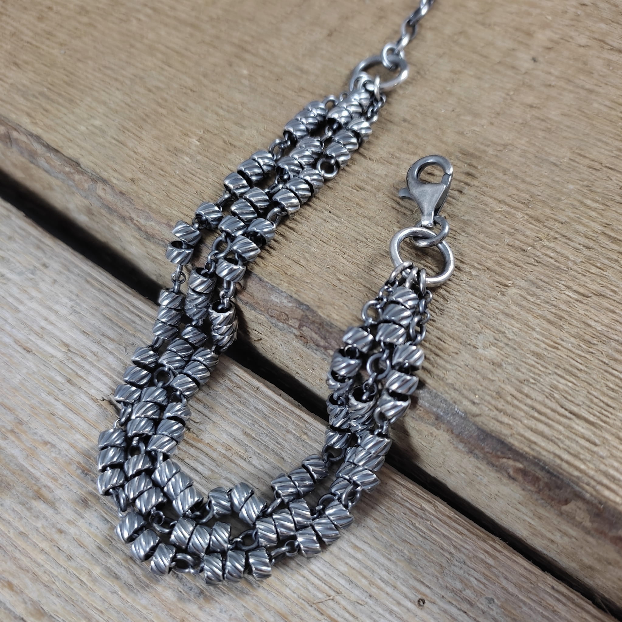 Bransoletka ze skręconymi rurkami na łańcuszkach