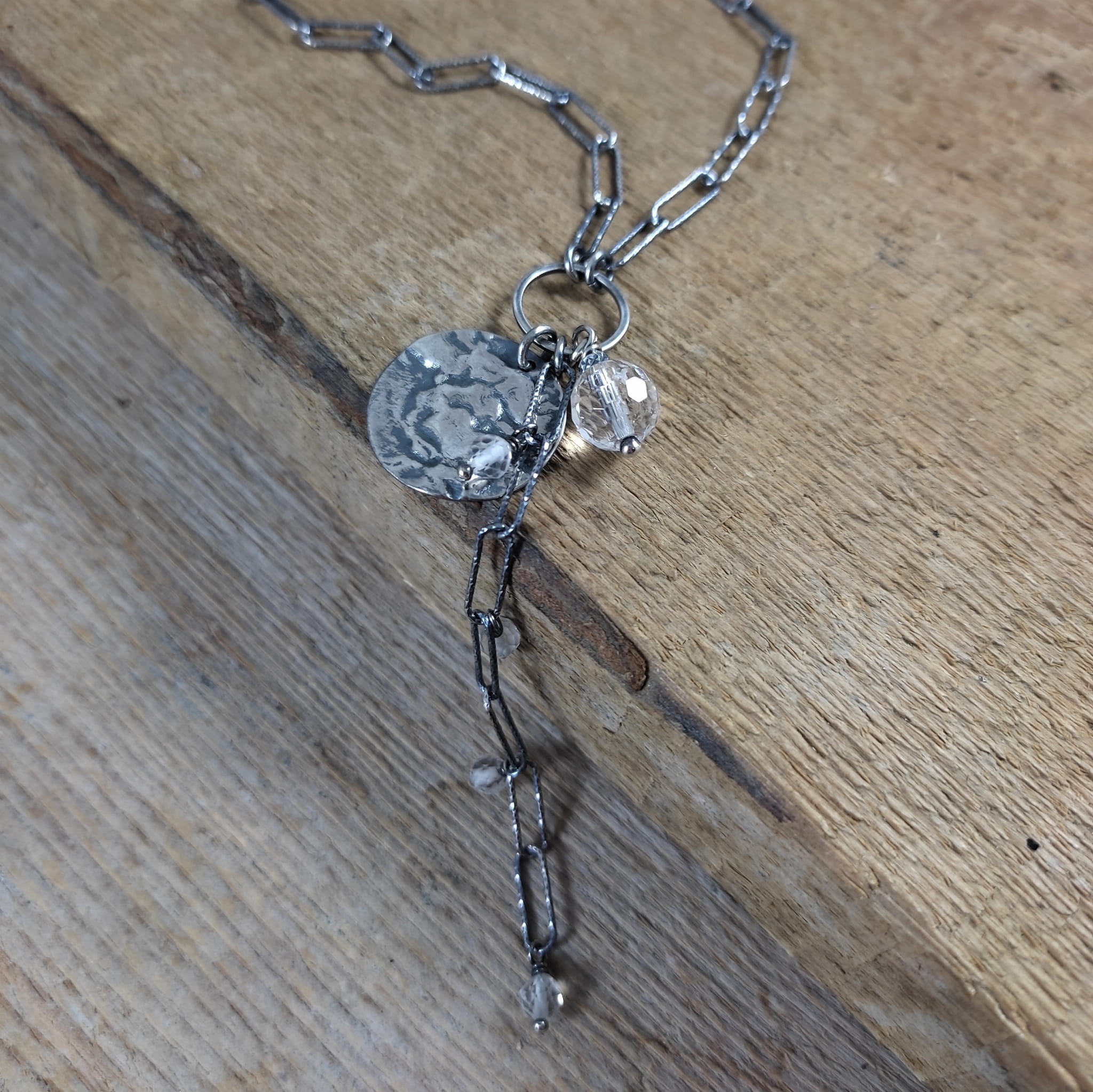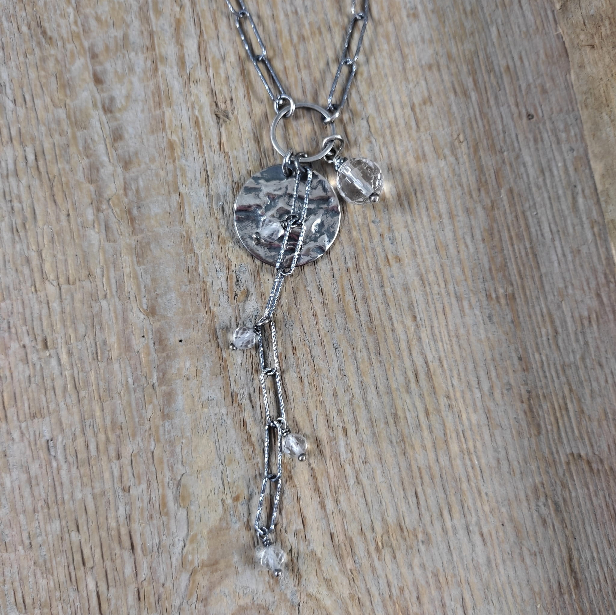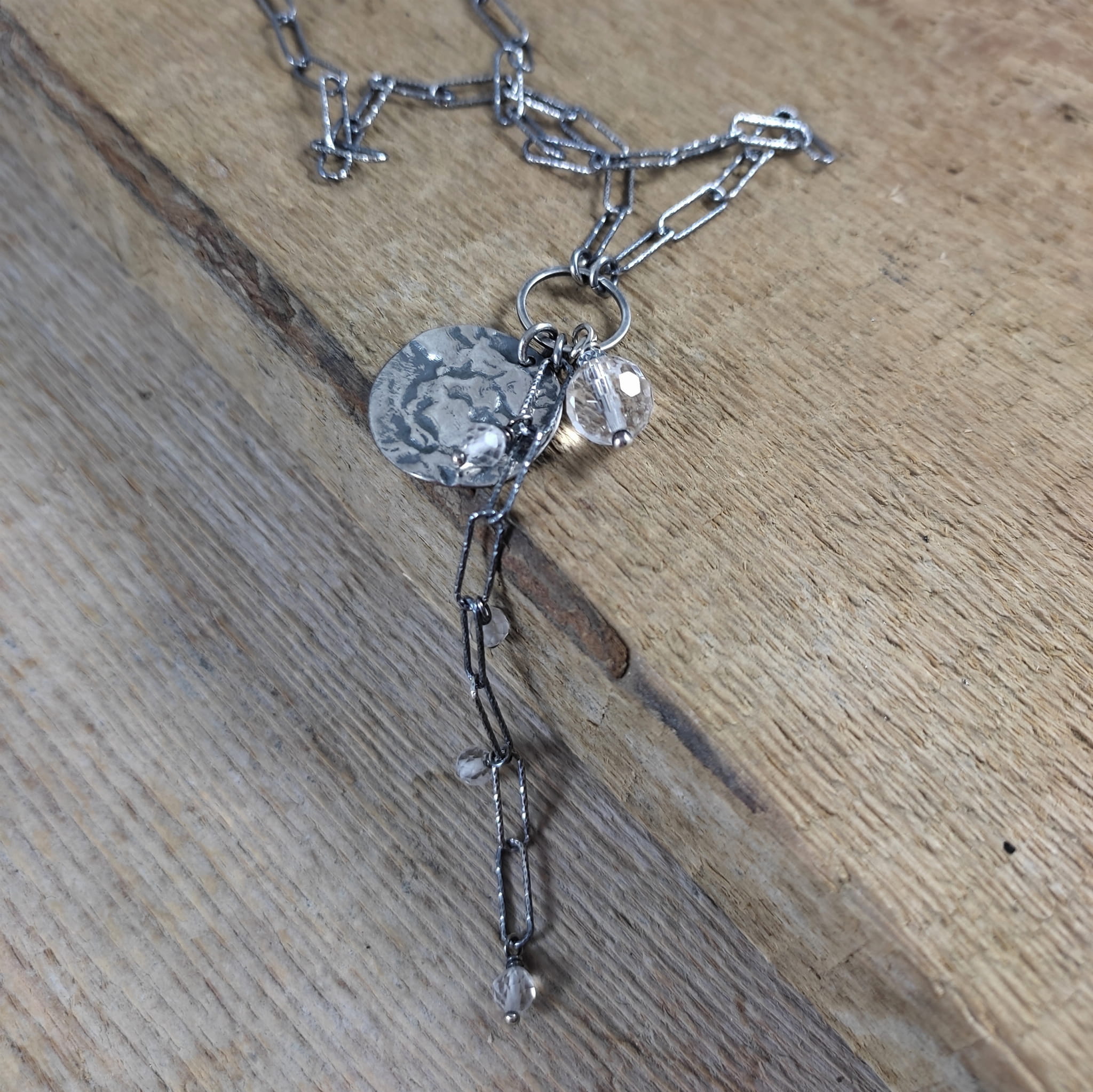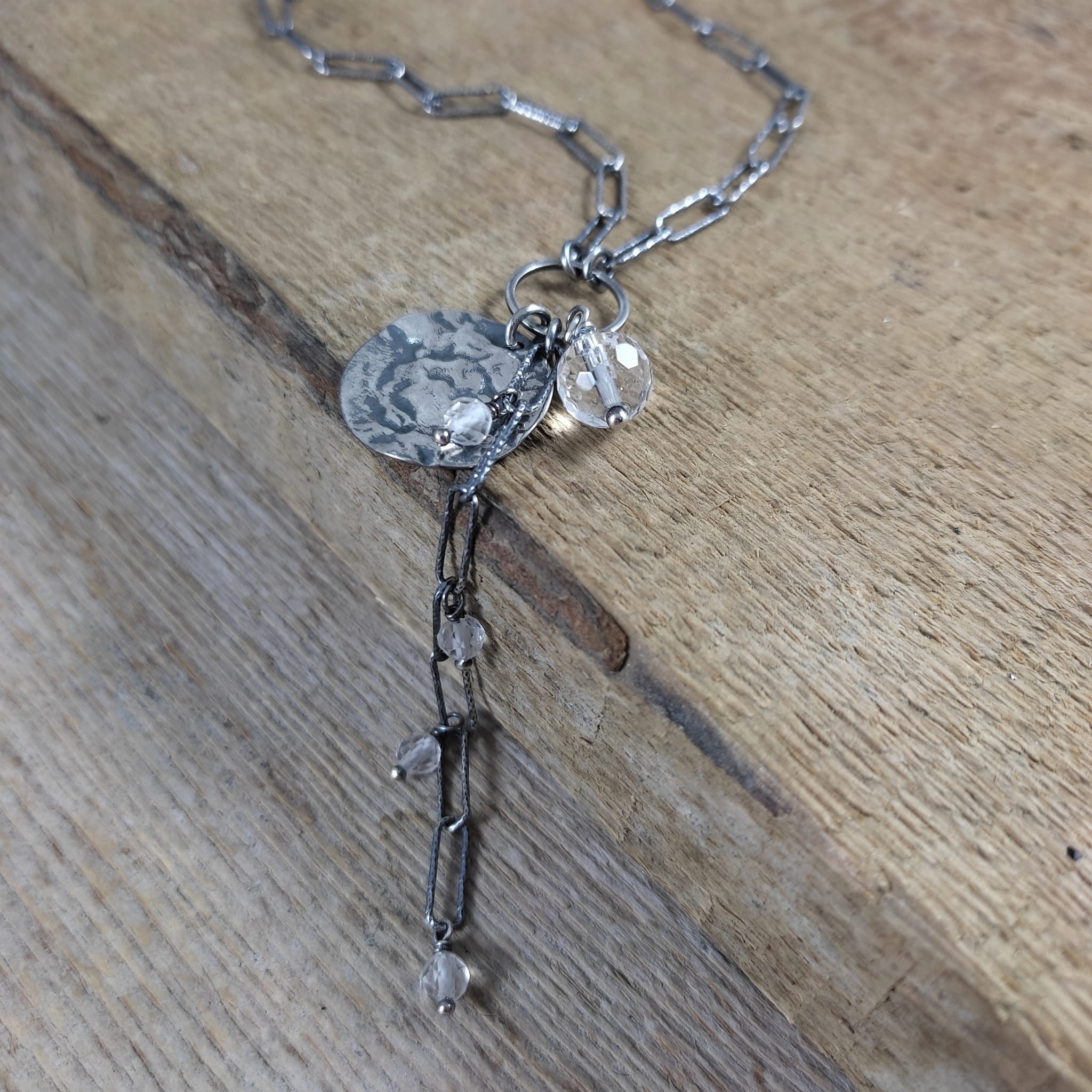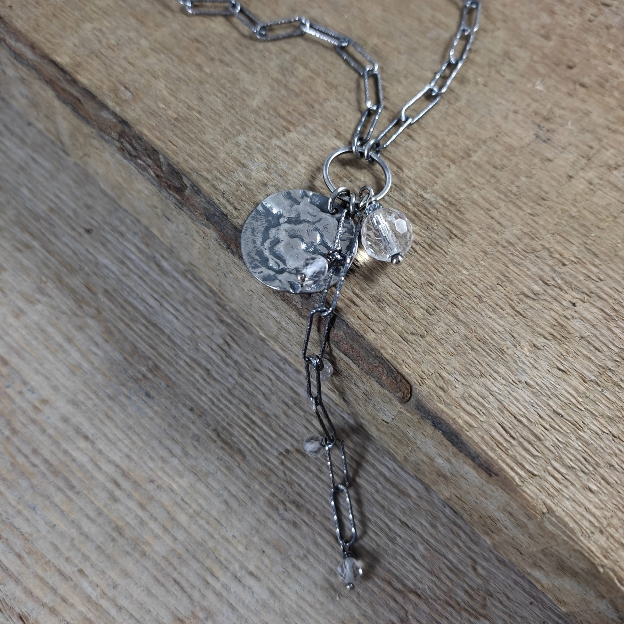 Naszyjnik wykonany z fasetowanych kul kwarcu ok. 4,5-8 mm. Całość wykończona w srebrze 925, oksydowanym i wypolerowanym. Długość naszyjnika wynosi ok. 40/45/50 cm, plus łańcuszek regulacyjny 5 cm. (Proszę wpisać w komentarzu, w przypadku braku wysyłamy 40 cm).