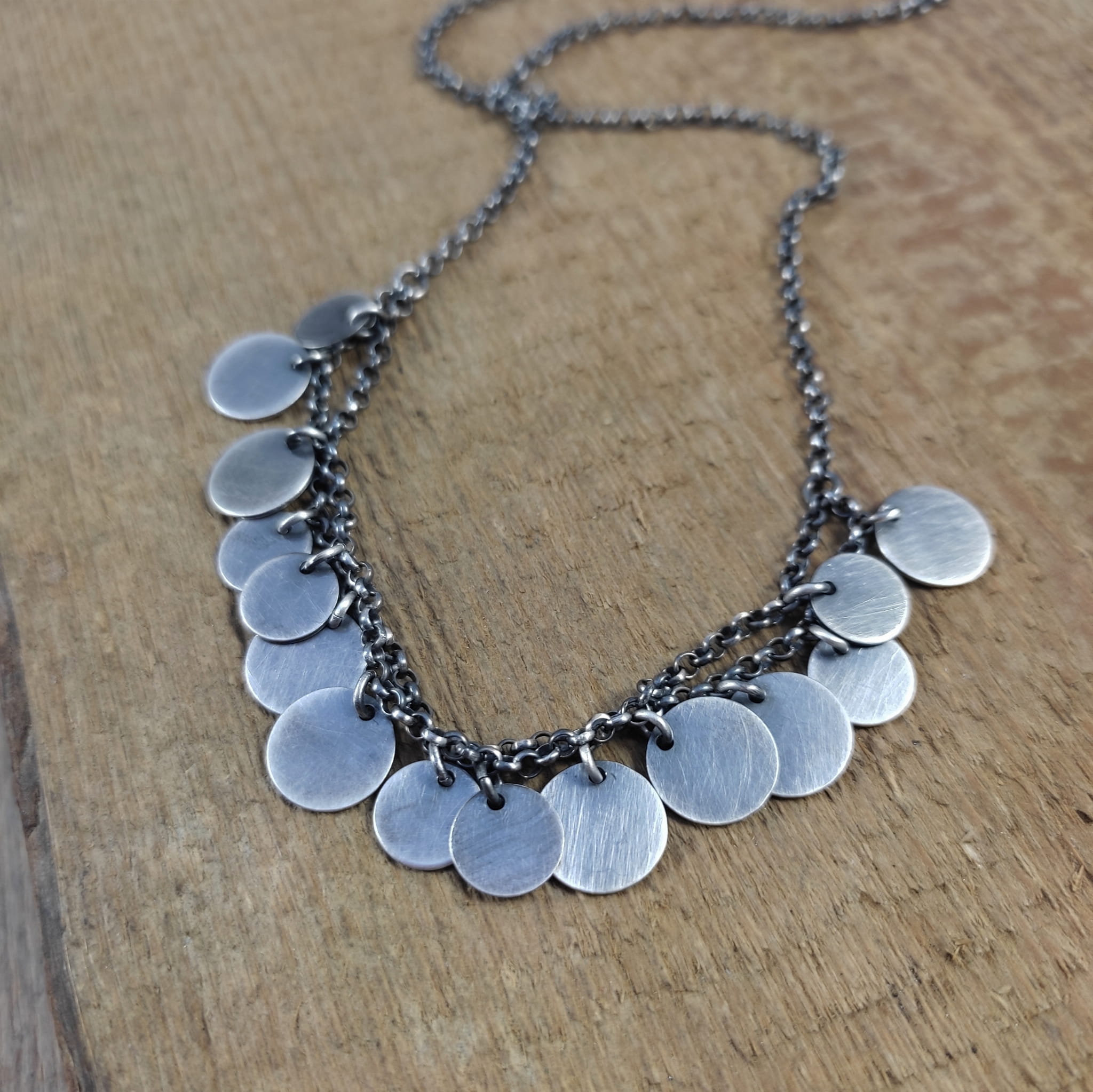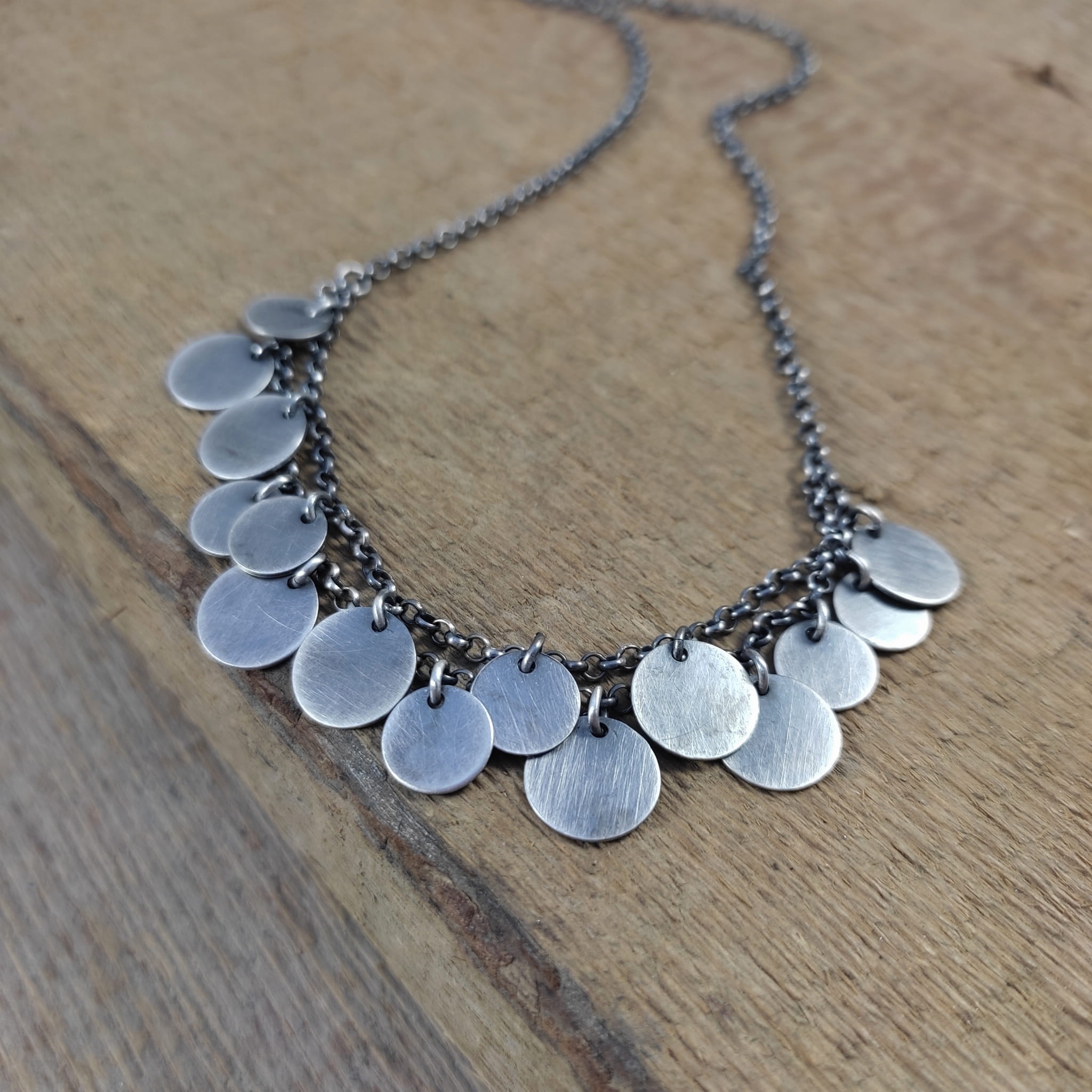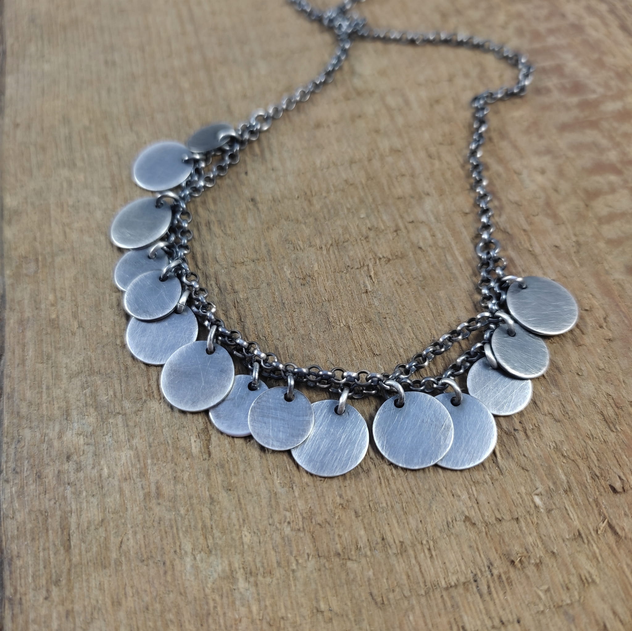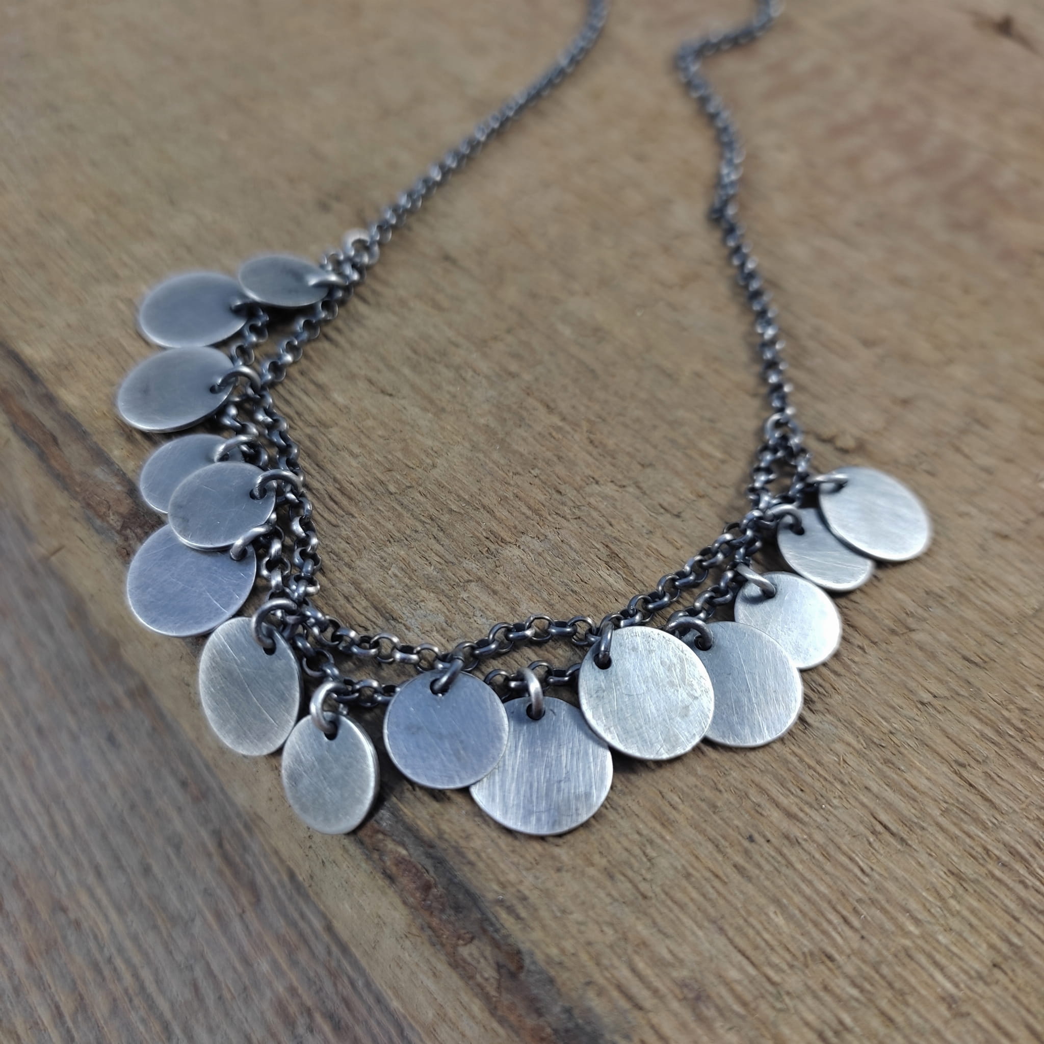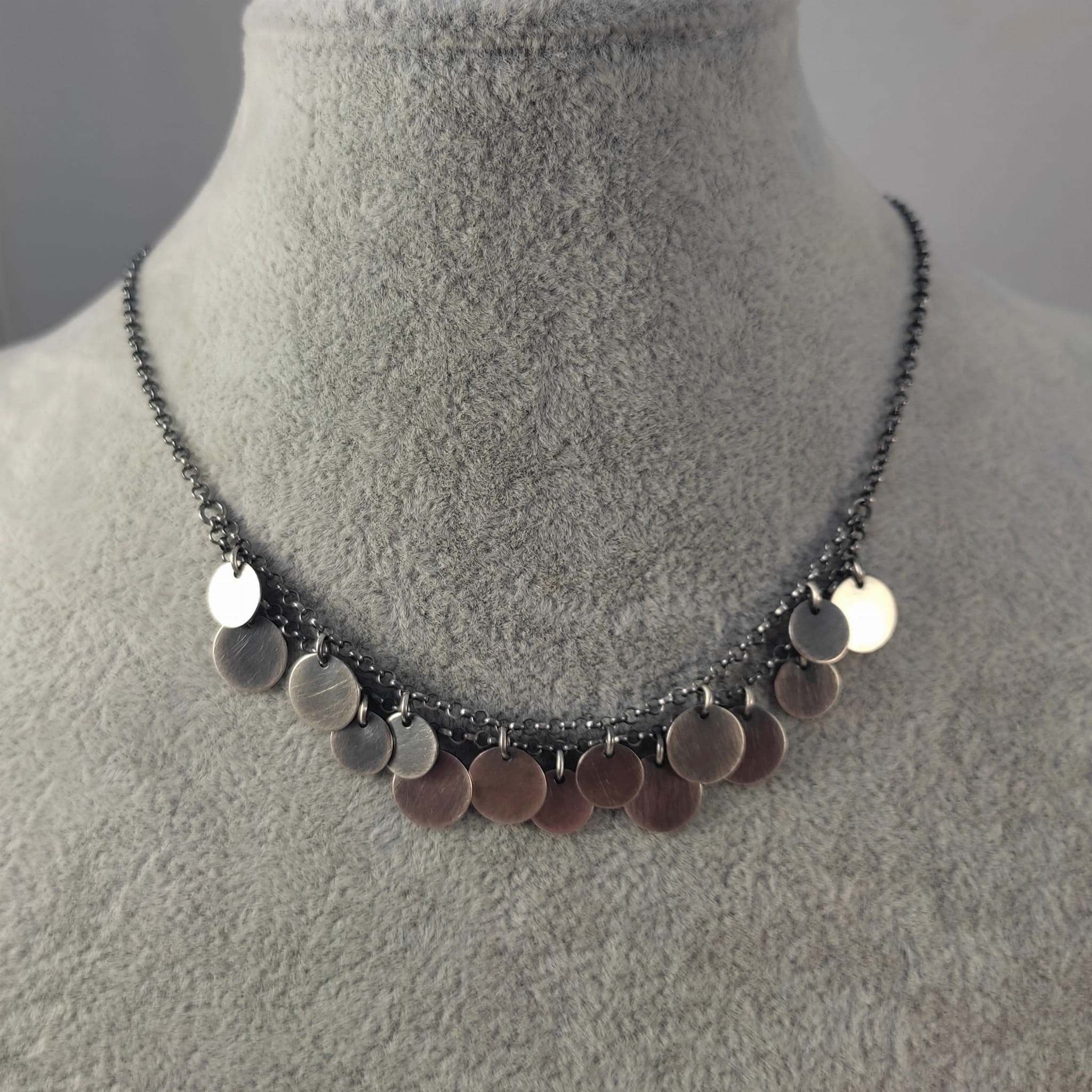Naszyjnik wykonany ze srebra 925, oksydowanego i wypolerowanego.