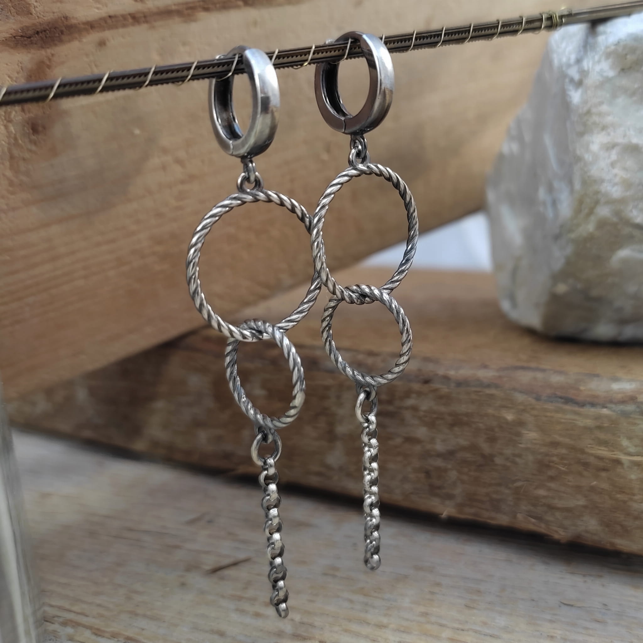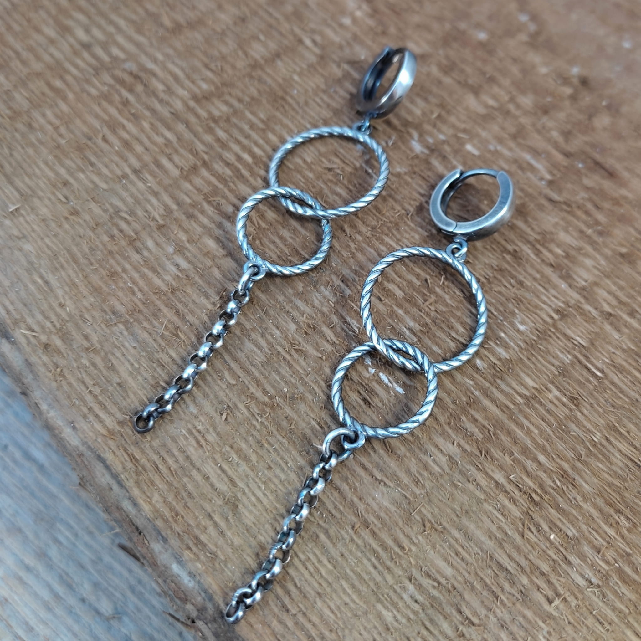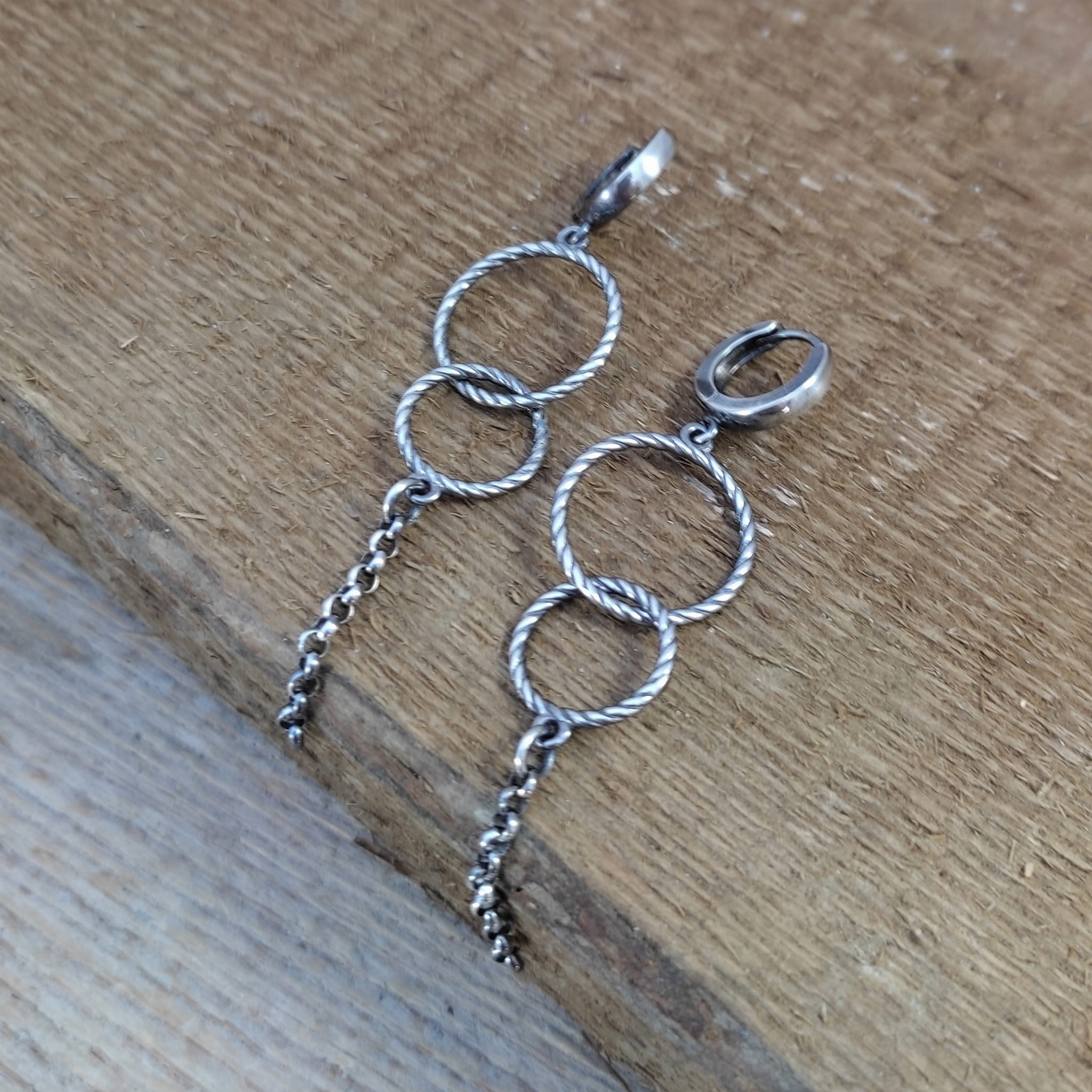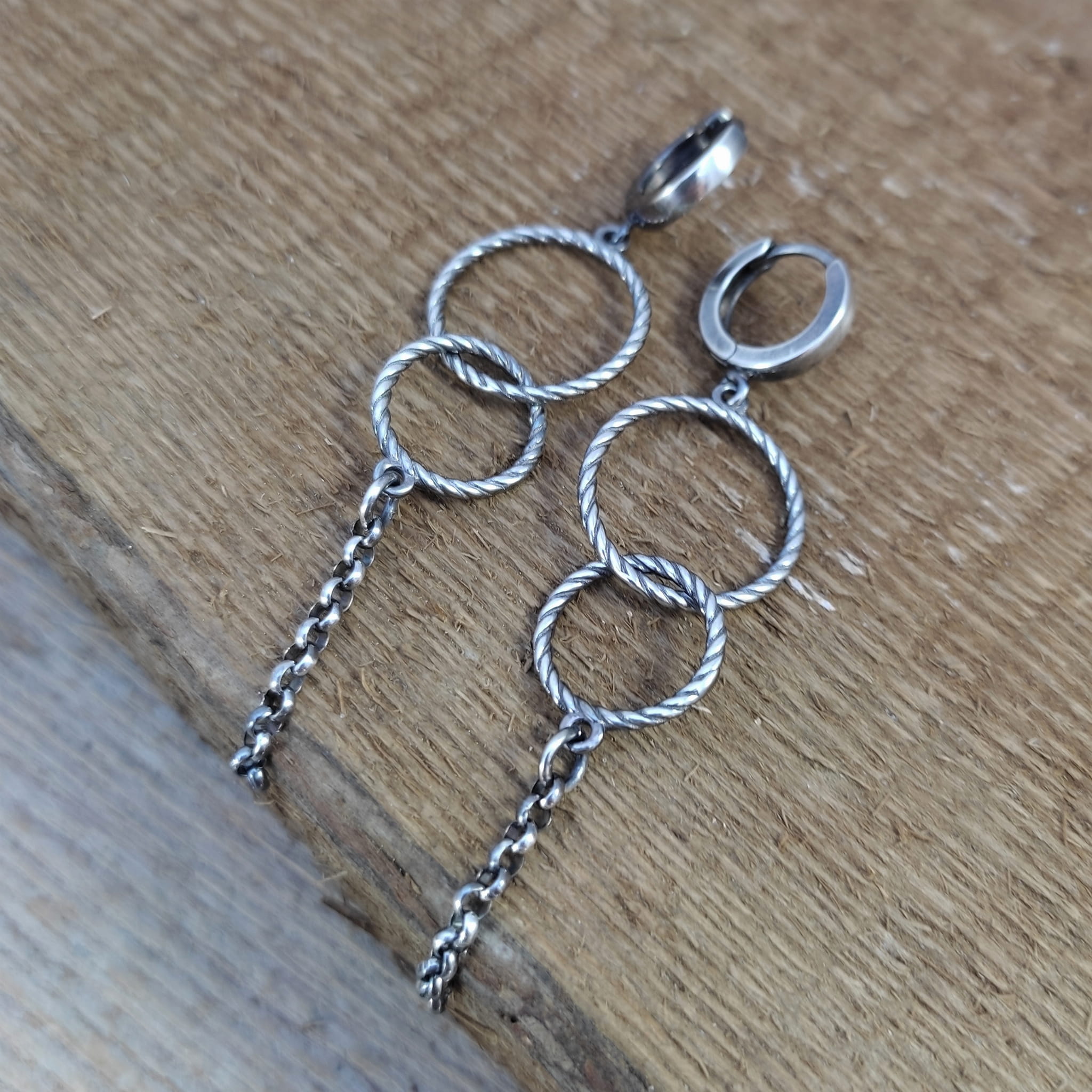 Kolczyki wykonane ze srebra 925, oksydowanego i wypolerowanego. Całkowita długość kolczyków wynosi ok. 6,8 cm. Elegancko zapakowane.