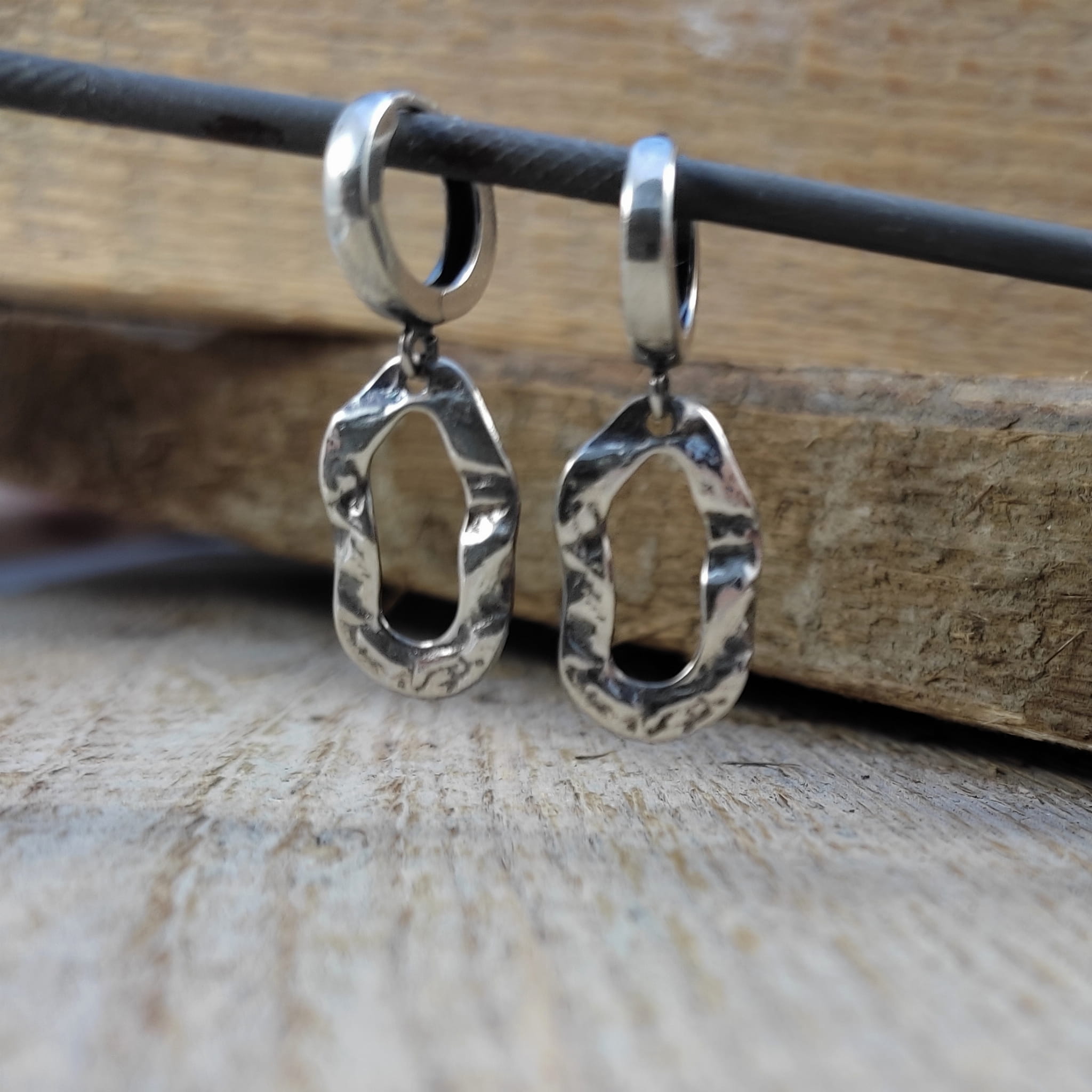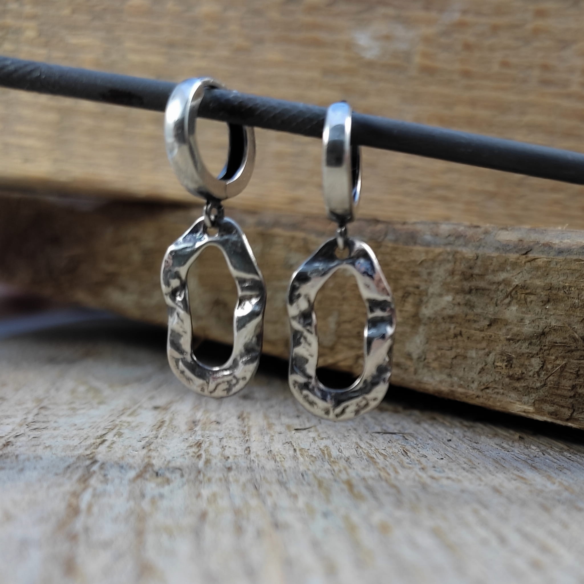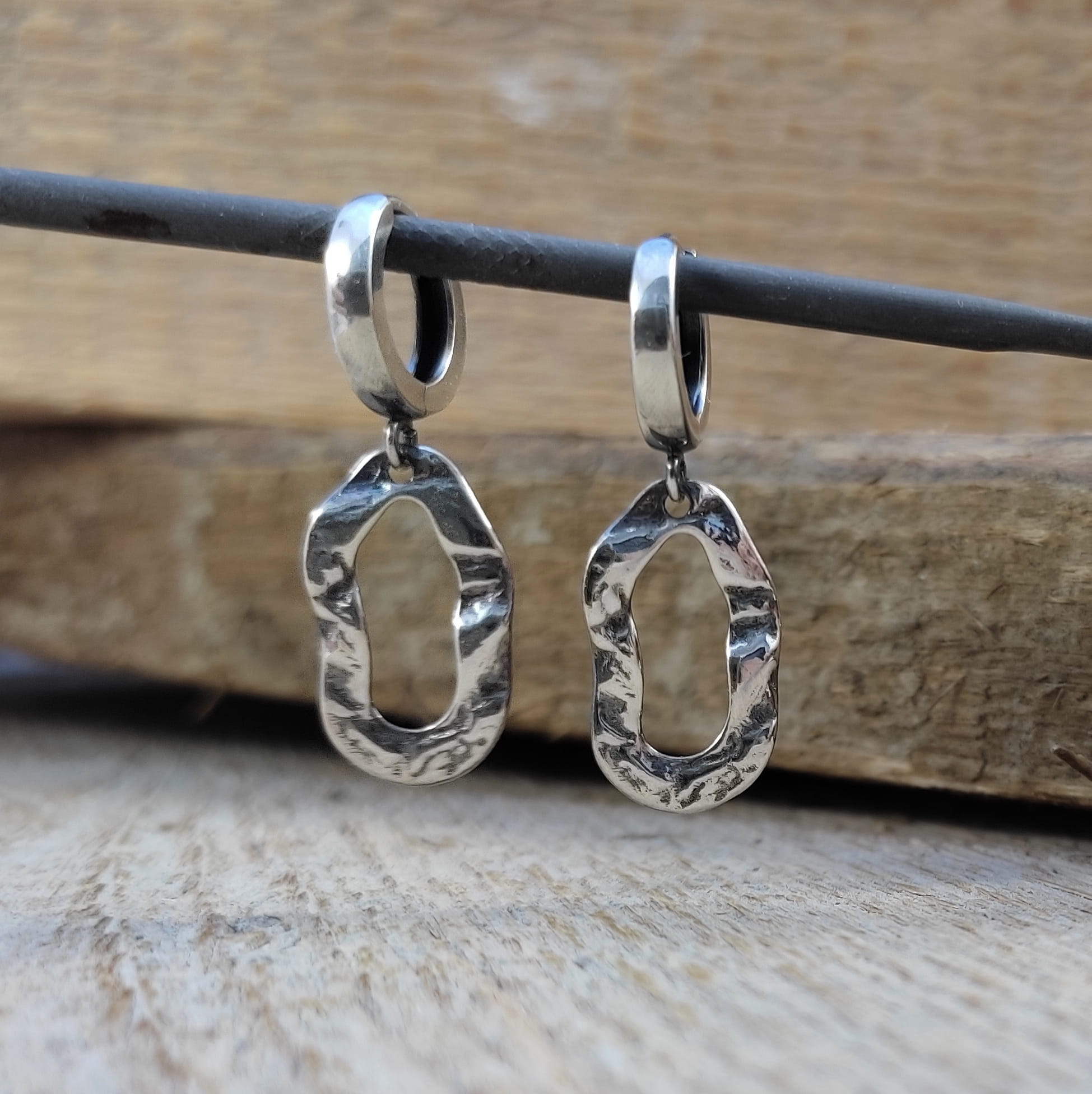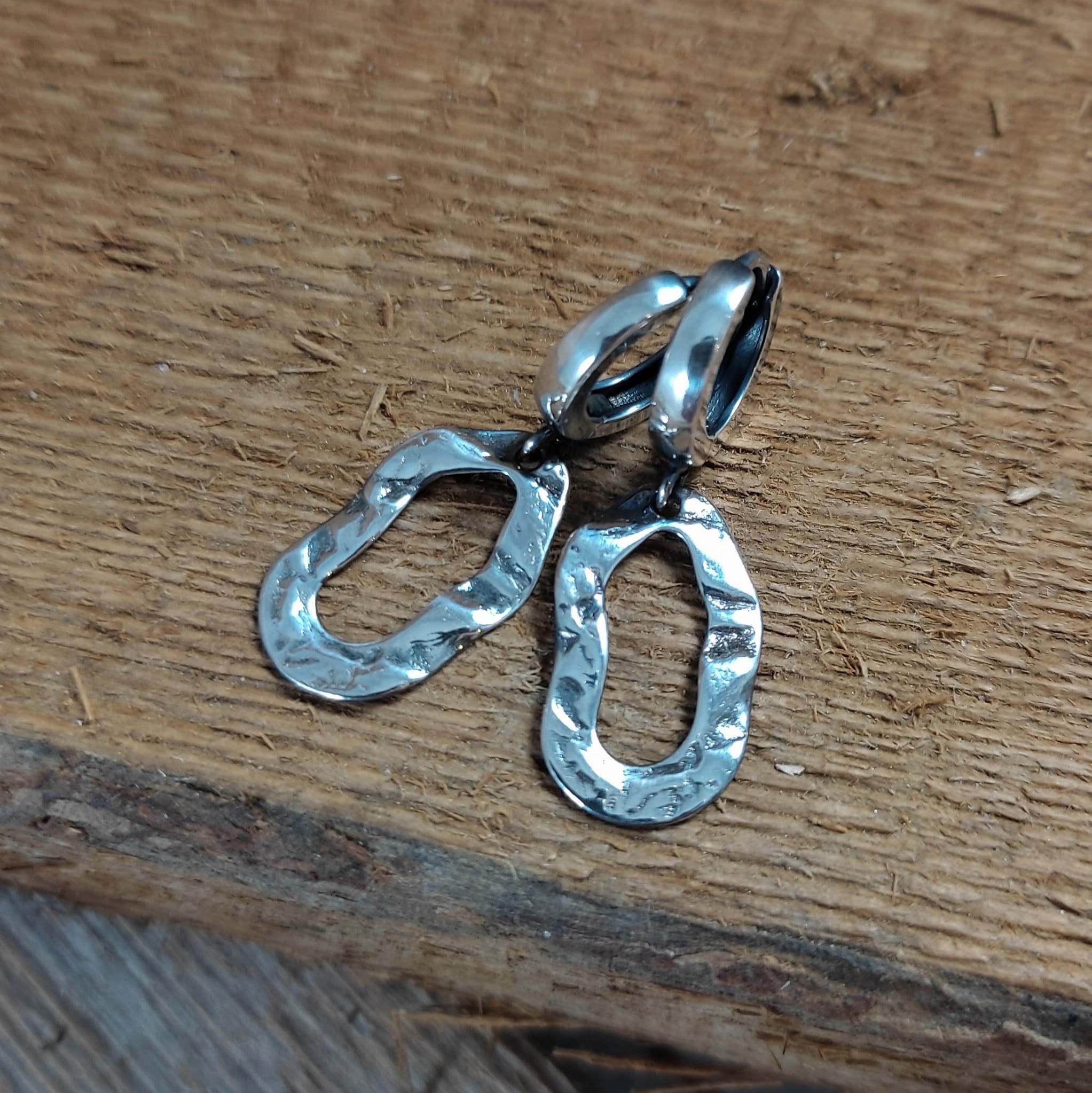 Kolczyki wykonane ze srebra 925, oksydowanego i wypolerowanego. Całkowita długość kolczyków wynosi ok. 3,1 cm. Elegancko zapakowane.