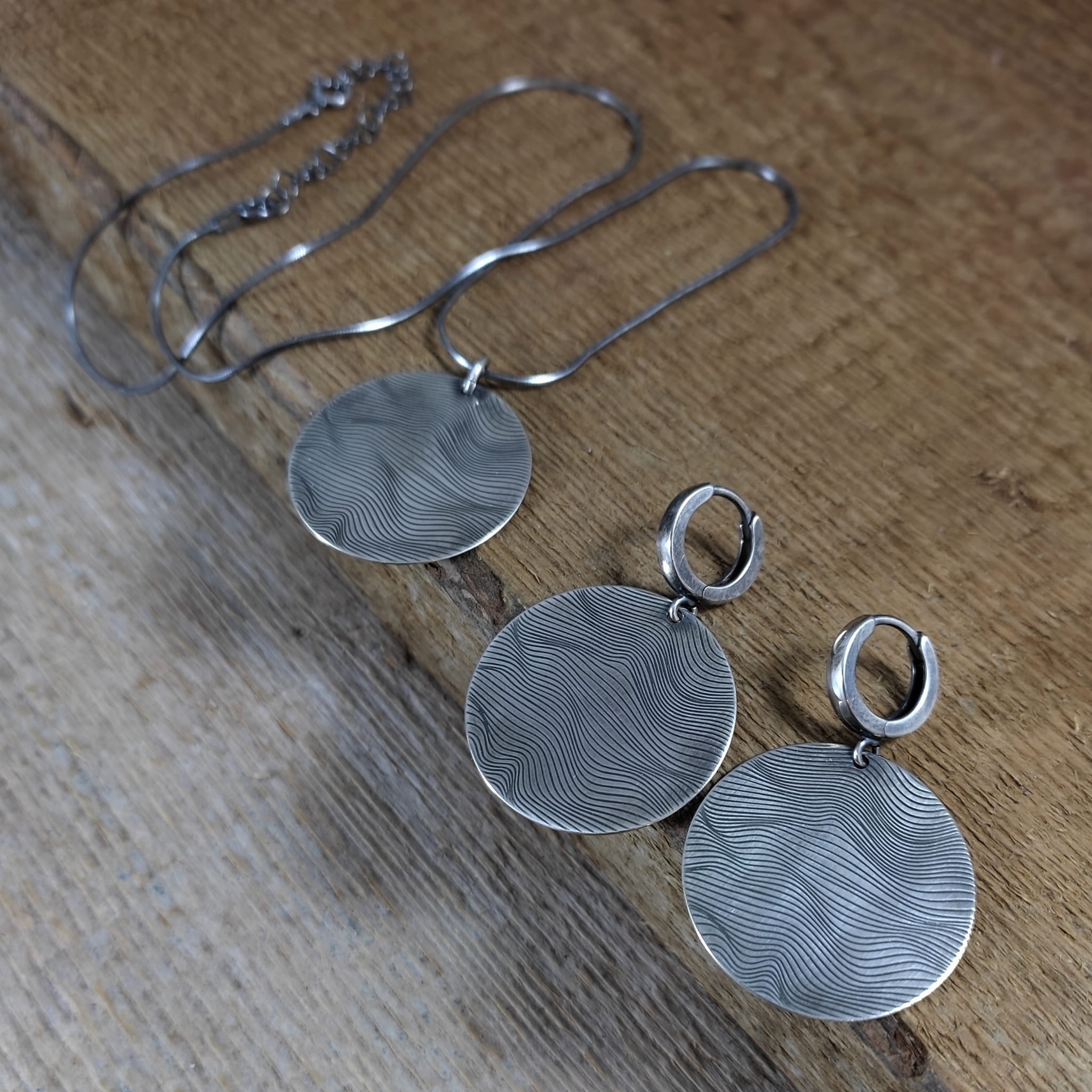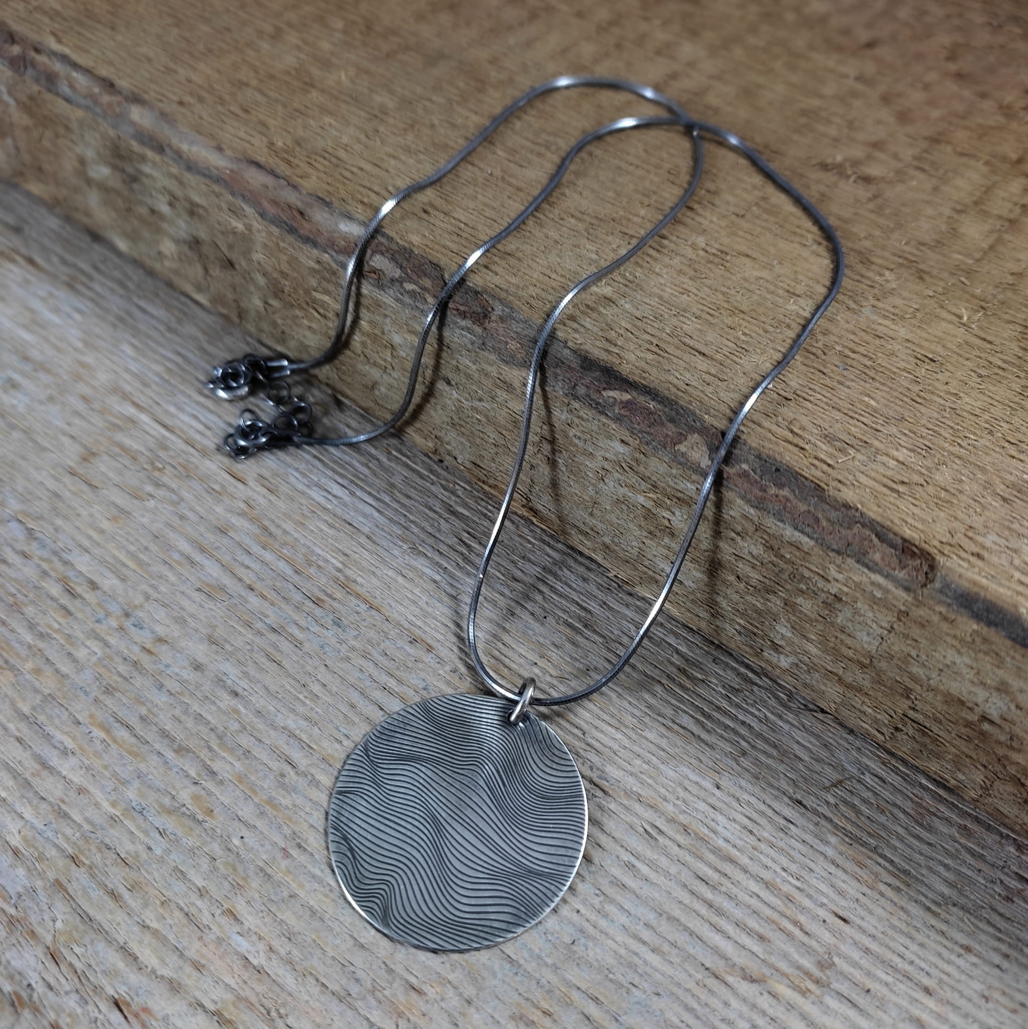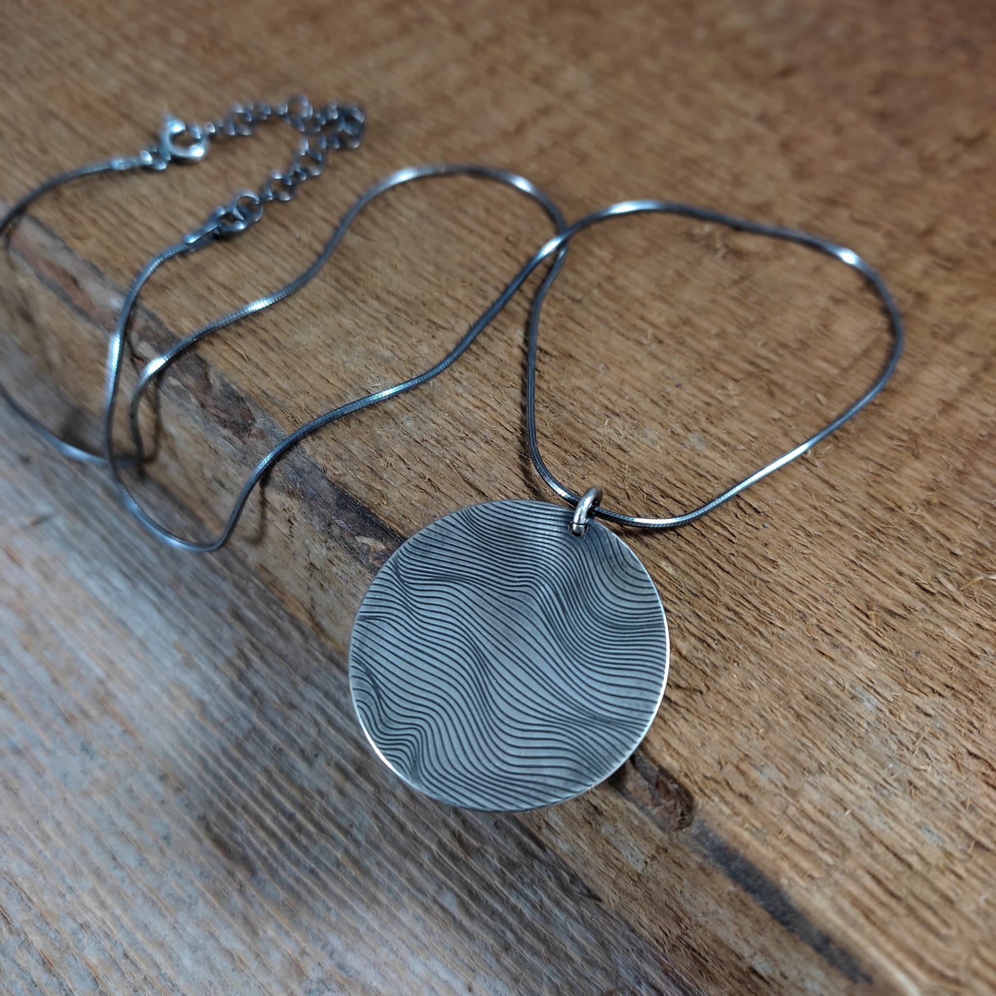 Naszyjnik/wisiorek wykonany ze srebra 925, oksydowanego i wypolerowanego. Długość naszyjnika wynosi ok. 40 cm, plus łańcuszek regulacyjny 5 cm. Wielkość zawieszki/blaszki 25.9 mm. Elegancko zapakowany.