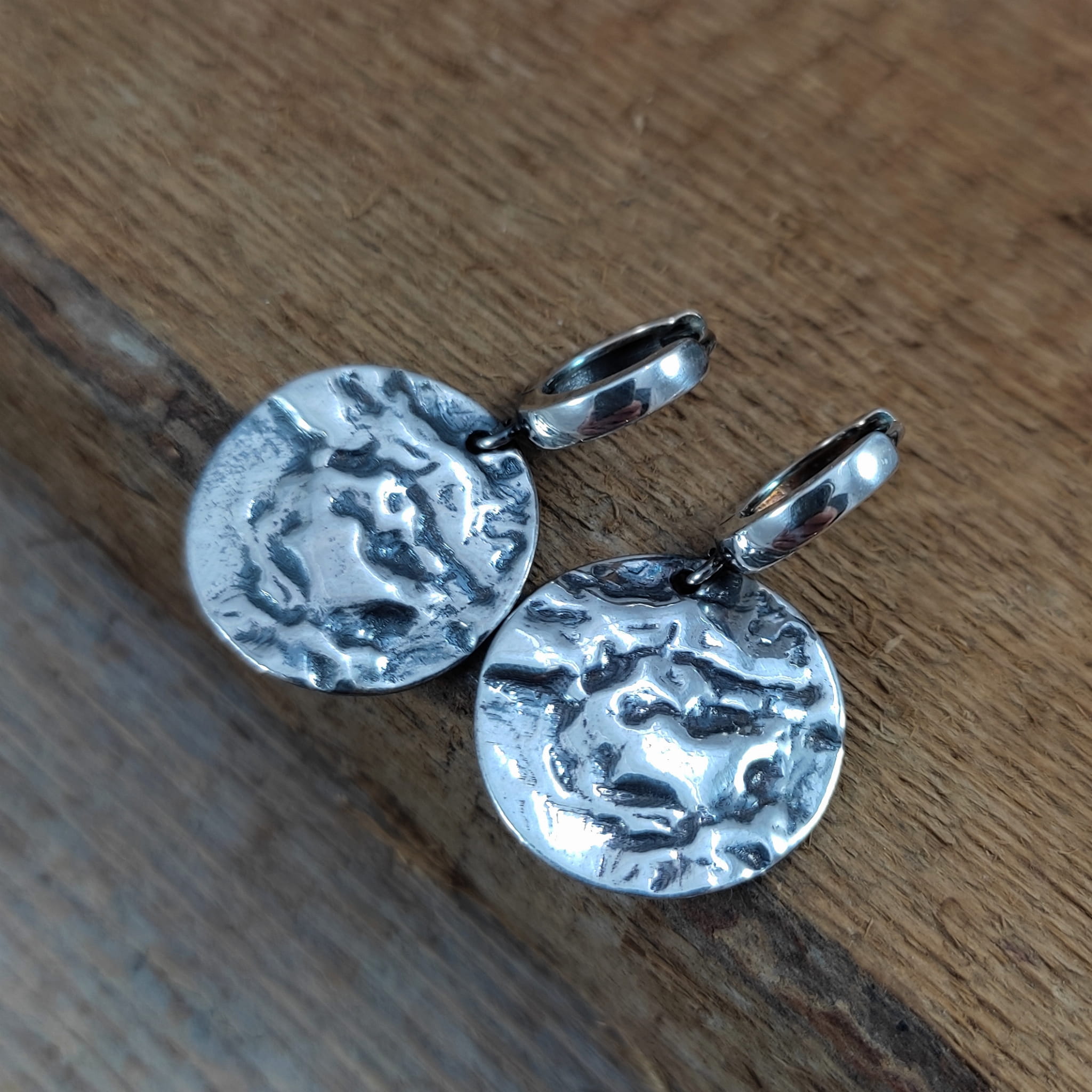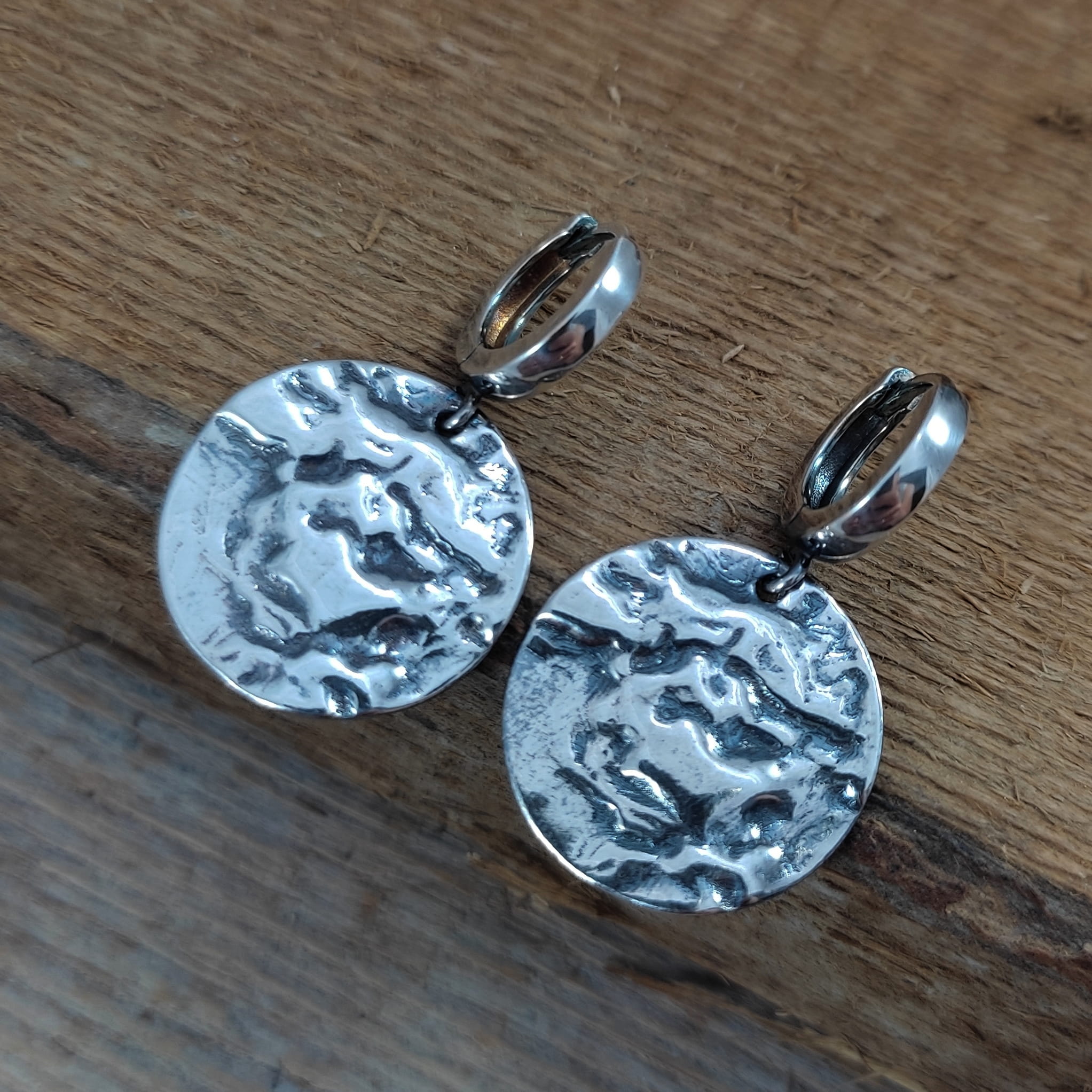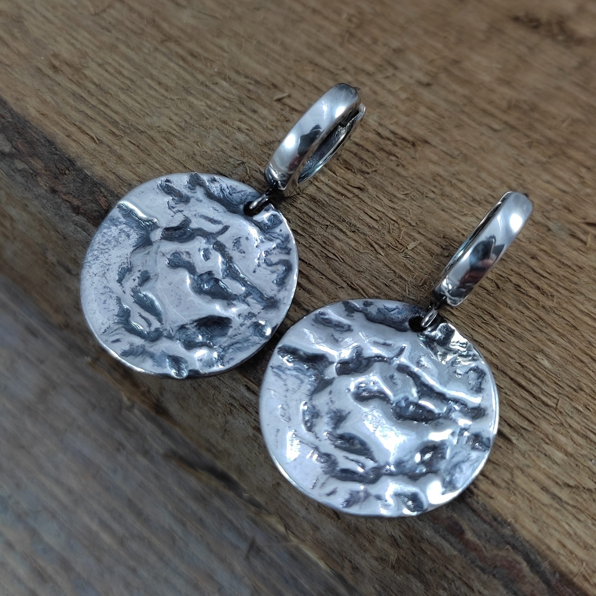 Kolczyki wykonane ze srebra 925, oksydowanego i wypolerowanego. Całkowita długość kolczyków wynosi ok. 3,2 cm. Elegancko zapakowane.