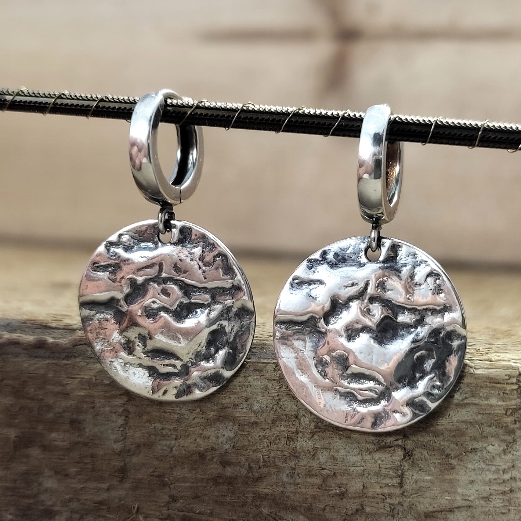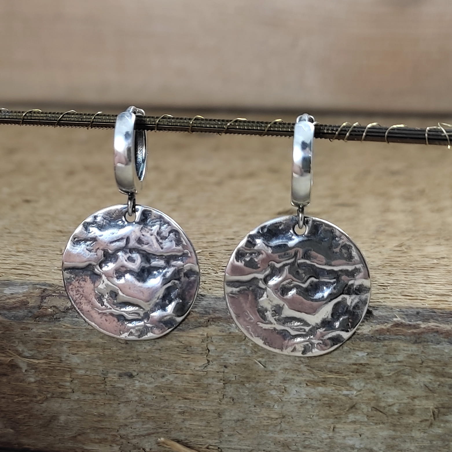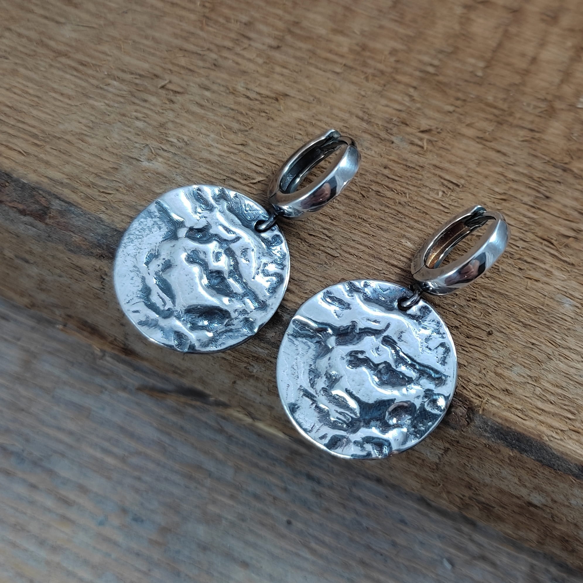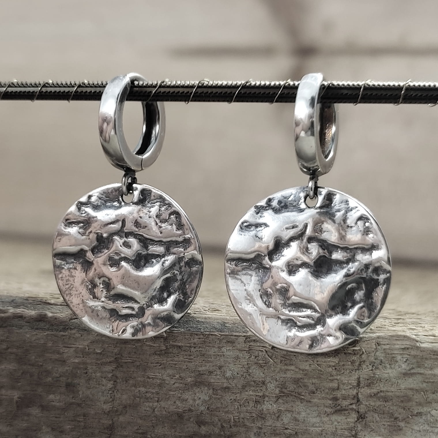 Kolczyki wykonane ze srebra 925, oksydowanego i wypolerowanego. Całkowita długość kolczyków wynosi ok. 3,2 cm. Elegancko zapakowane.