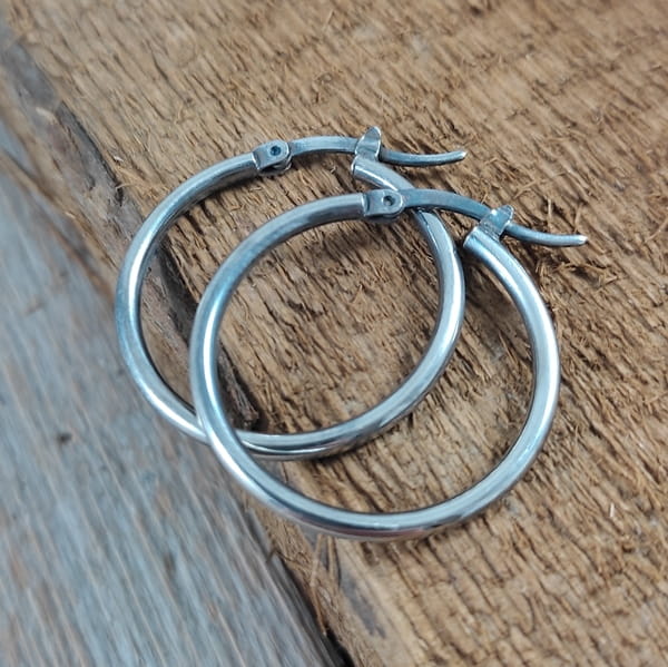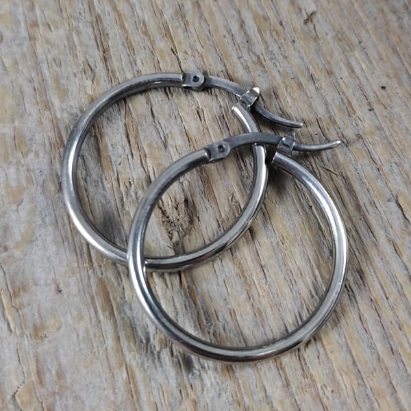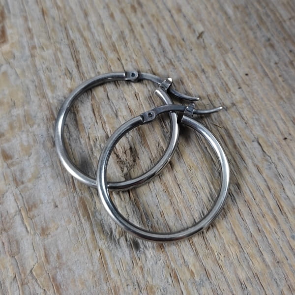 Kolczyki wykonane ze srebra 925, oksydowanego i wypolerowanego. Wielkość kół wynosi: 2,6 cm. Elegancko zapakowane.