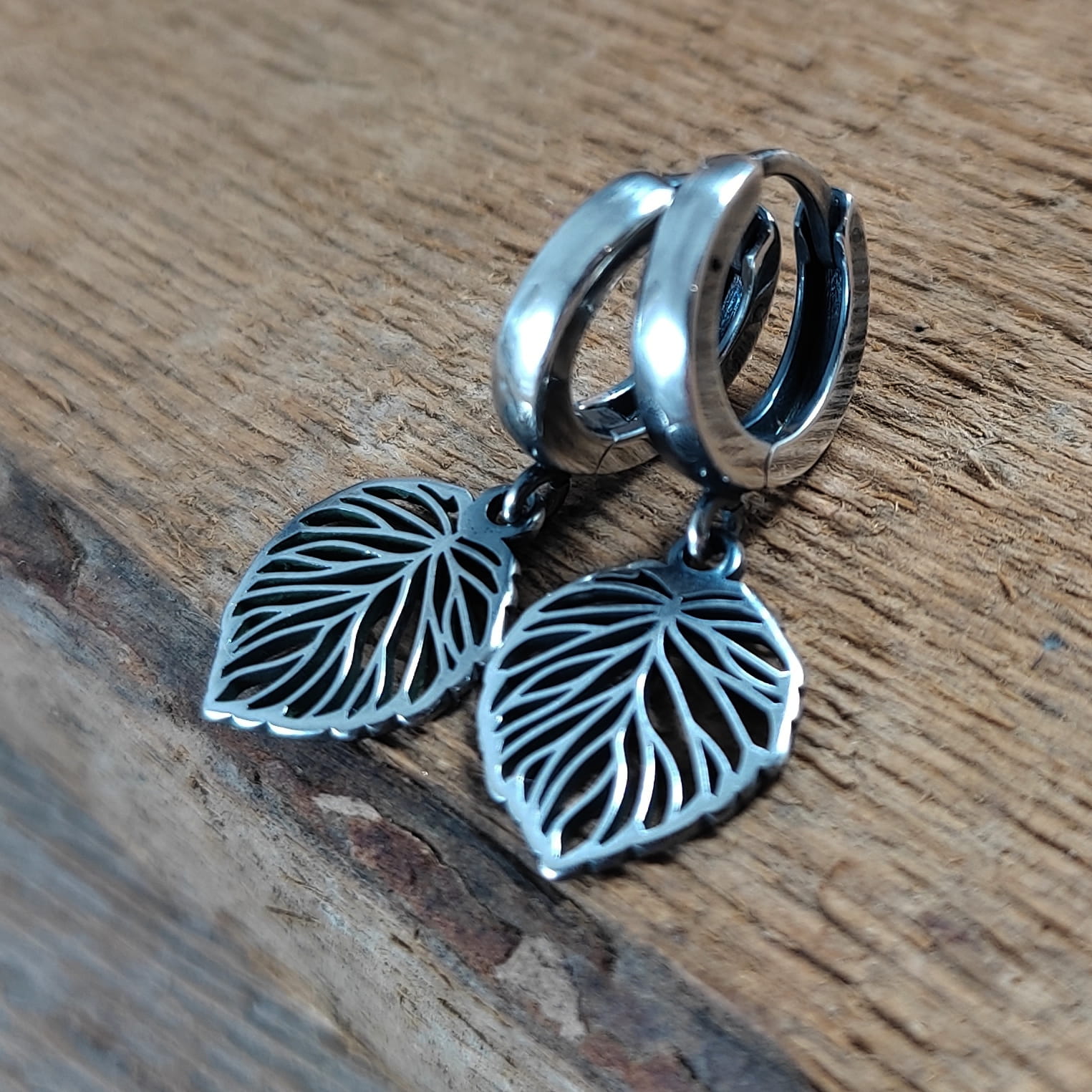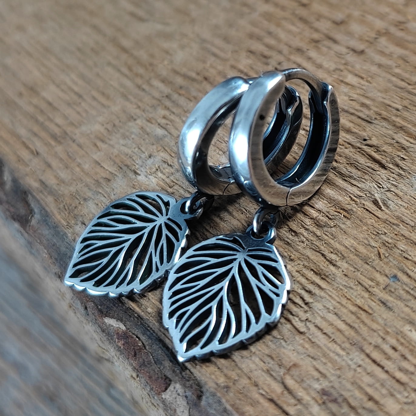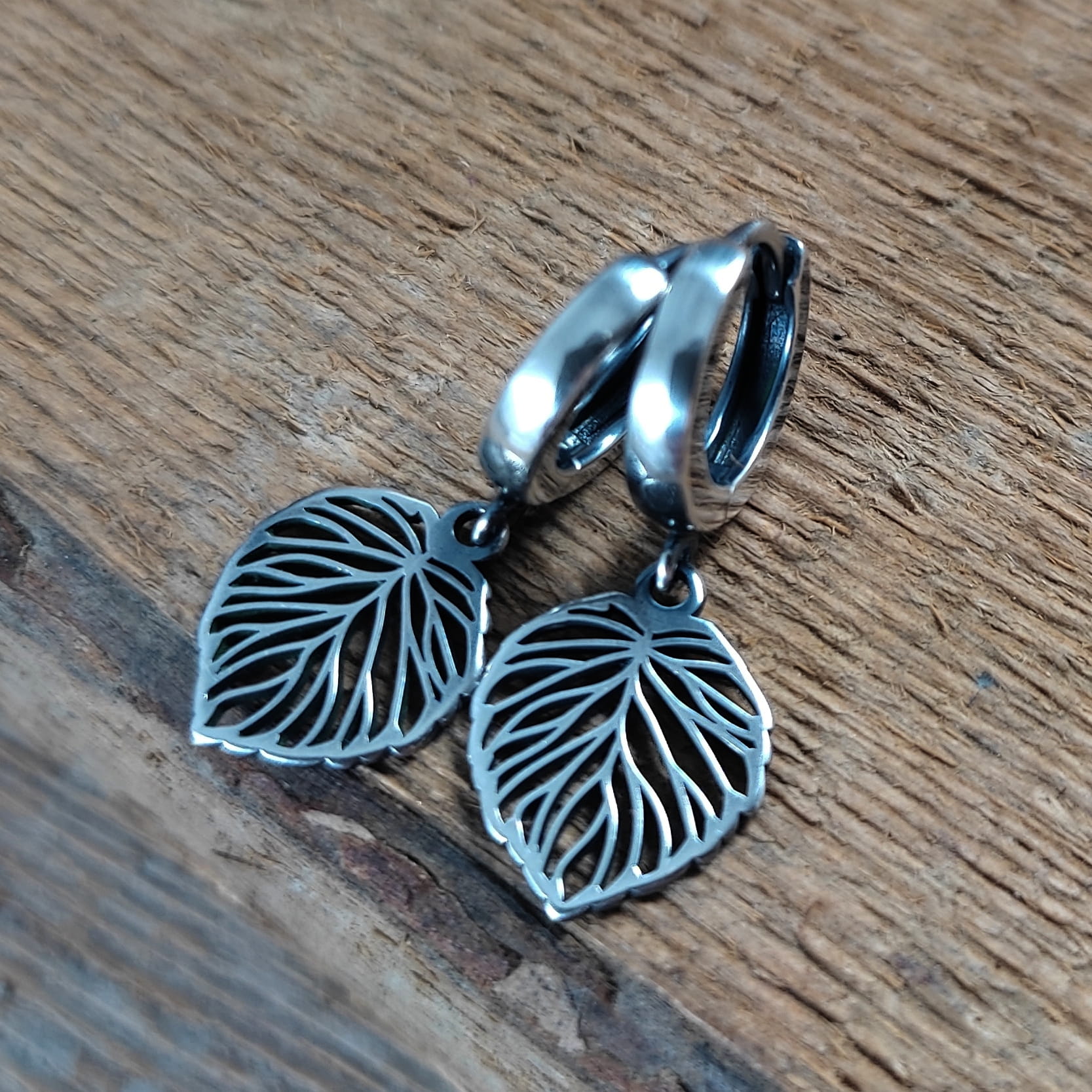 Kolczyki wykonane ze srebra 925, oksydowanego i wypolerowanego. Długość całkowita kolczyków wynosi ok. 2,6 cm. Wielkość blaszki 14,2/11,2 mm. Elegancko zapakowane.