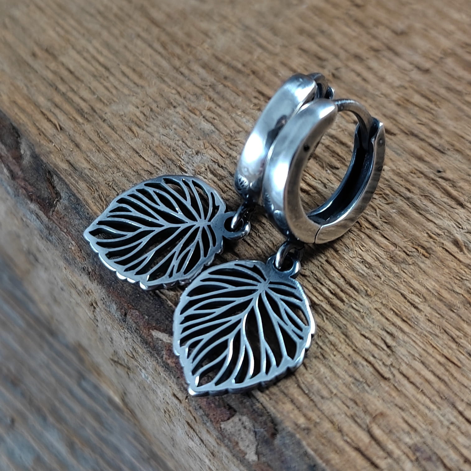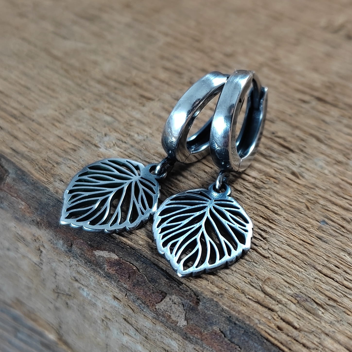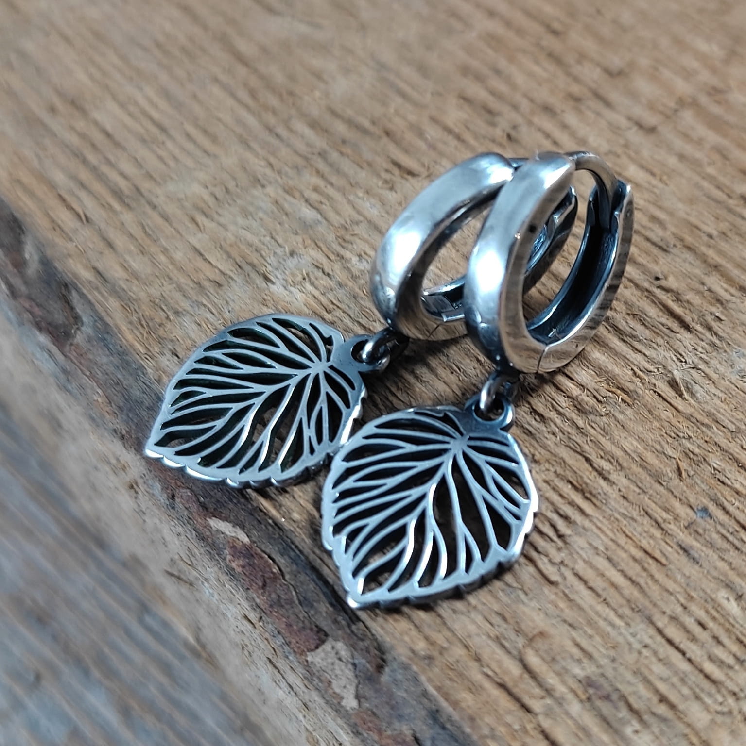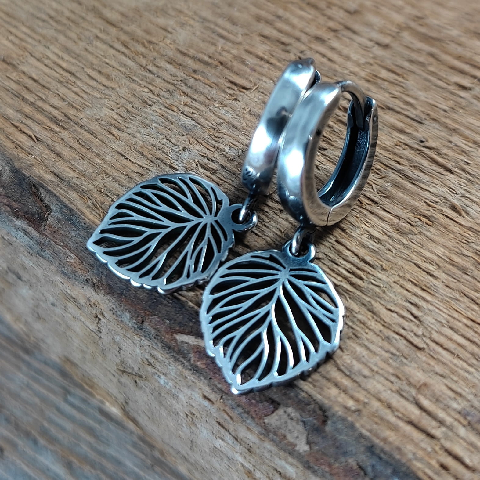 Kolczyki wykonane ze srebra 925, oksydowanego i wypolerowanego. Długość całkowita kolczyków wynosi ok. 2,6 cm. Wielkość blaszki 14,2/11,2 mm. Elegancko zapakowane.