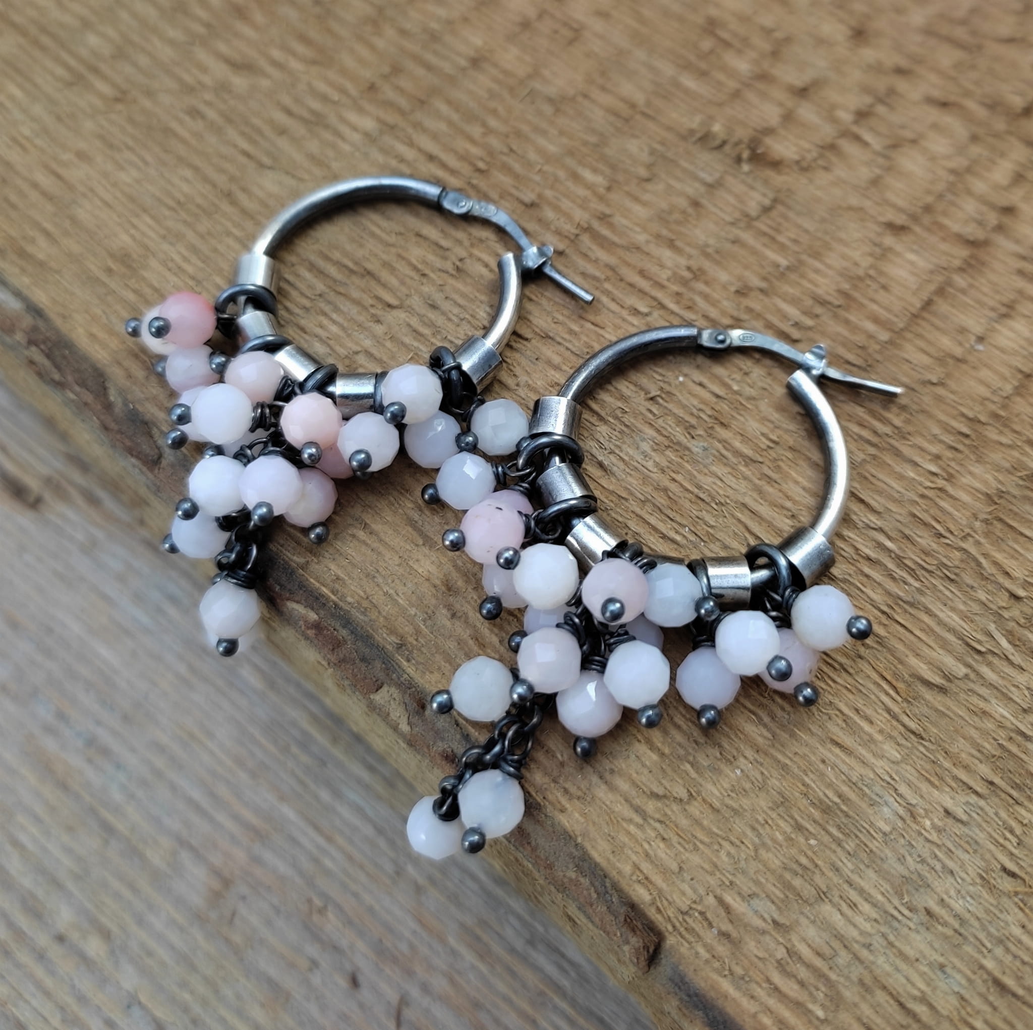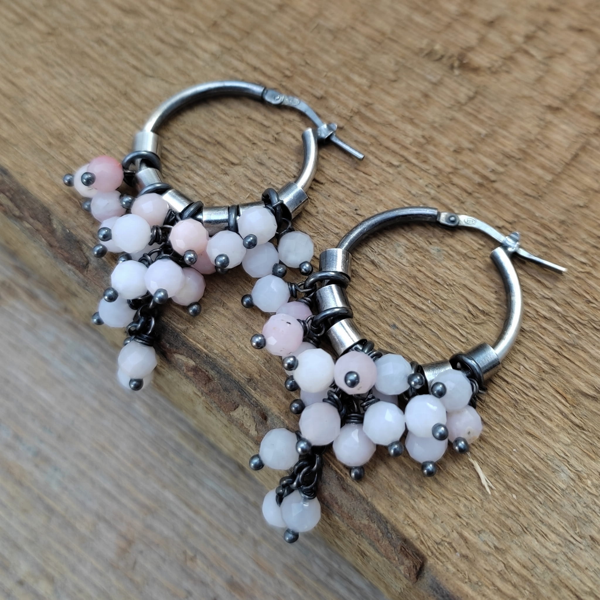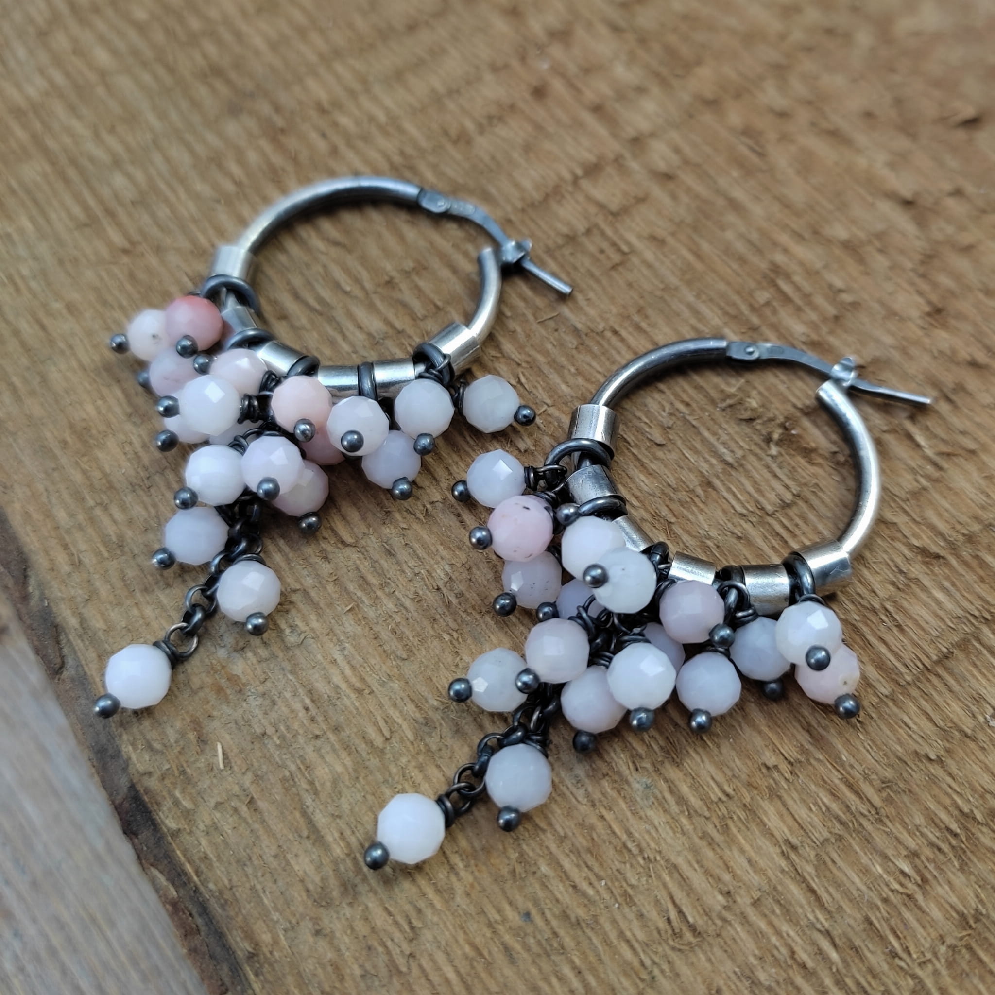 Kolczyki z kulami fasetowanego opalu peruwiańskiego. Fasetowany opal peruwiański o średnicy 4.5 mm. Kamienie posiadają niedoskonałości. Długość całkowita kolczyków wynosi ok. 53 mm. Kolczyki zostały wykonane w całości ze srebra 925, srebro oksydowane. Zapakowane w eleganckie pudełko.