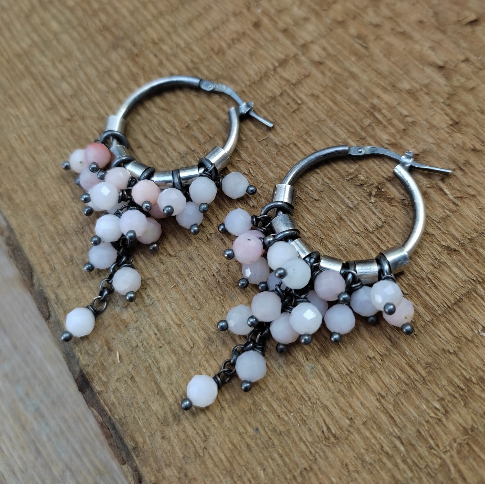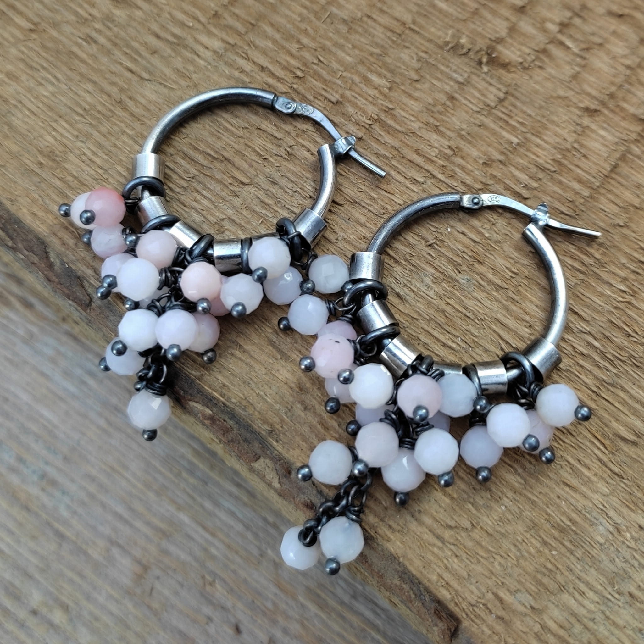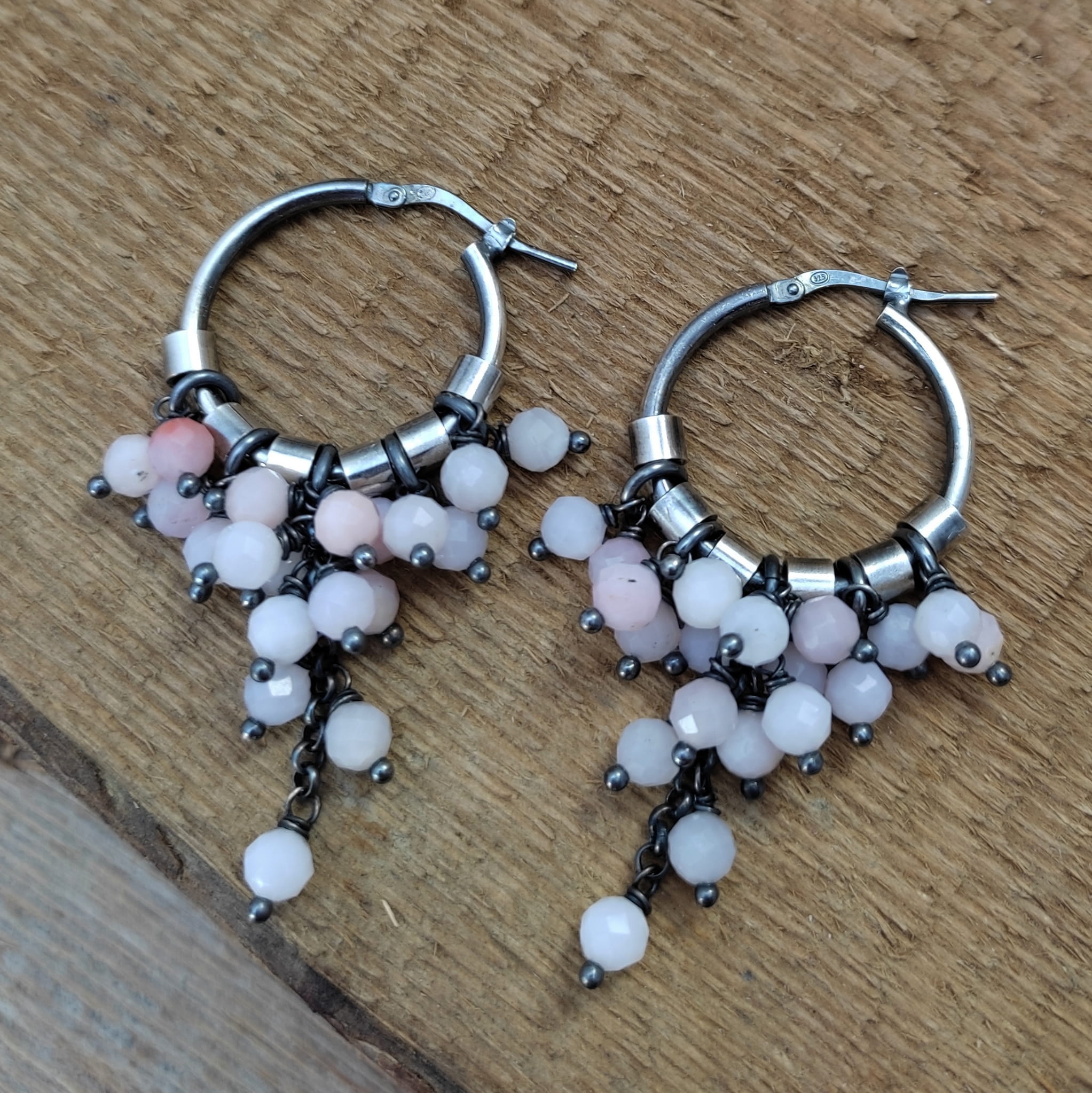 Kolczyki z kulami fasetowanego opalu peruwiańskiego. Fasetowany opal peruwiański o średnicy 4.5 mm. Kamienie posiadają niedoskonałości. Długość całkowita kolczyków wynosi ok. 53 mm. Kolczyki zostały wykonane w całości ze srebra 925, srebro oksydowane. Zapakowane w eleganckie pudełko.