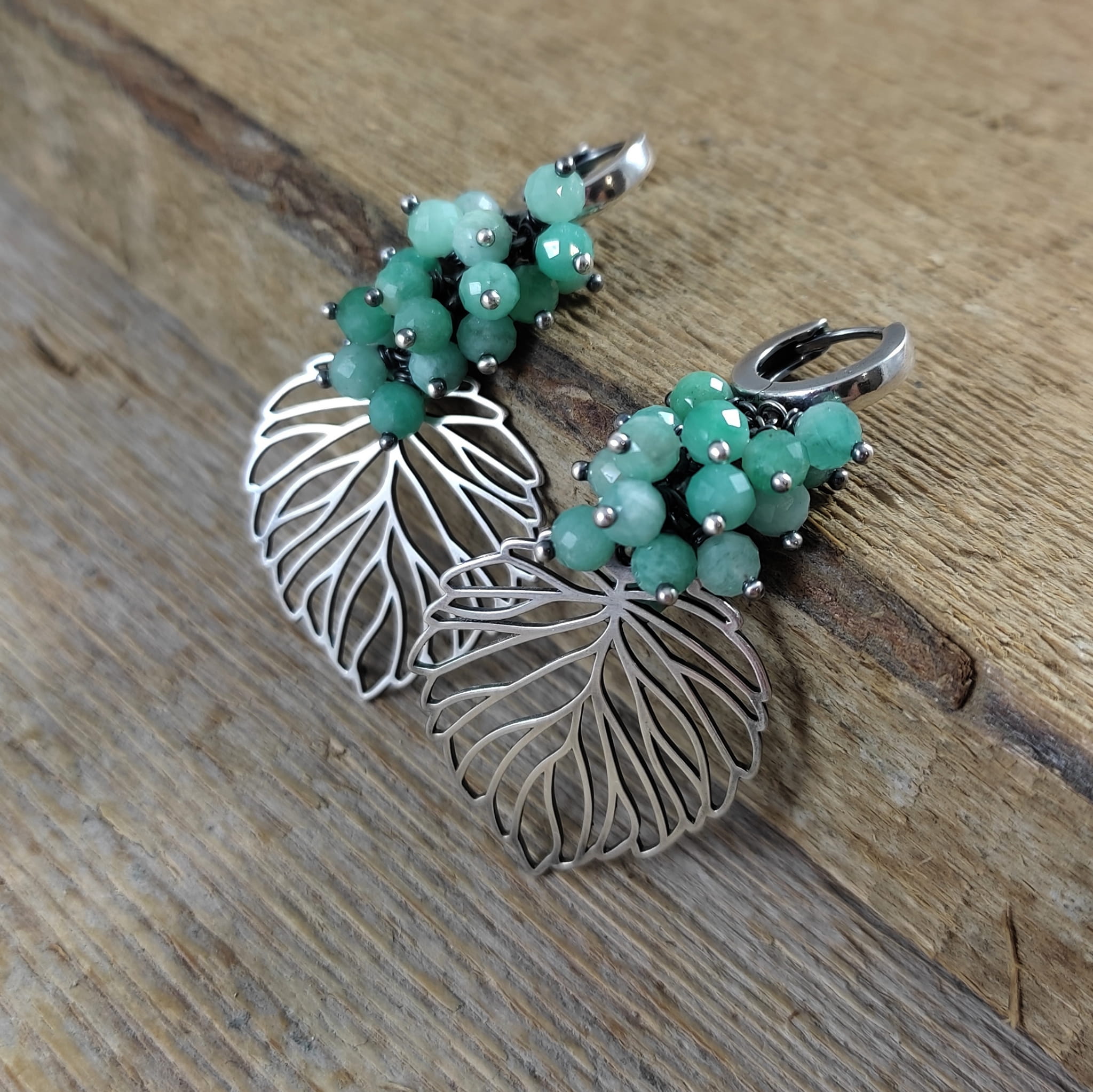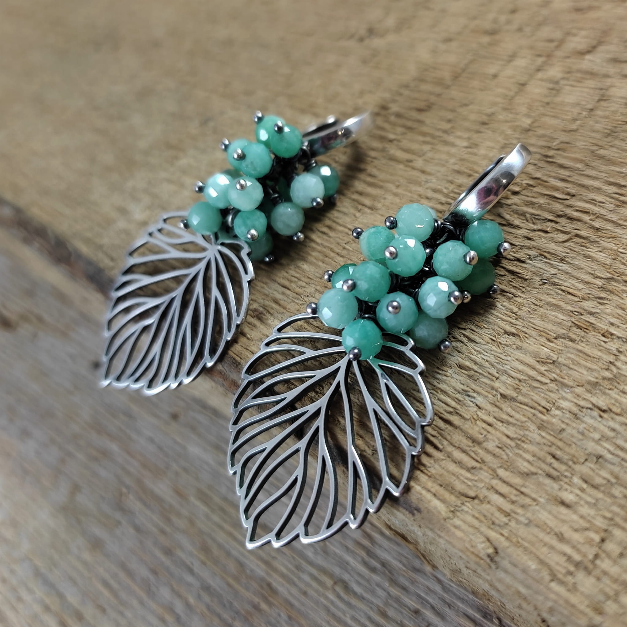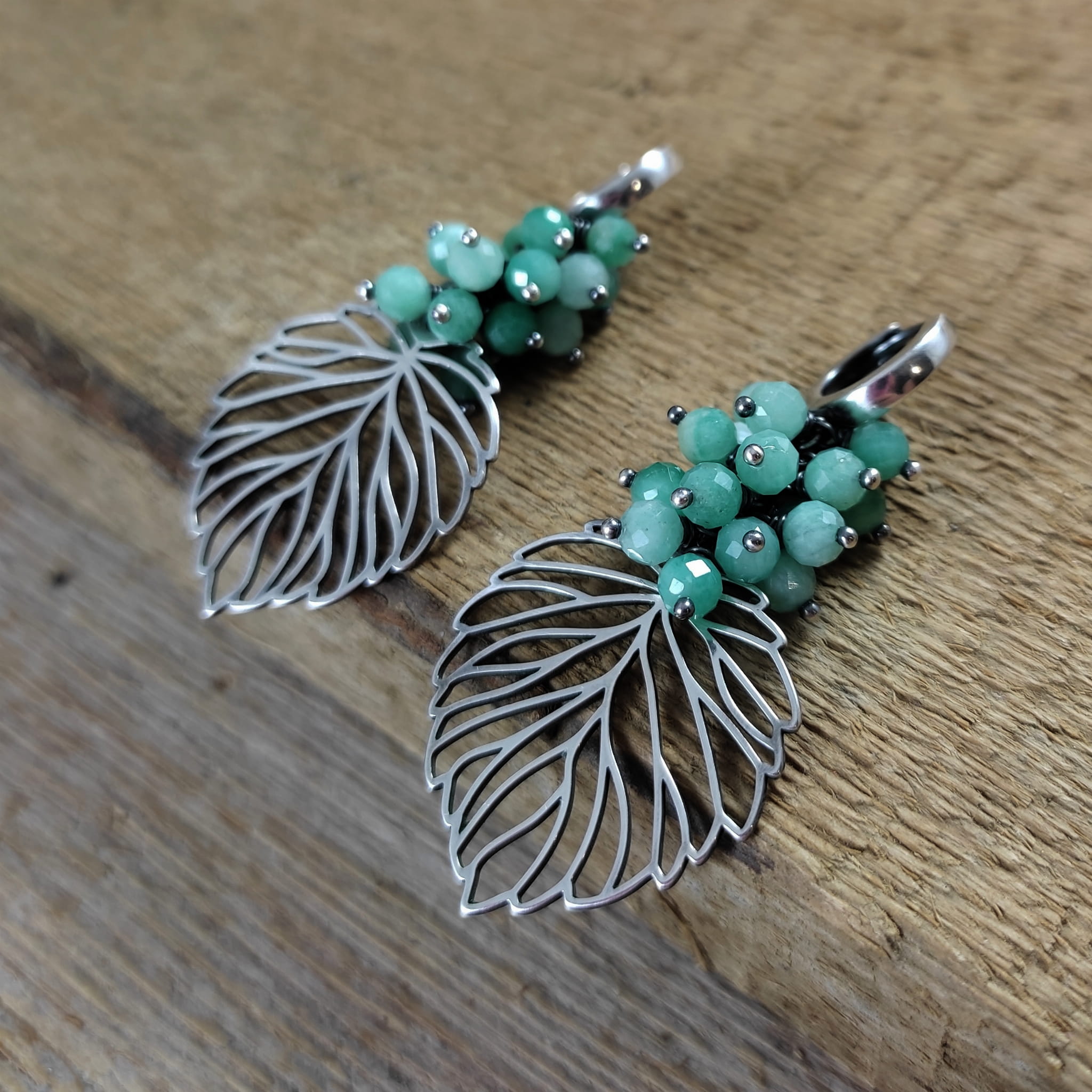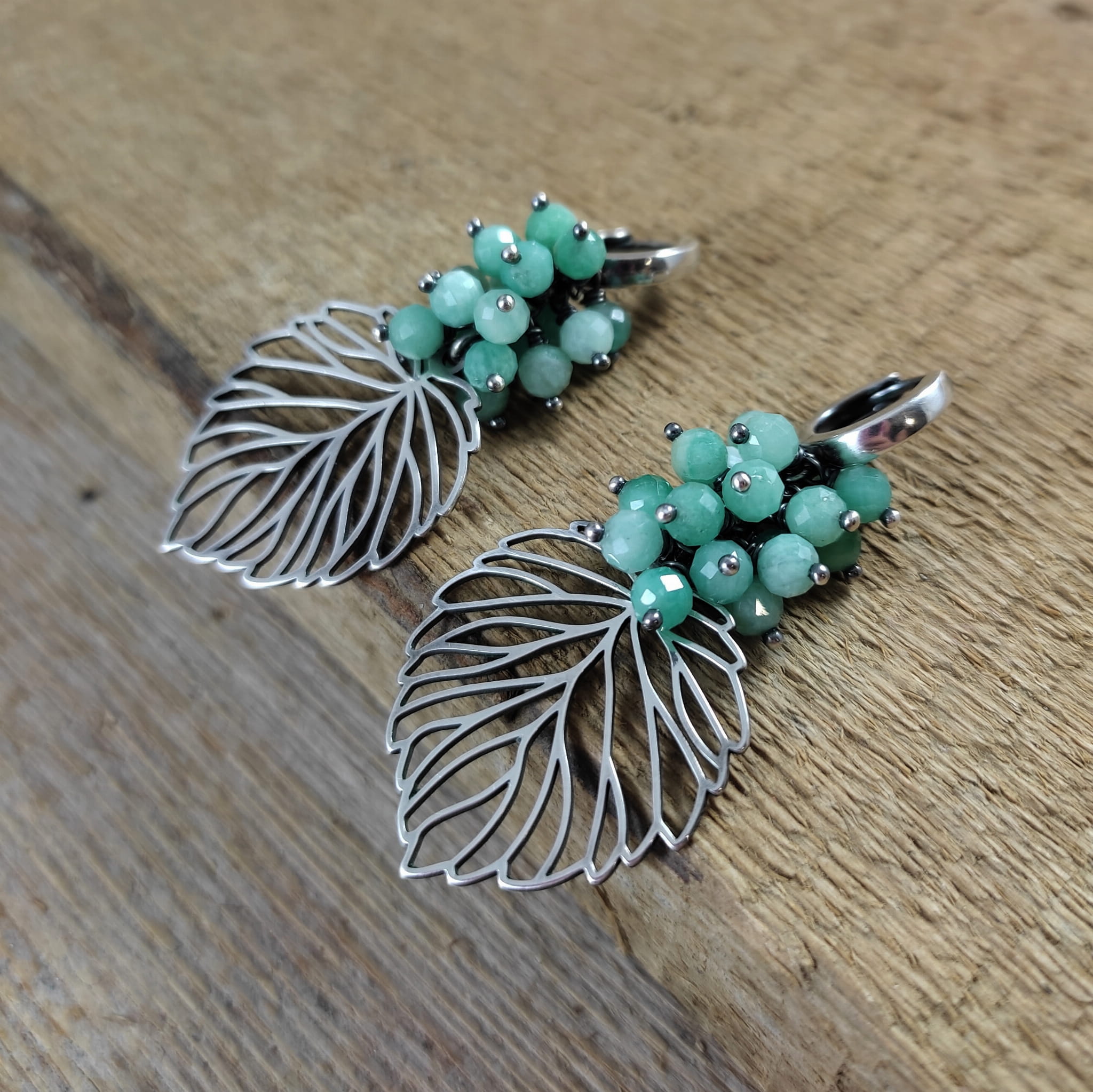 KOLCZYKI - LIŚCIE ZE SZMARAGDEM