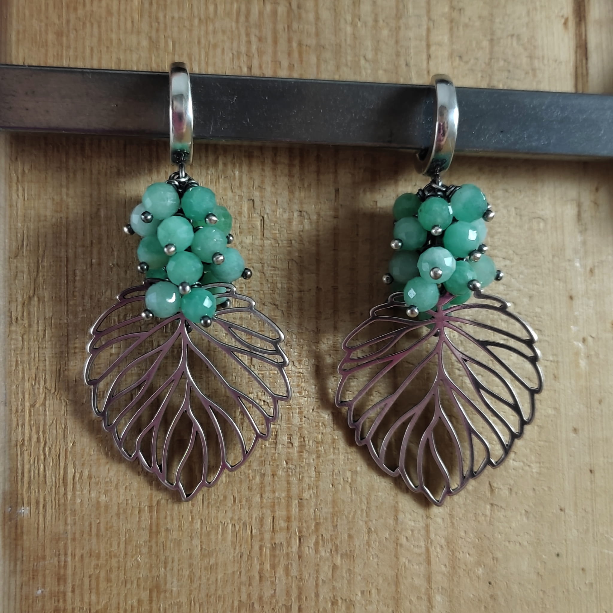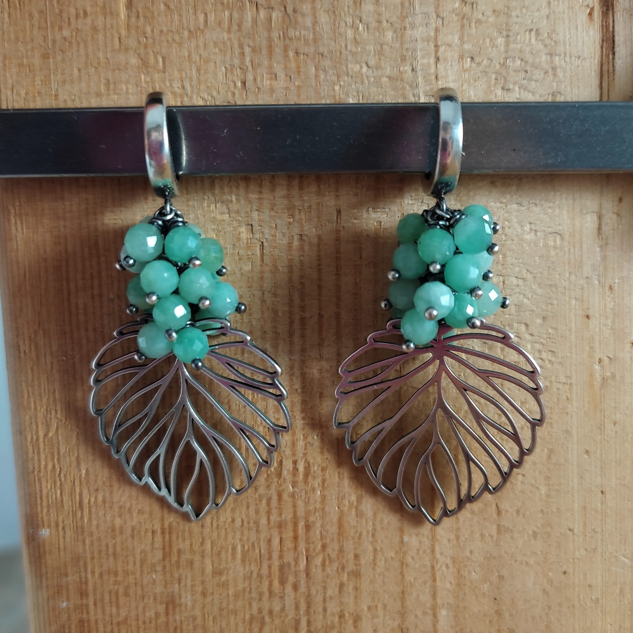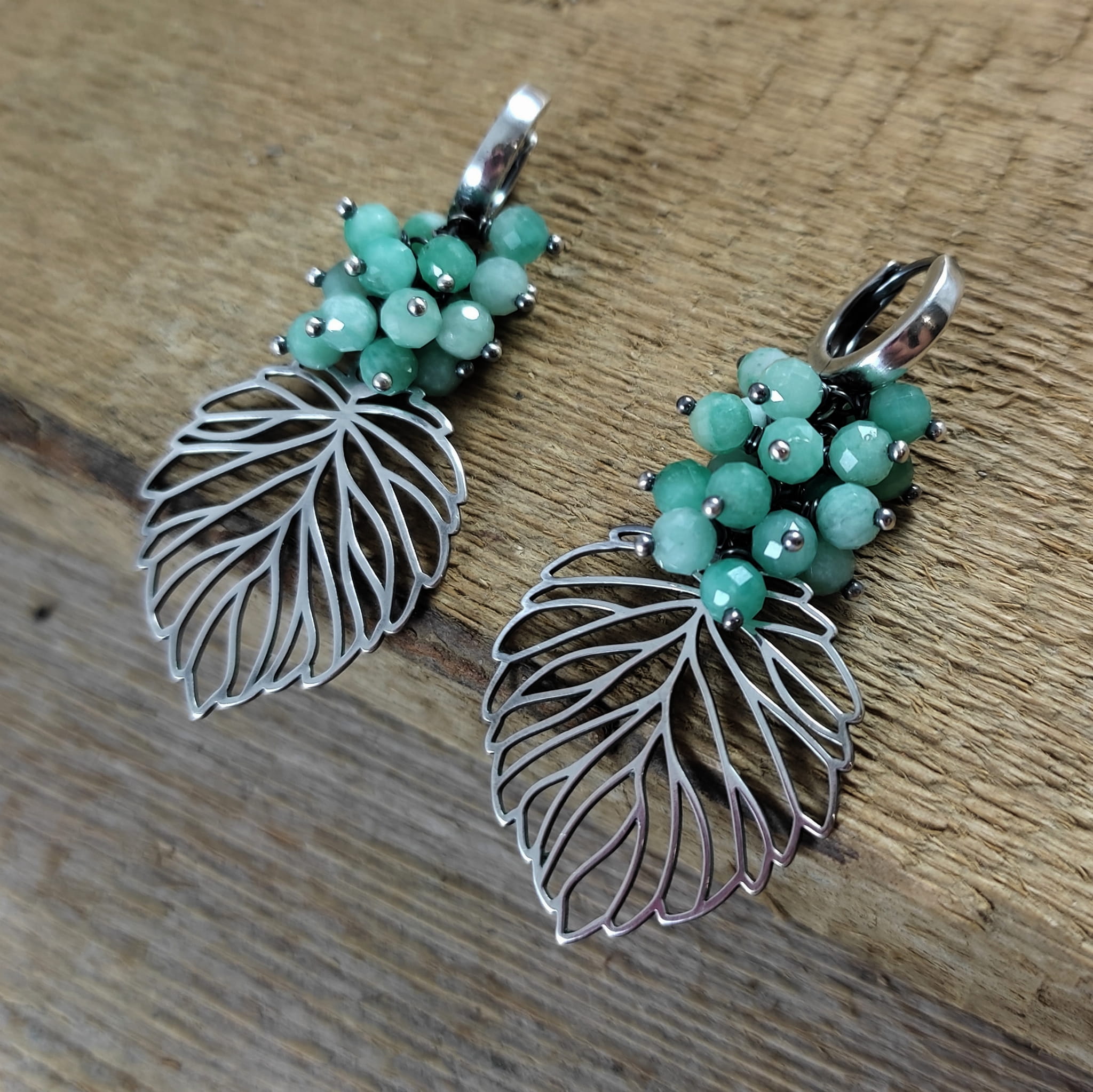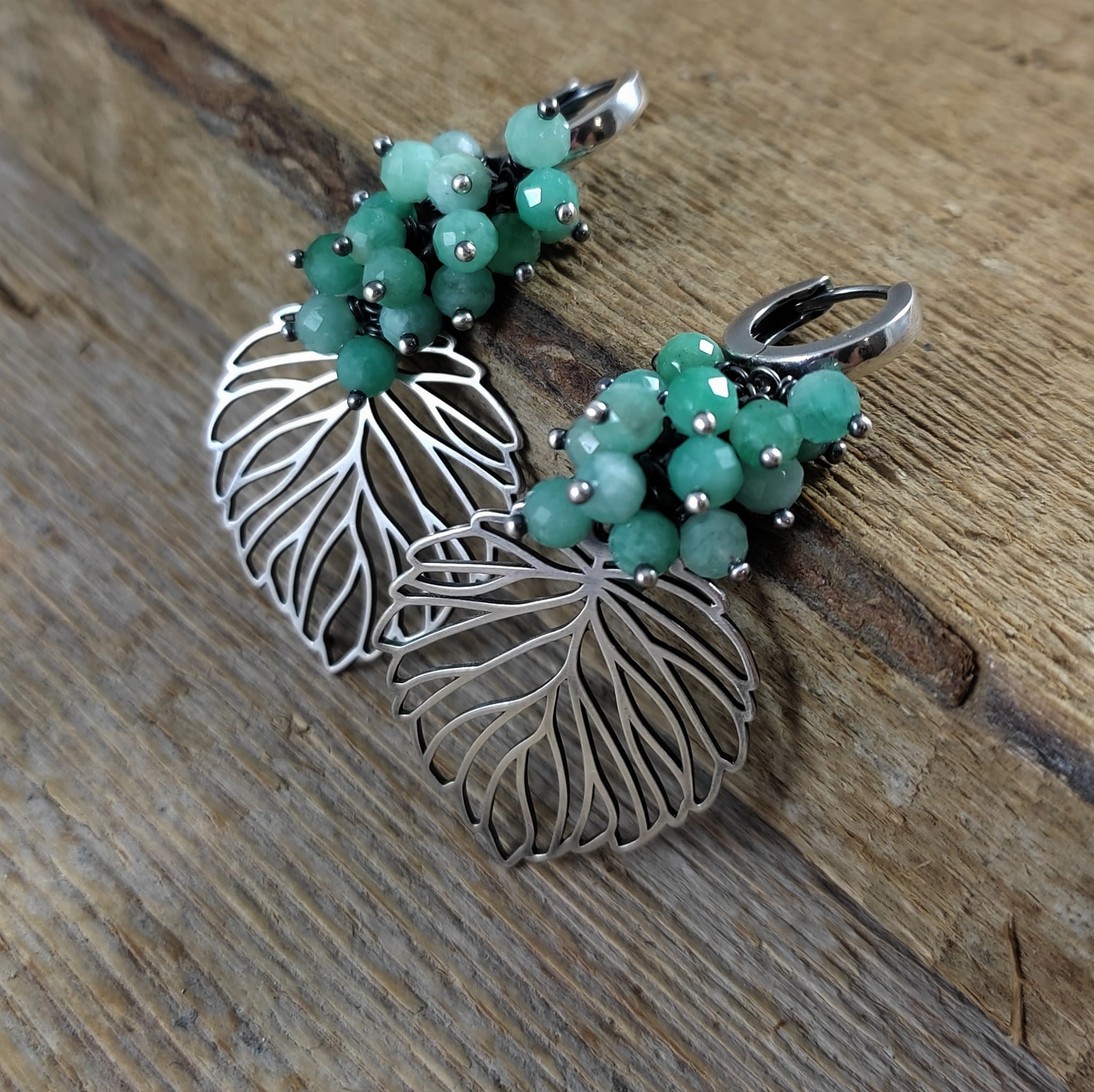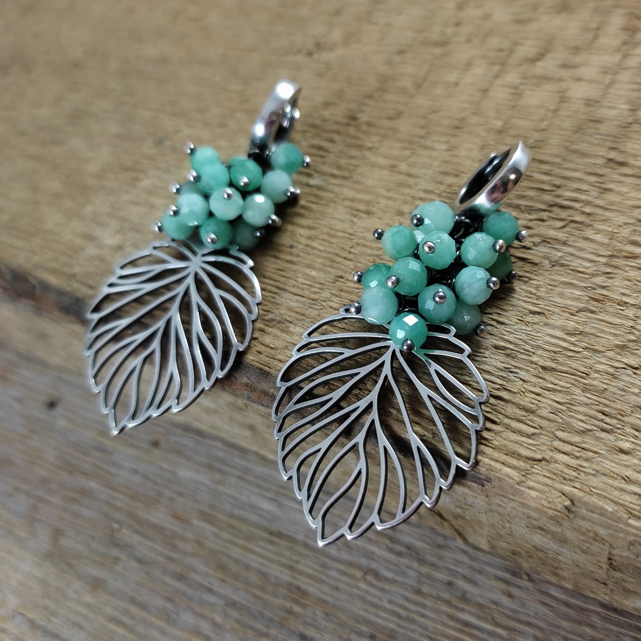 KOLCZYKI - LIŚCIE ZE SZMARAGDEM
