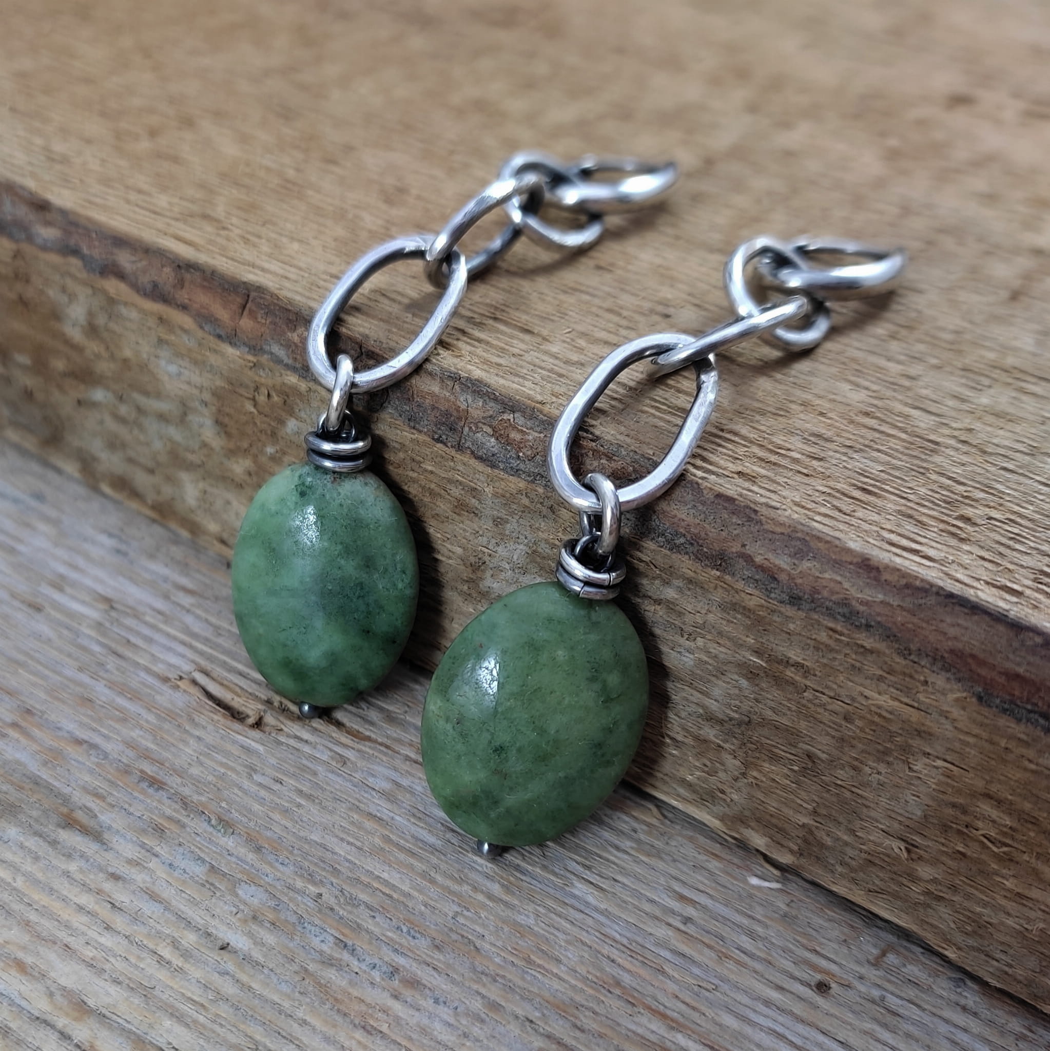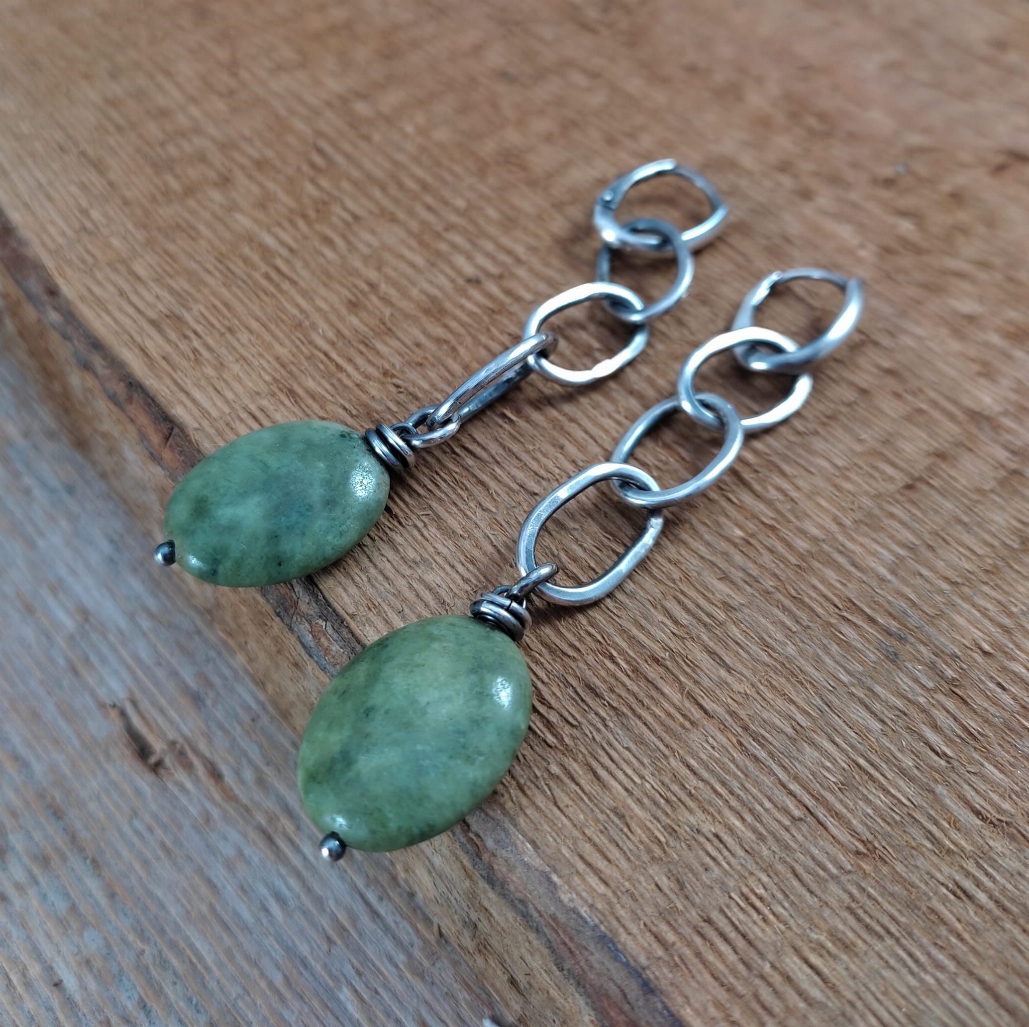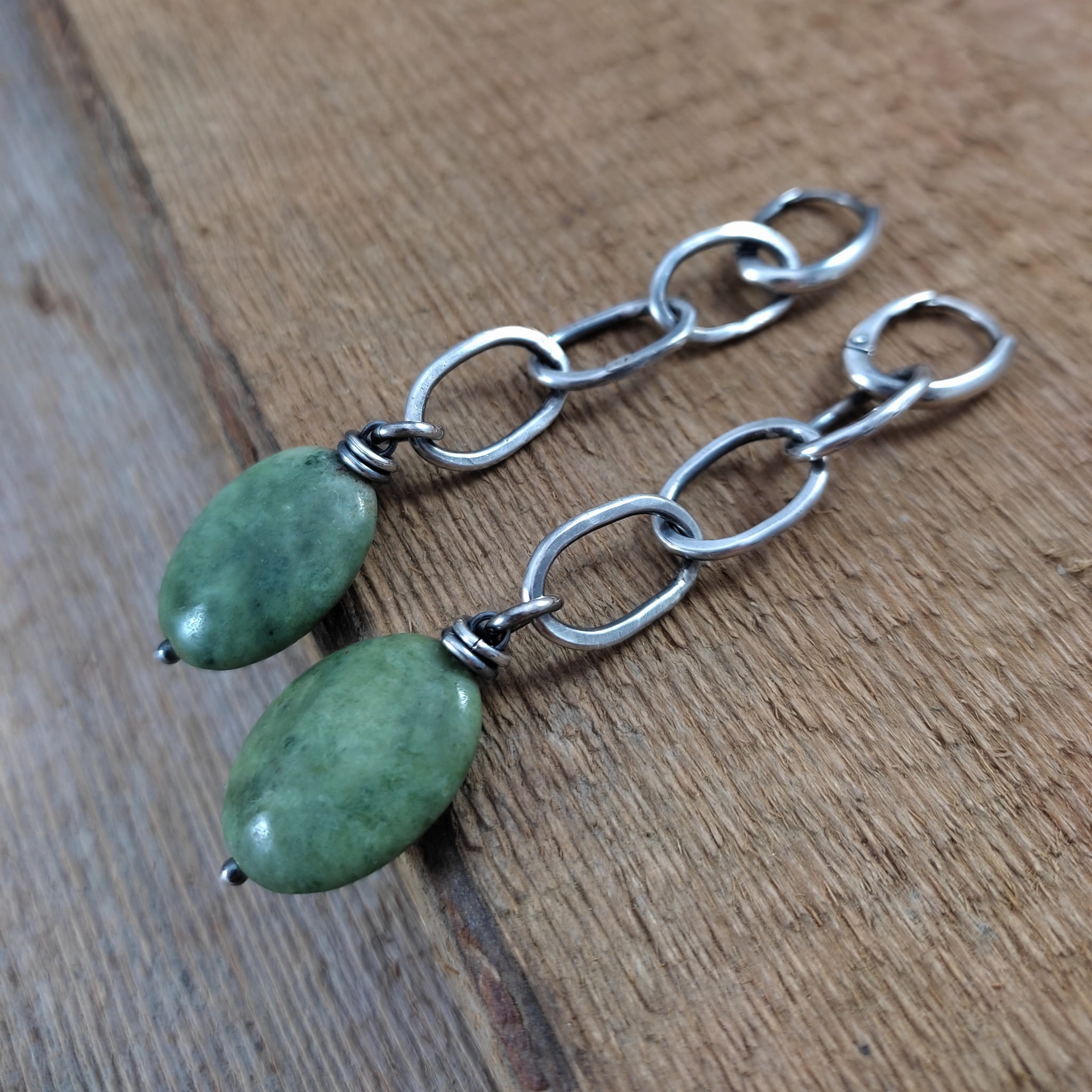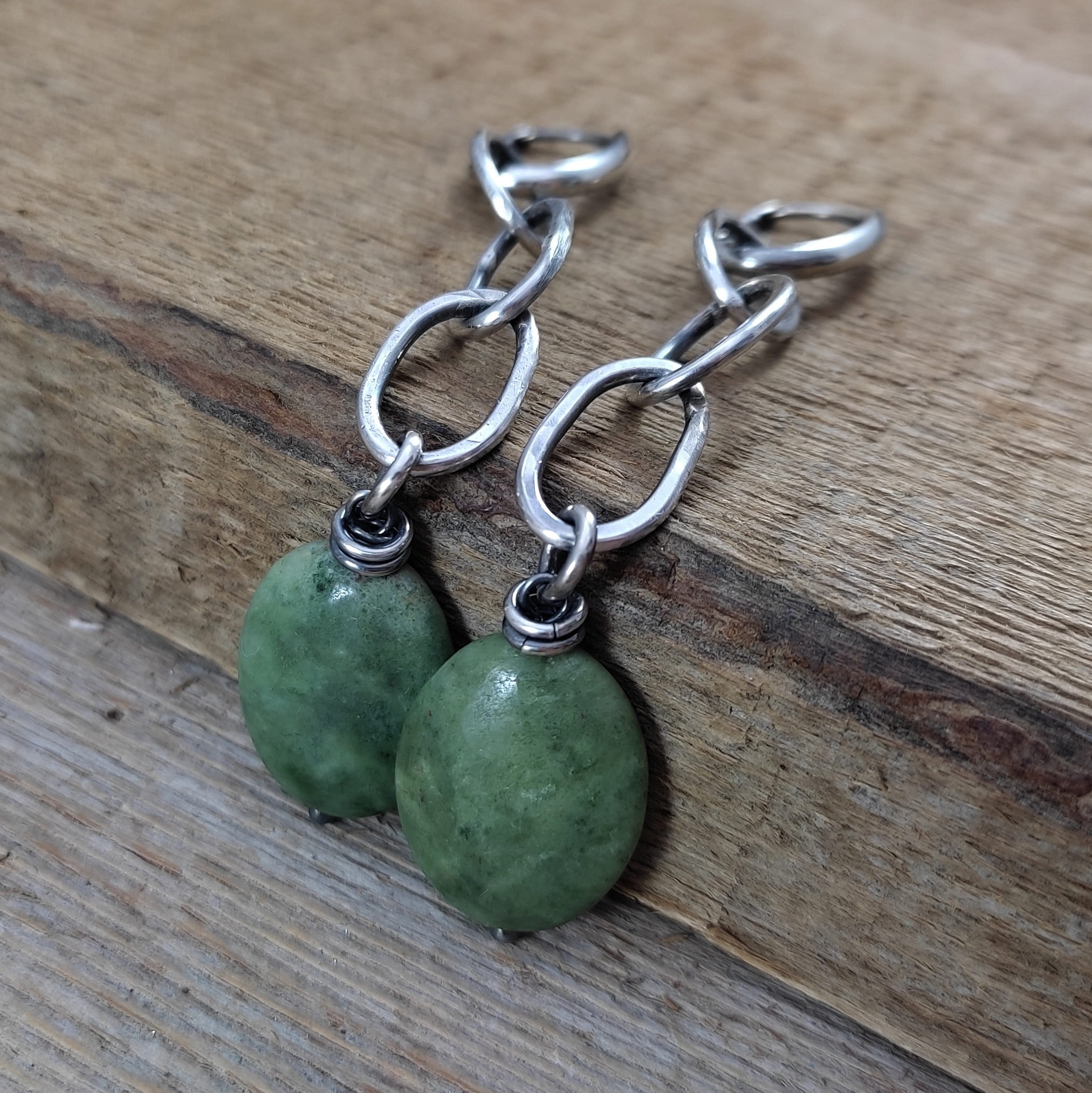 Kolczyki wykonane z owali opalu ok. 15/20 mm. Całość oprawiona w srebro 925, oksydowane i wypolerowane. Długość całkowita kolczyków wynosi ok. 8,3 cm. Elegancko zapakowane.