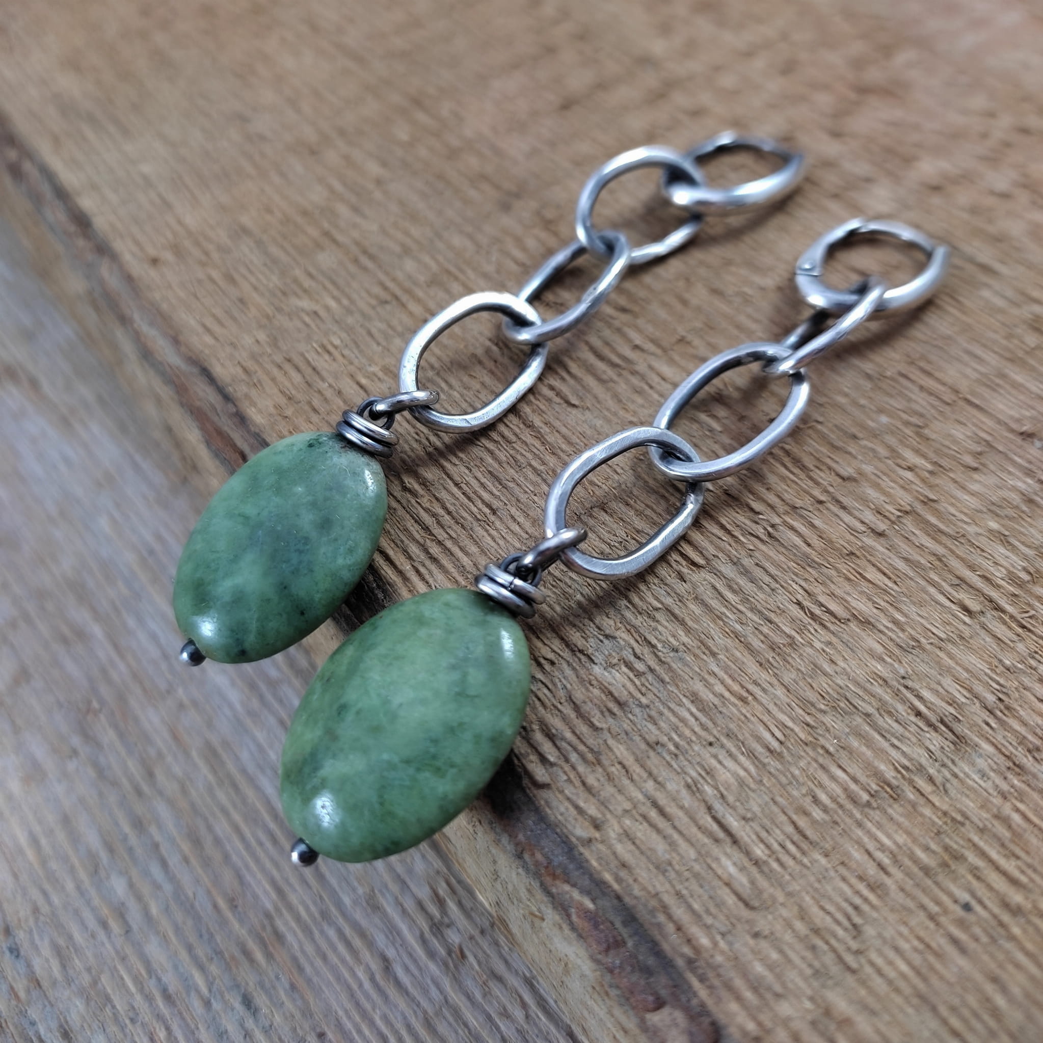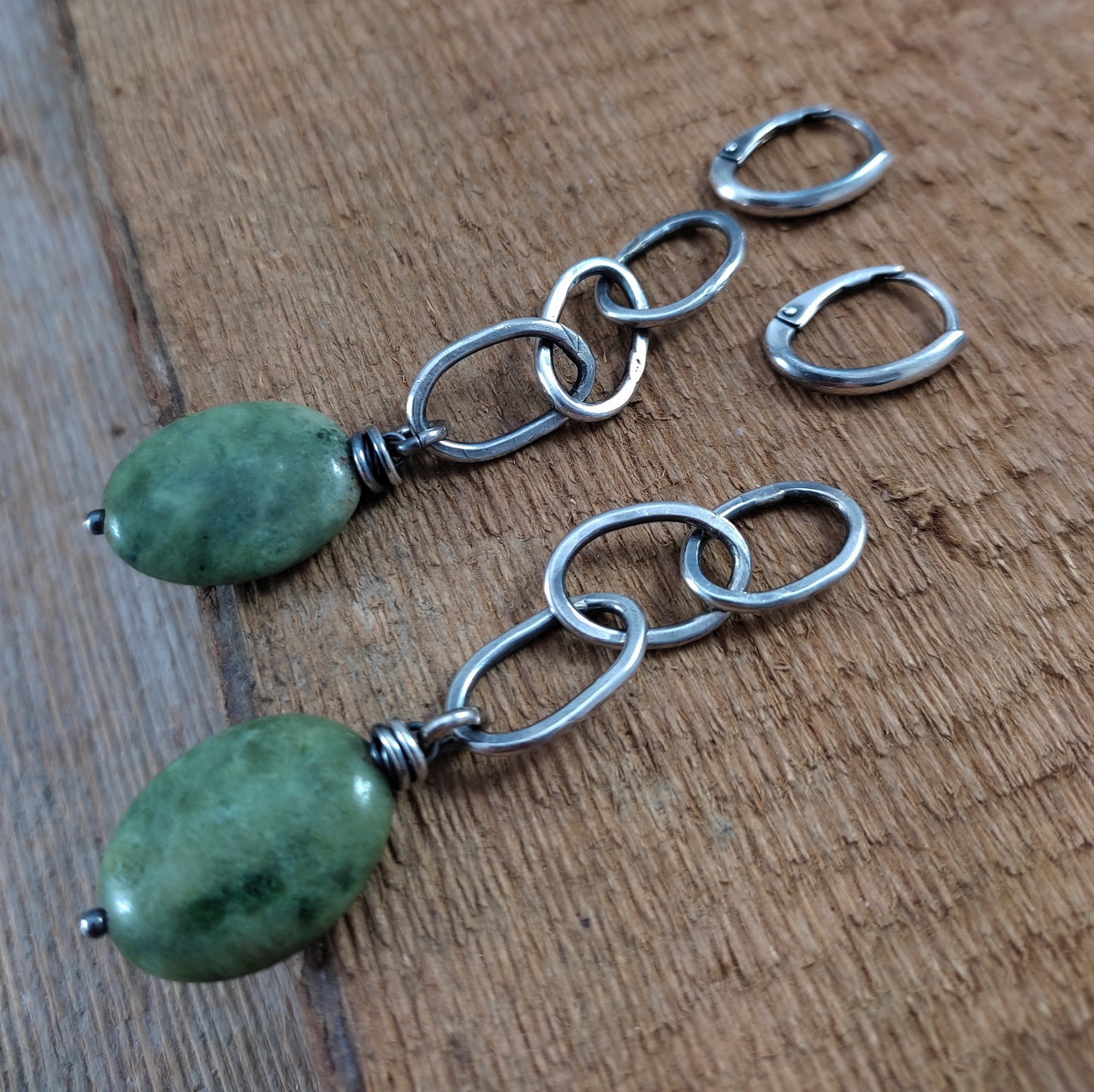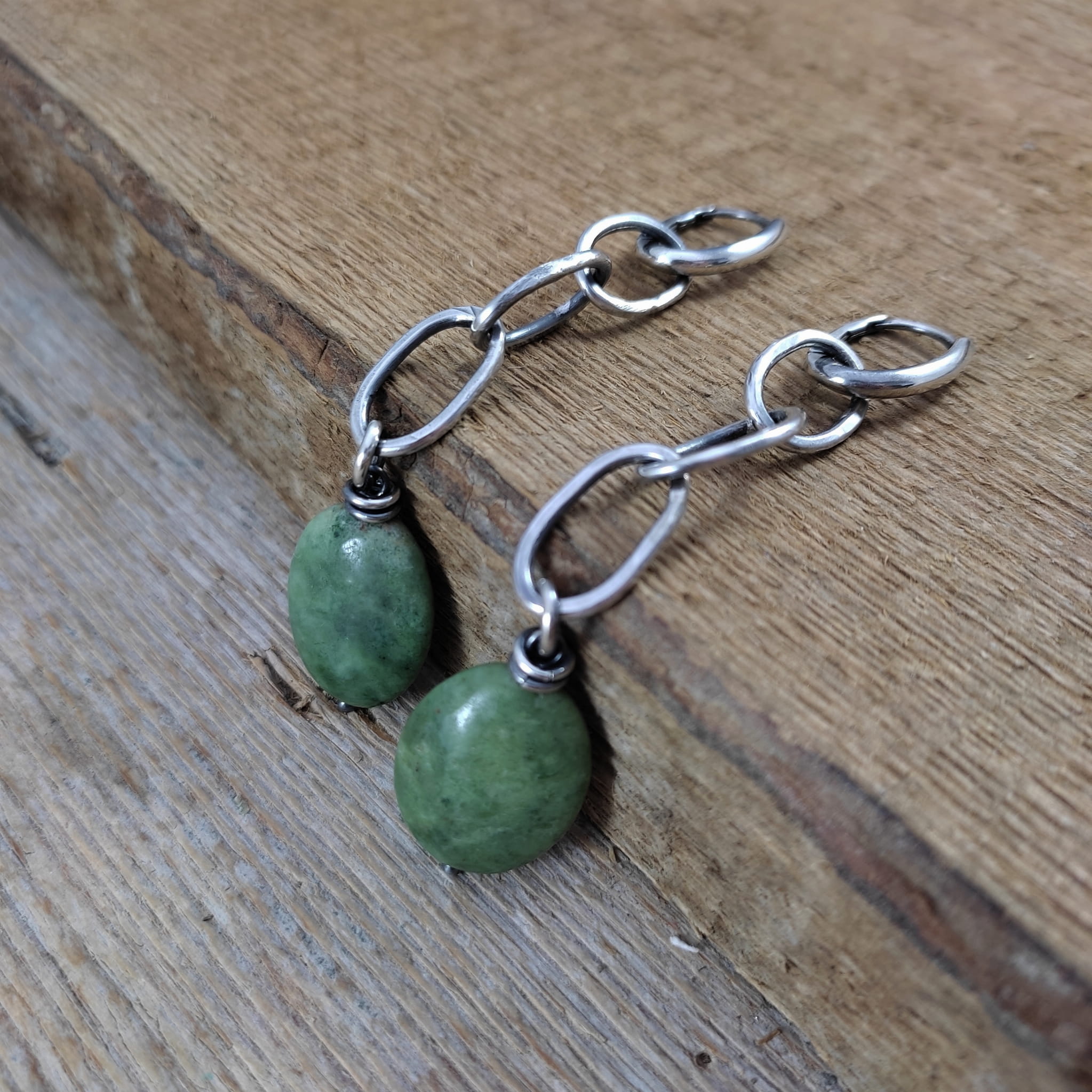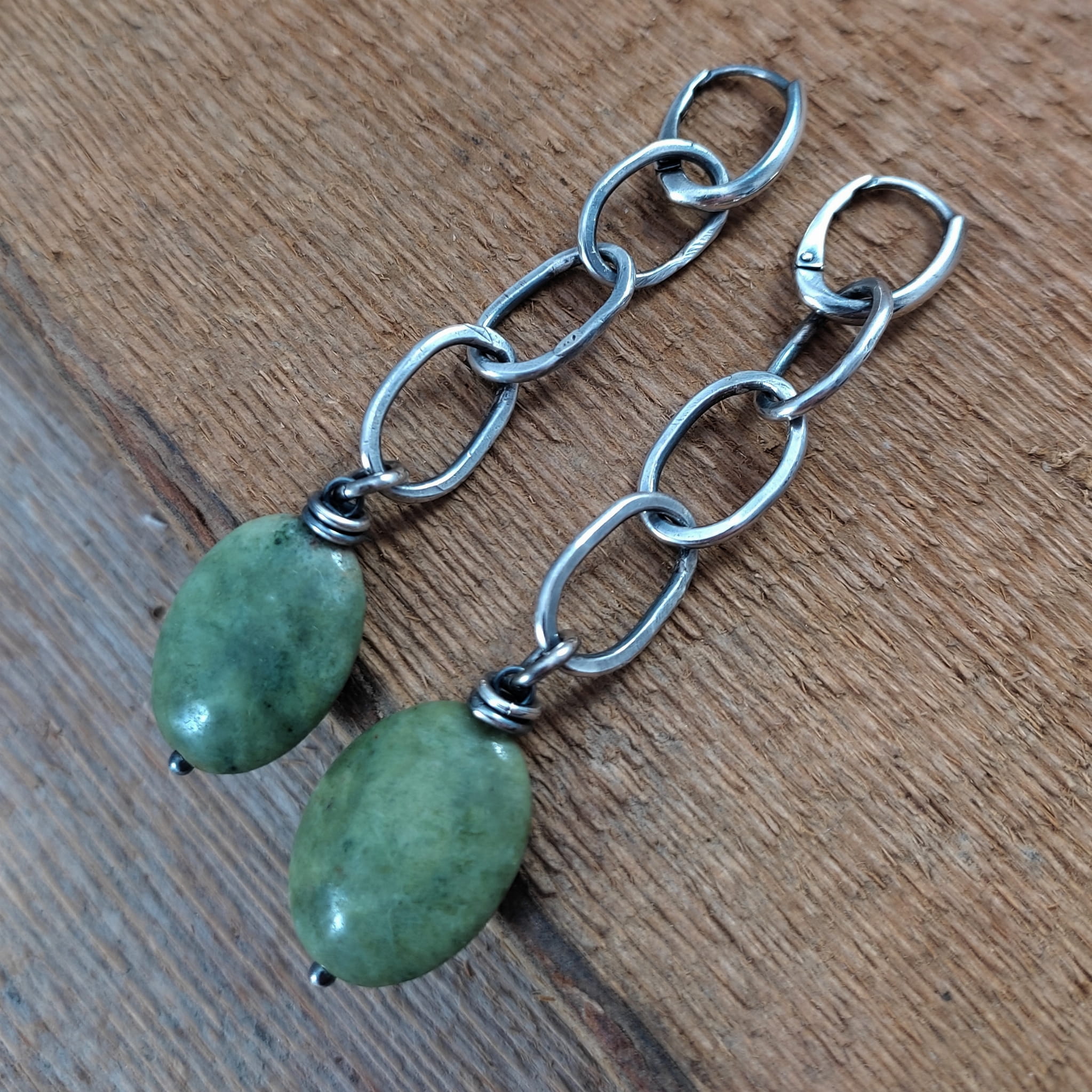 Kolczyki wykonane z owali opalu ok. 15/20 mm. Całość oprawiona w srebro 925, oksydowane i wypolerowane. Długość całkowita kolczyków wynosi ok. 8,3 cm. Elegancko zapakowane.