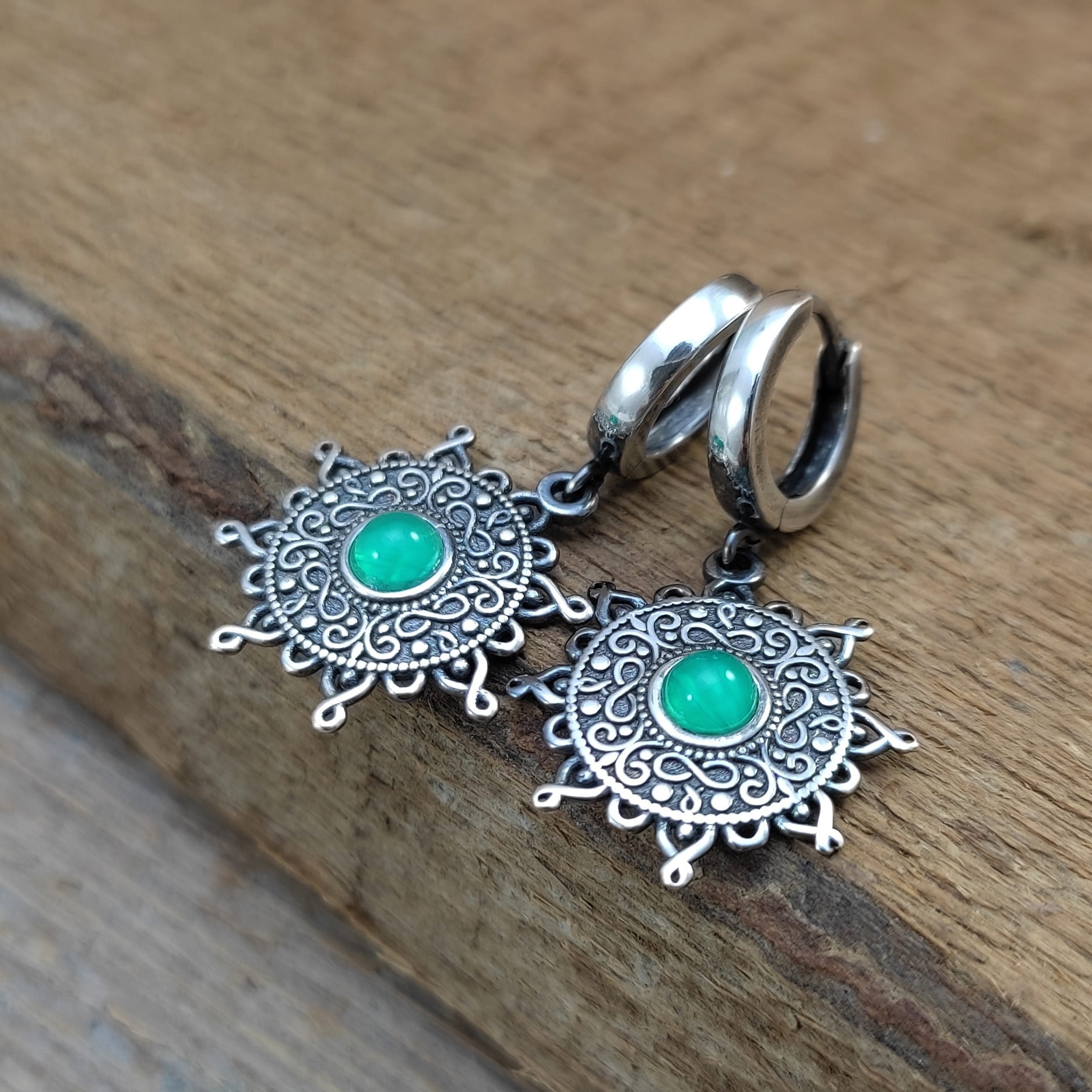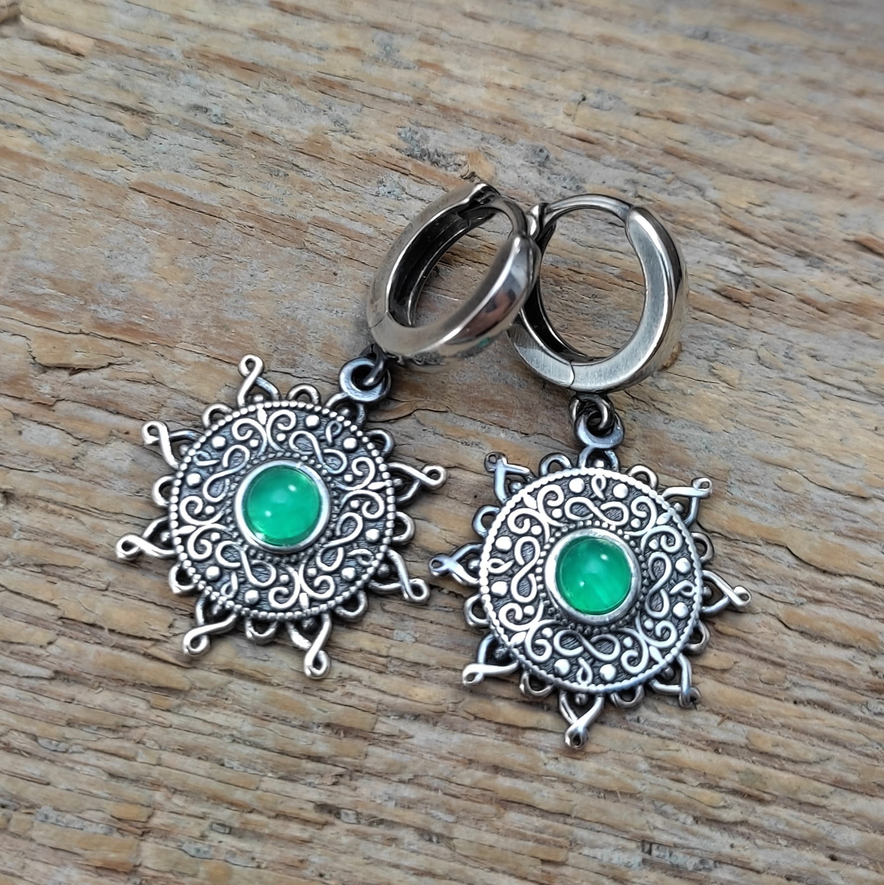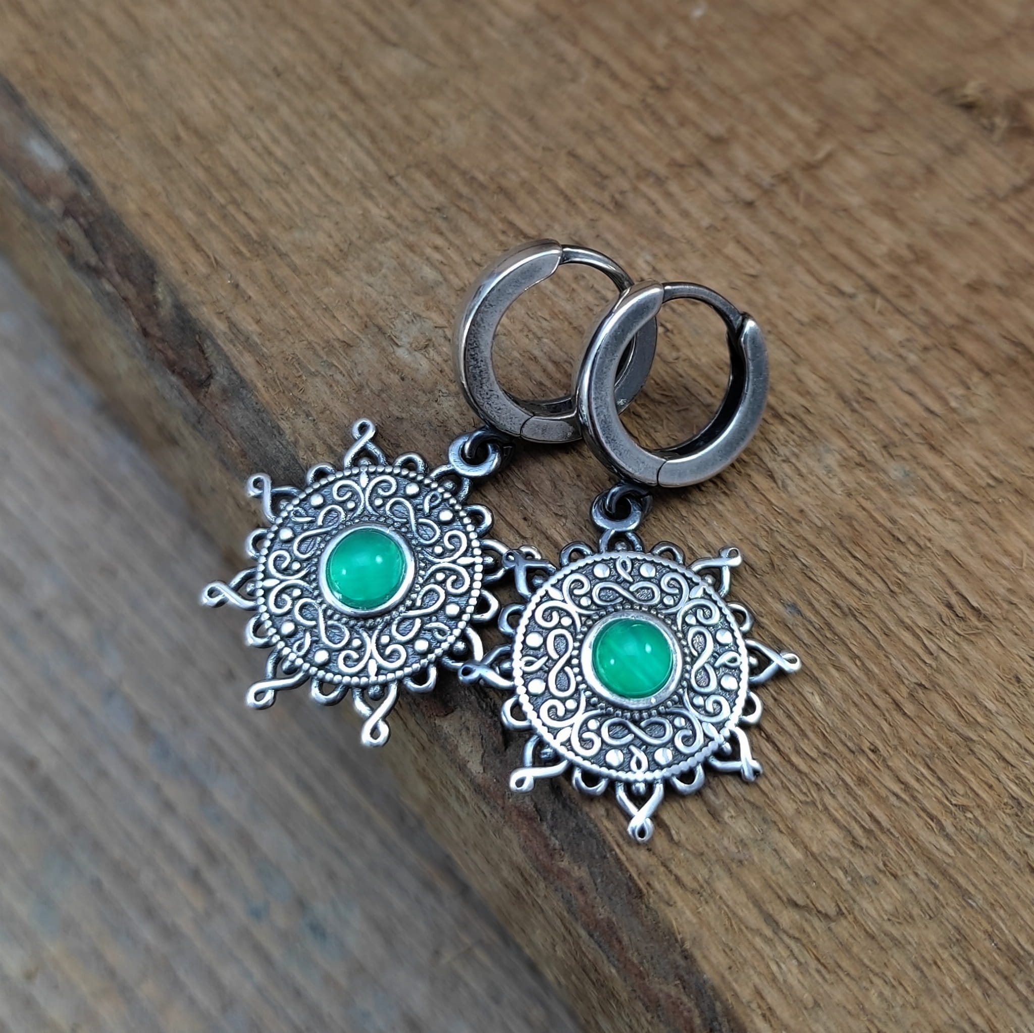 KOLCZYKI Z ZIELONYCH AGATÓW