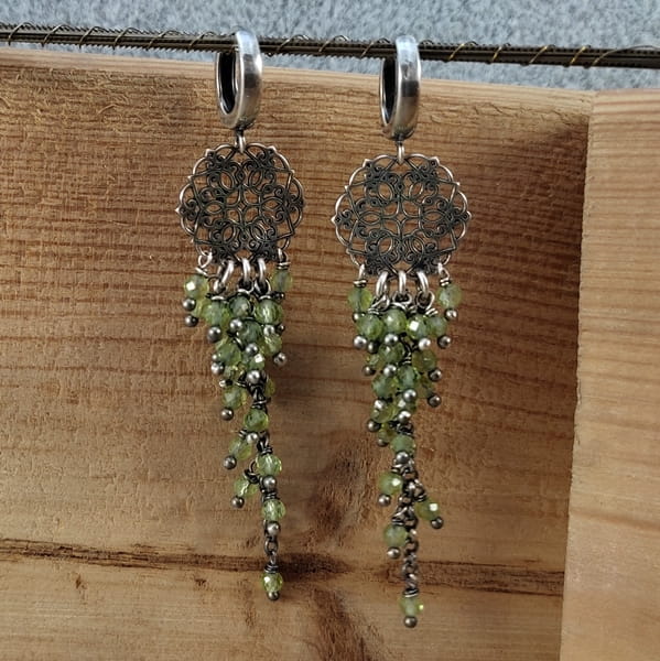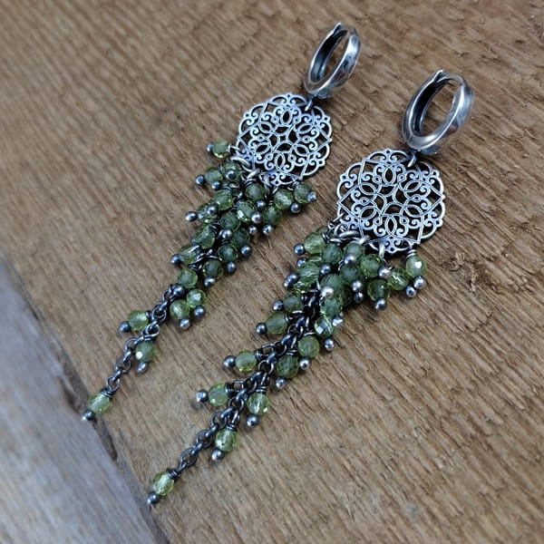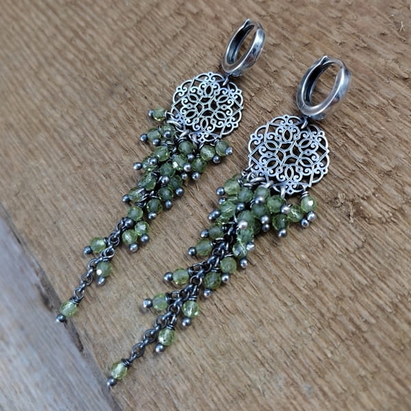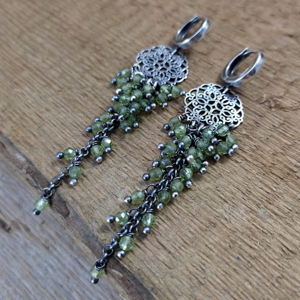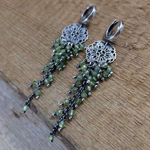 Kolczyki - Kwiat z peridotem