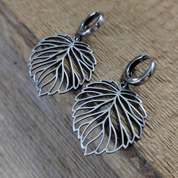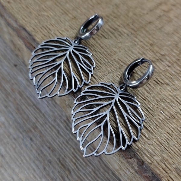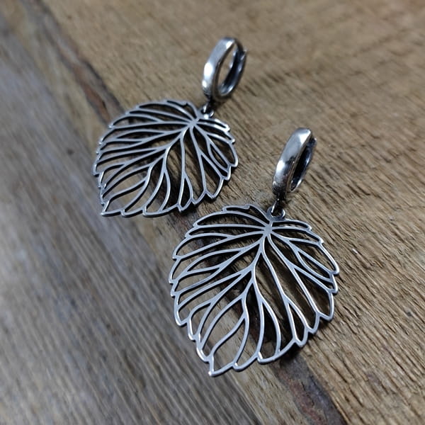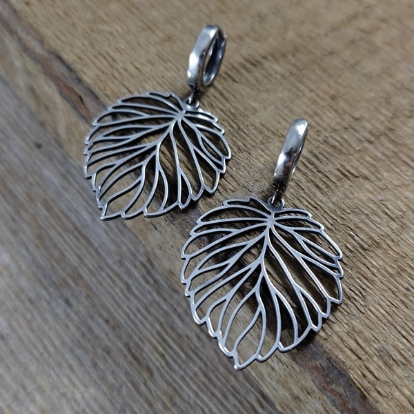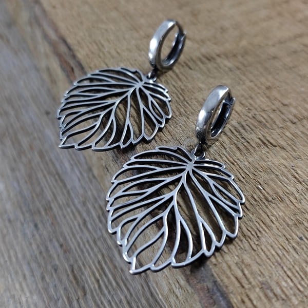 Kolczyki wykonane ze srebra 925, oksydowanego i wypolerowanego. Długość całkowita kolczyków wynosi ok. 4 cm. Wielkość blaszki 28,0/24,7 mm. Elegancko zapakowane.