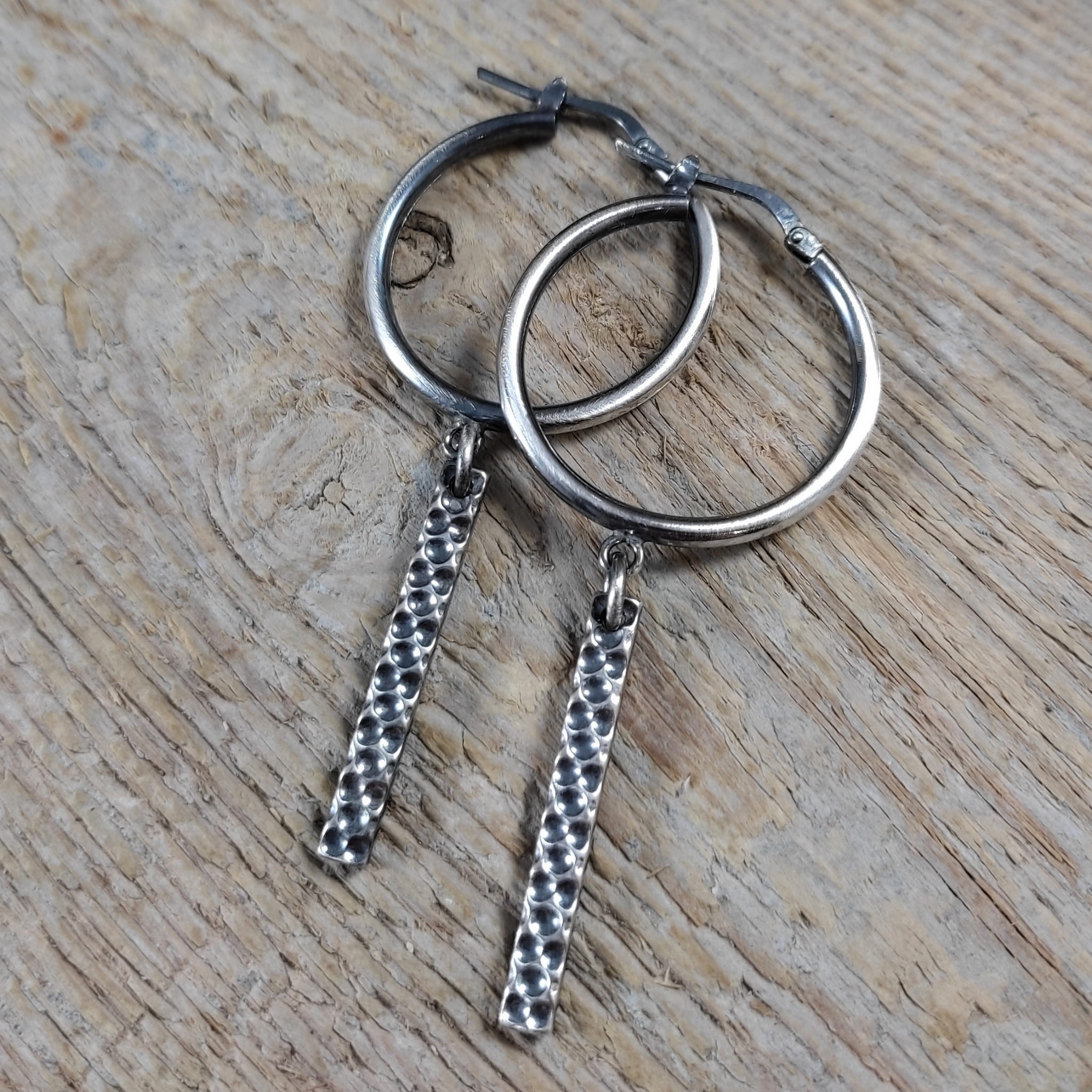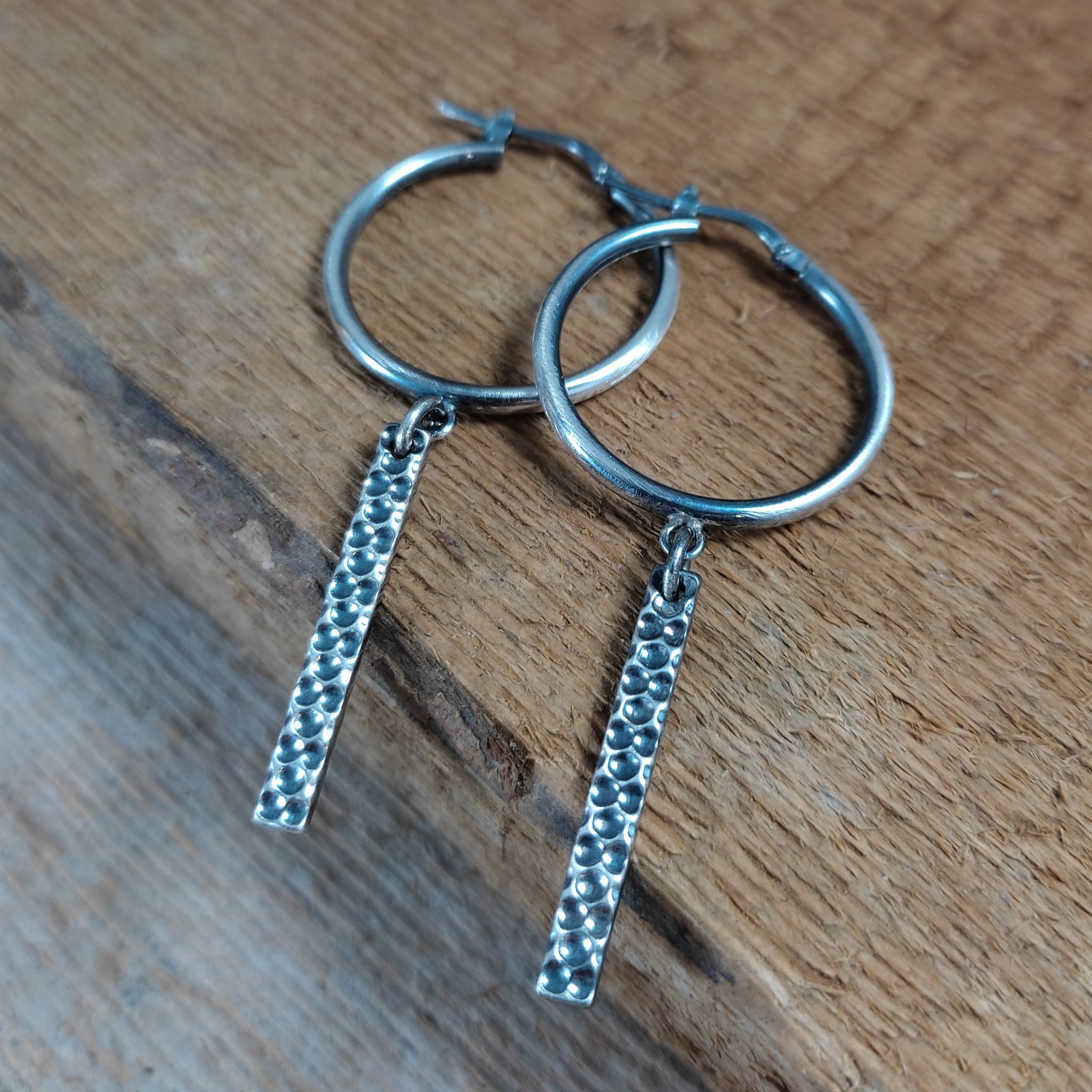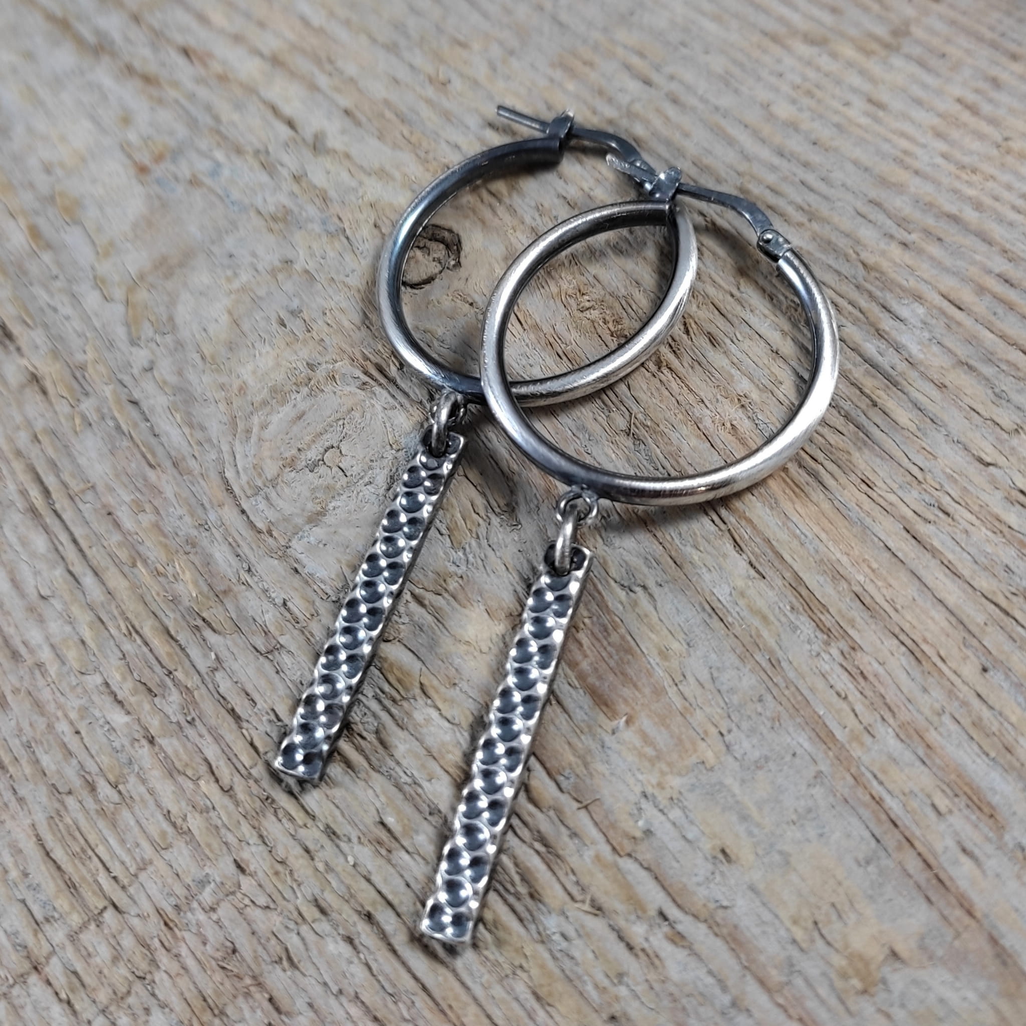 Kolczyki wykonane ze srebra 925, oksydowanego i wypolerowanego. Całkowita długość kolczyków wynosi ok. 5,7 cm. Elegancko zapakowane.