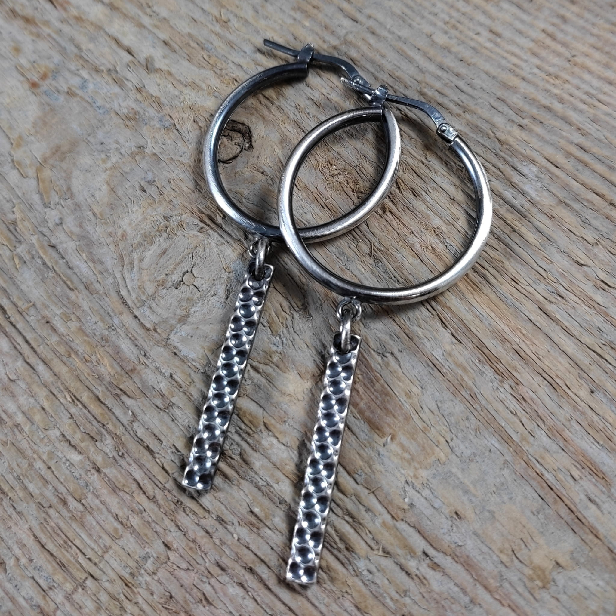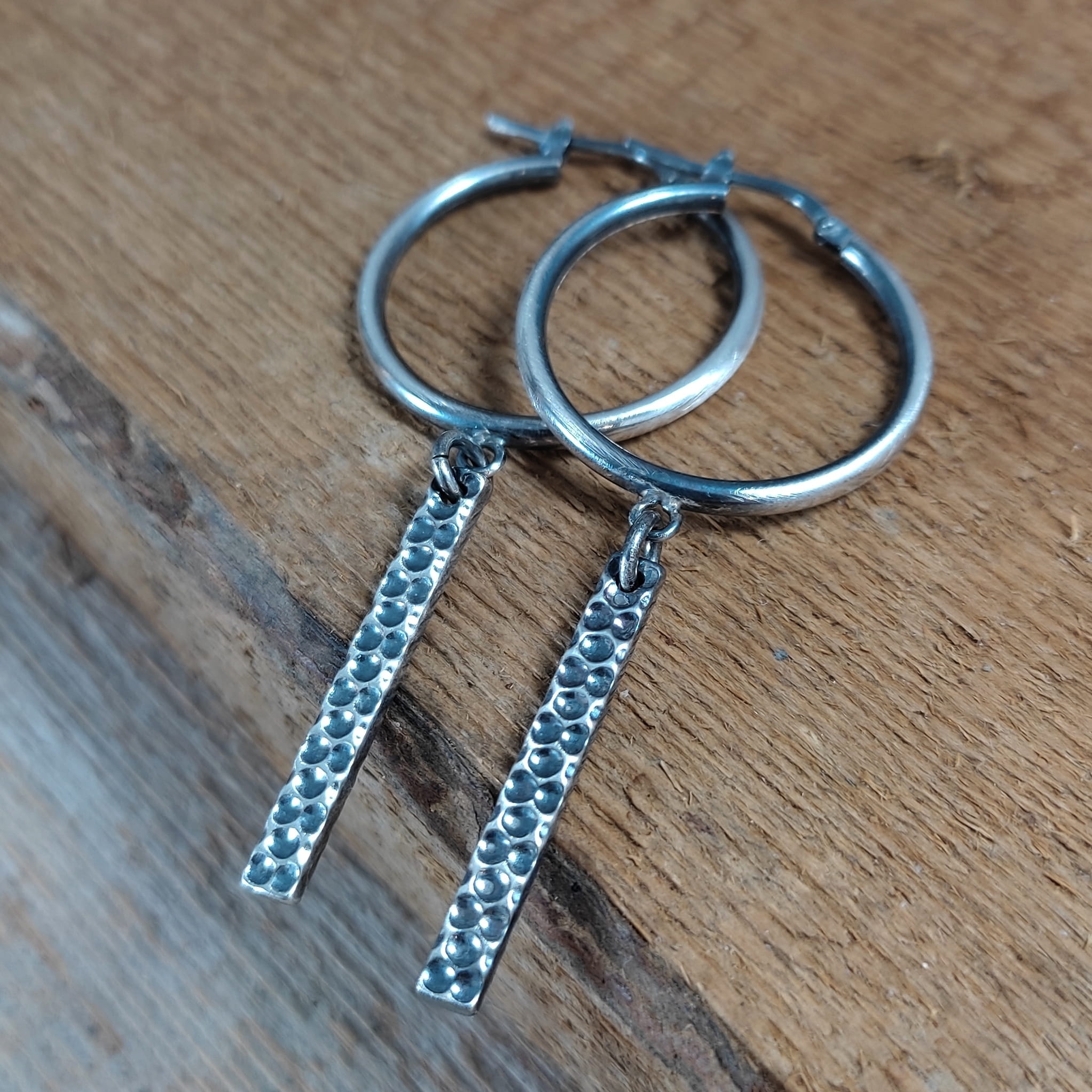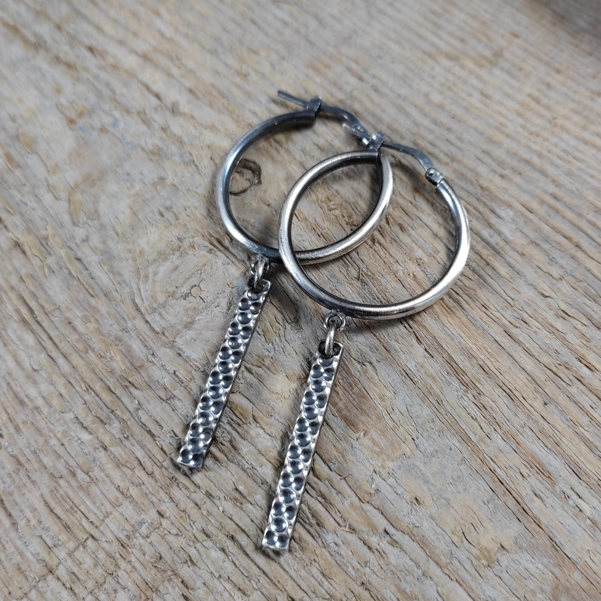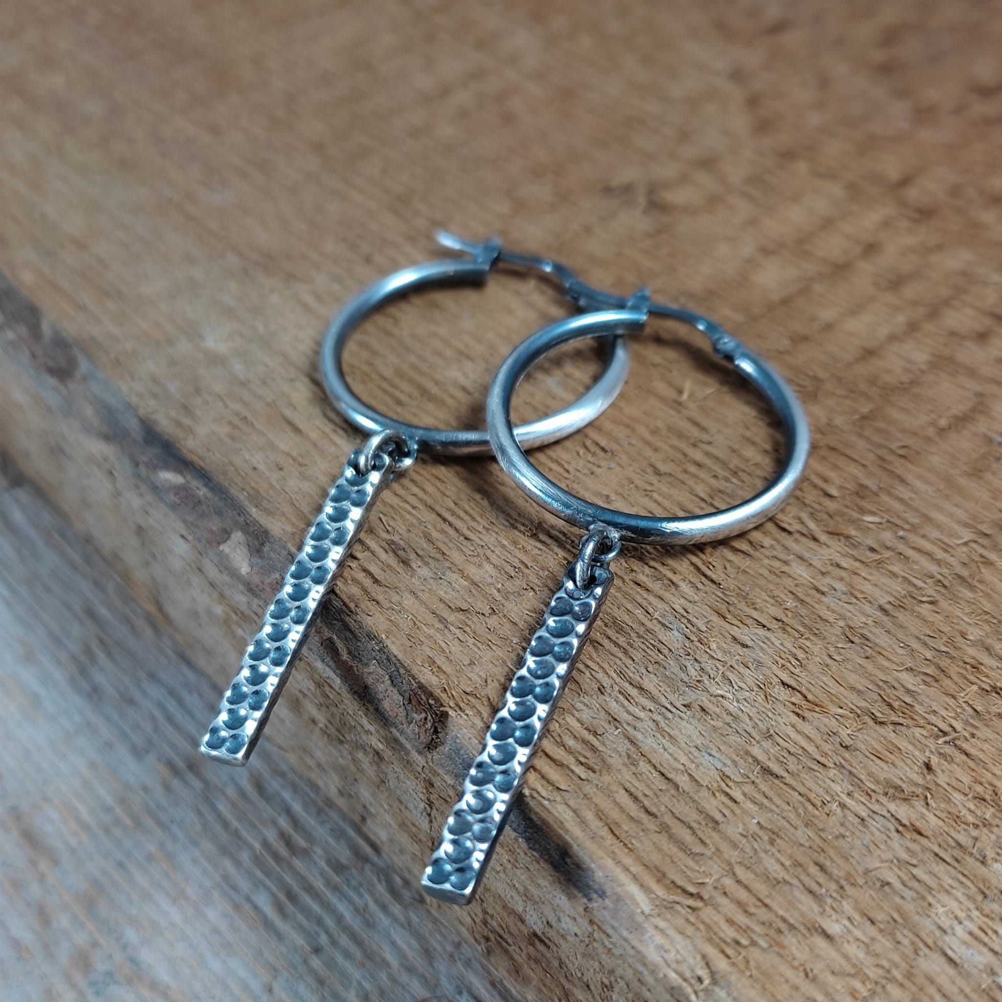 Kolczyki wykonane ze srebra 925, oksydowanego i wypolerowanego. Całkowita długość kolczyków wynosi ok. 5,7 cm. Elegancko zapakowane.
