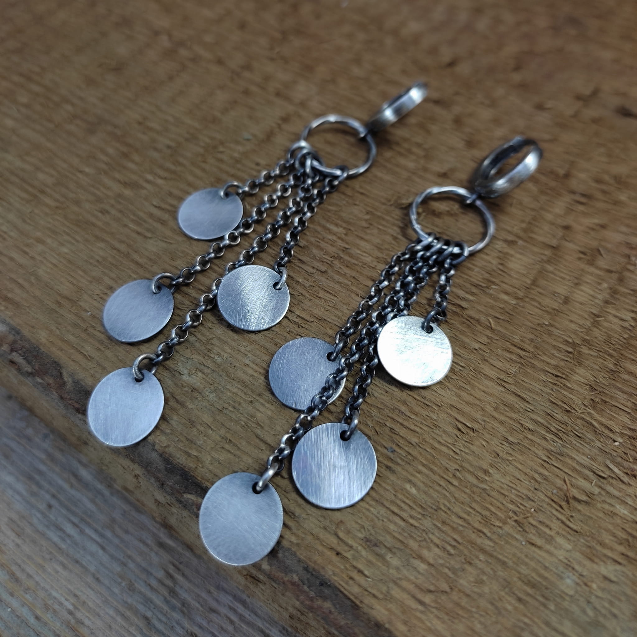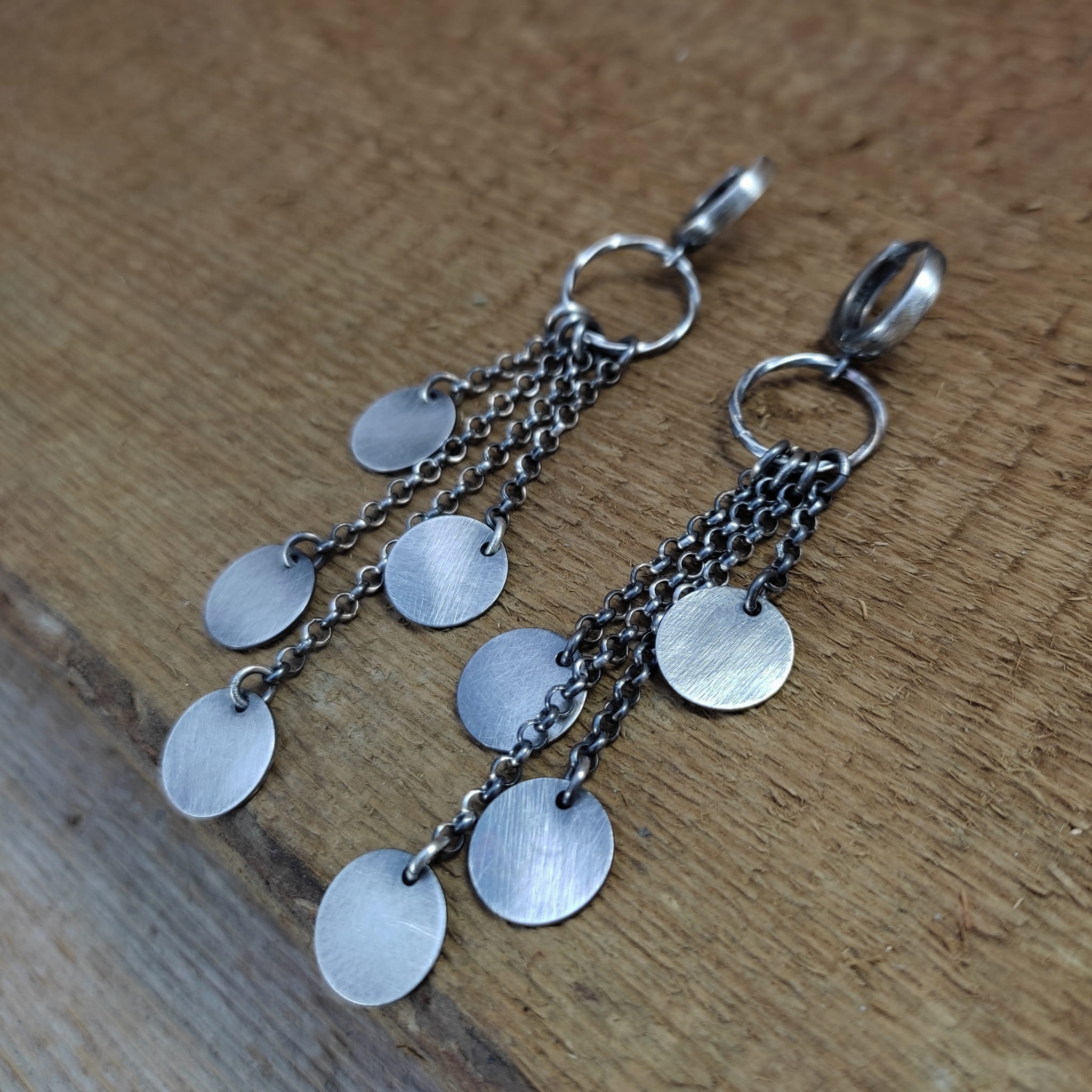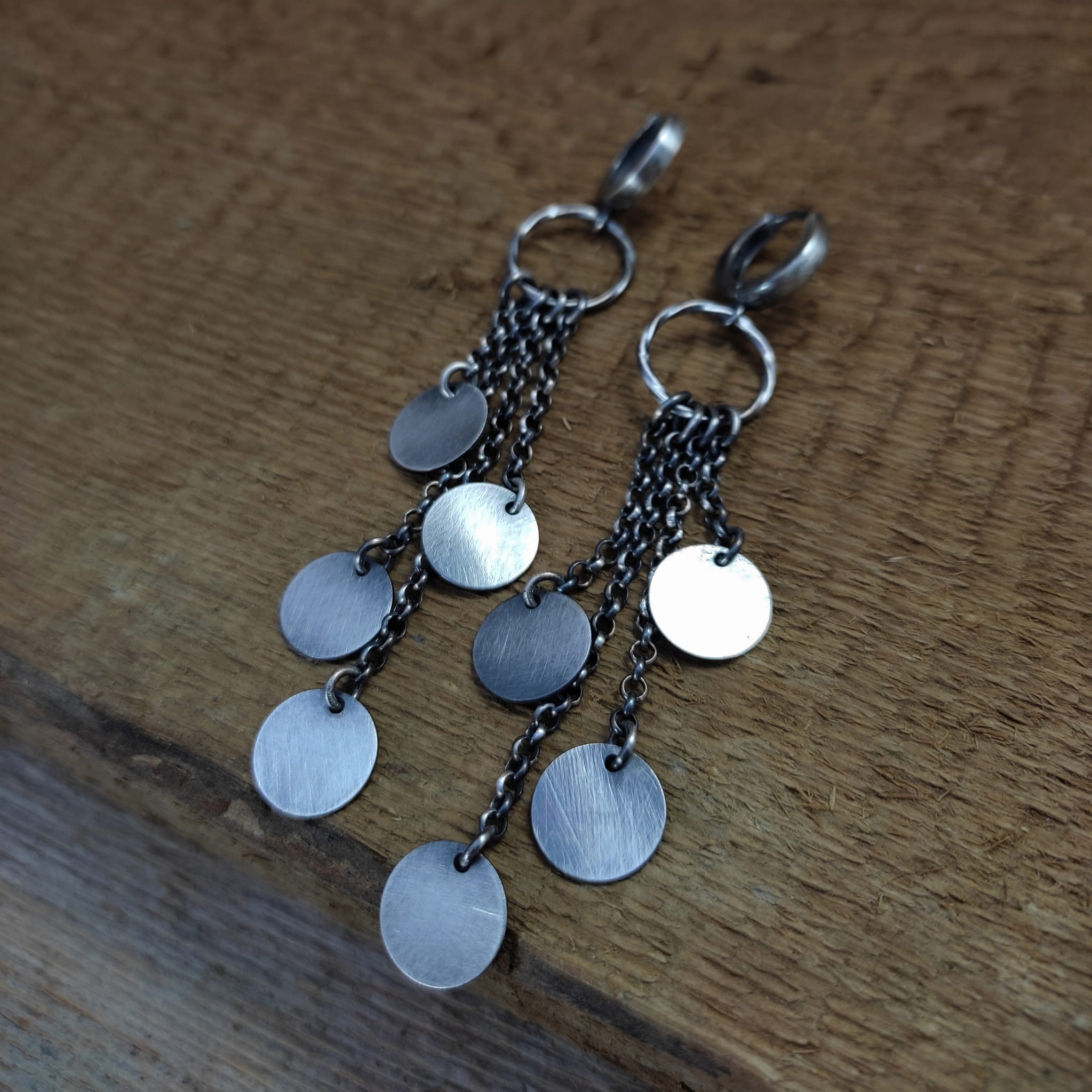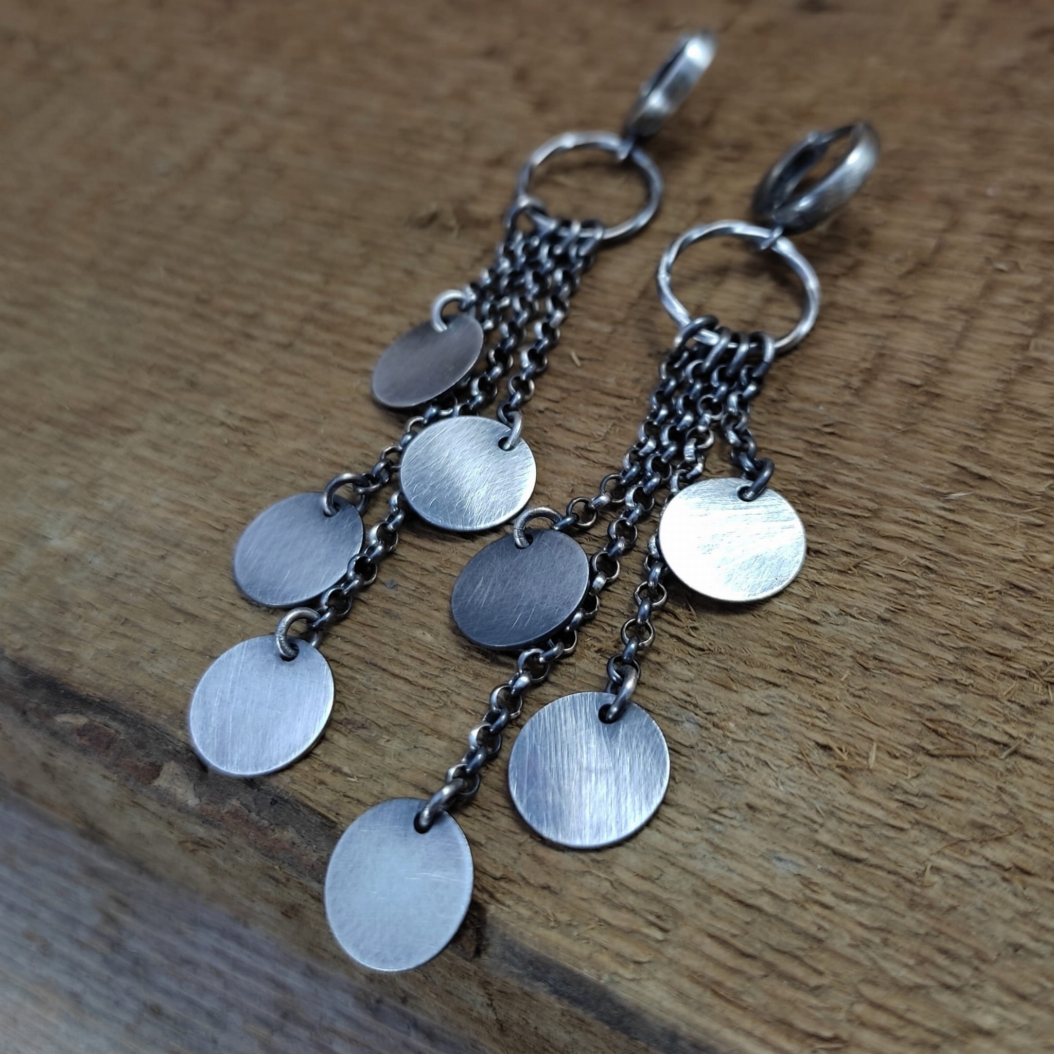 Kolczyki wykonane ze srebra 925, oksydowanego i wypolerowanego. Całkowita długość kolczyków wynosi ok. 7,7 cm. Elegancko zapakowane.