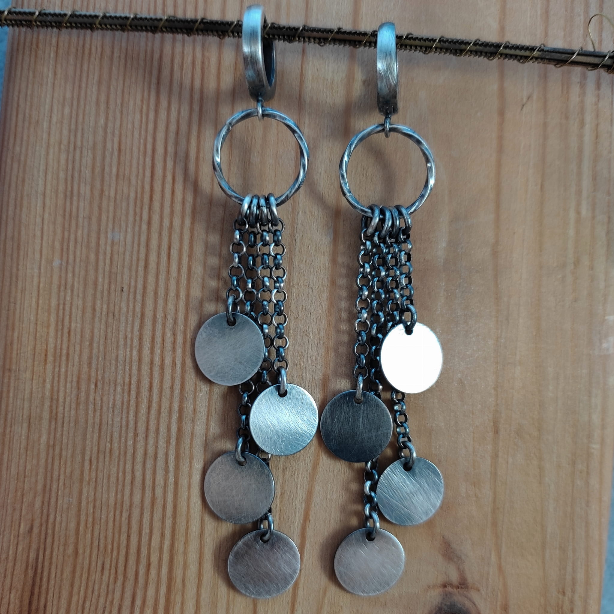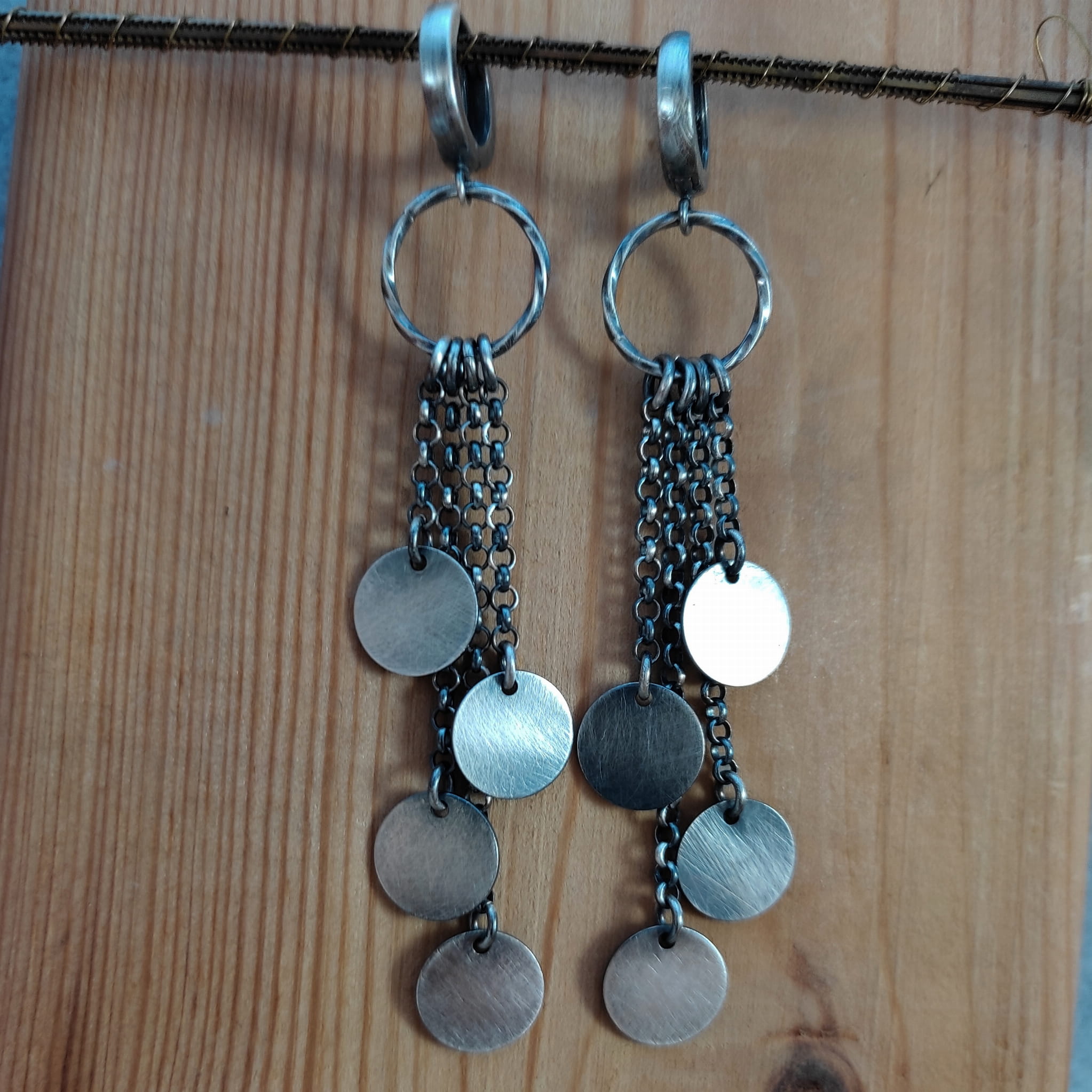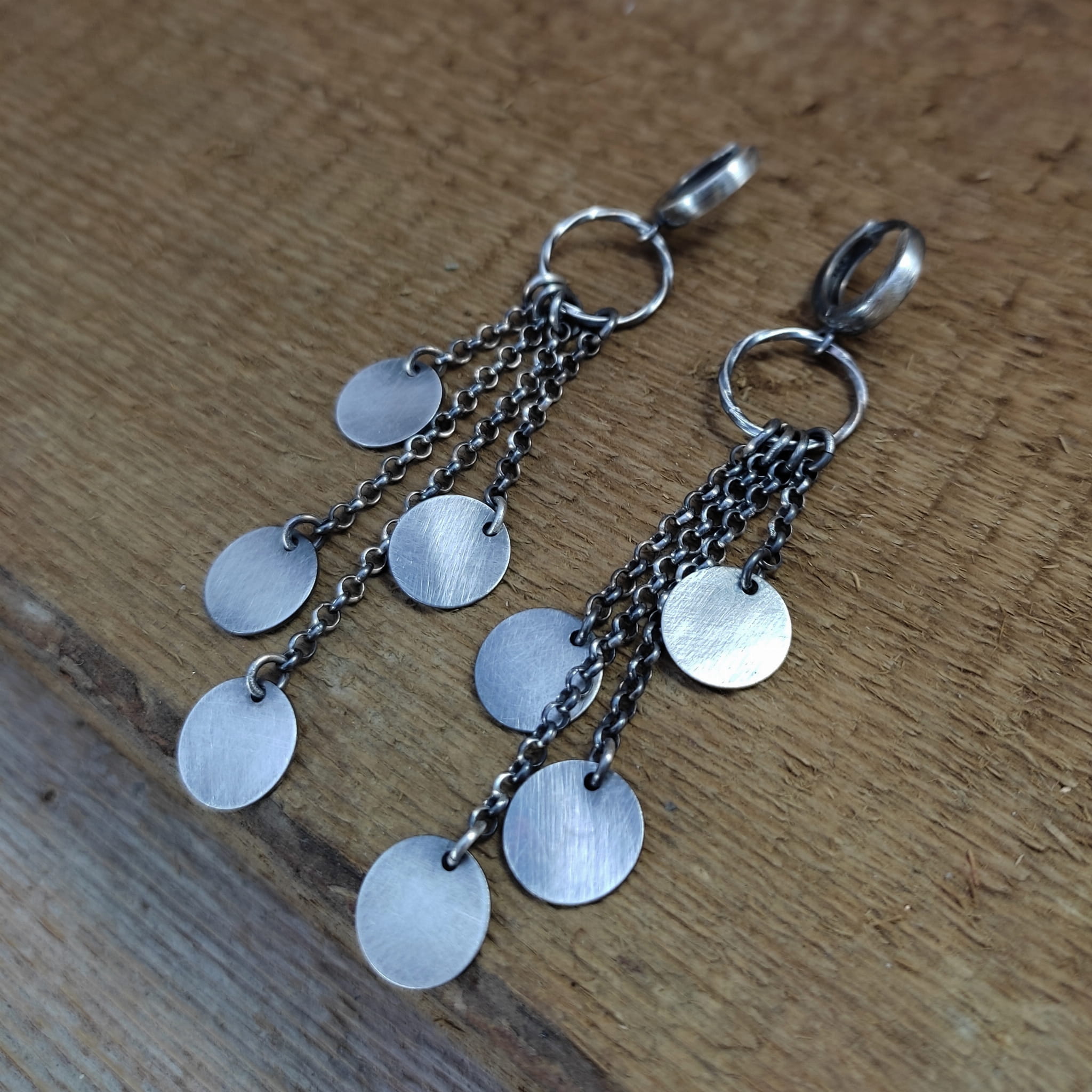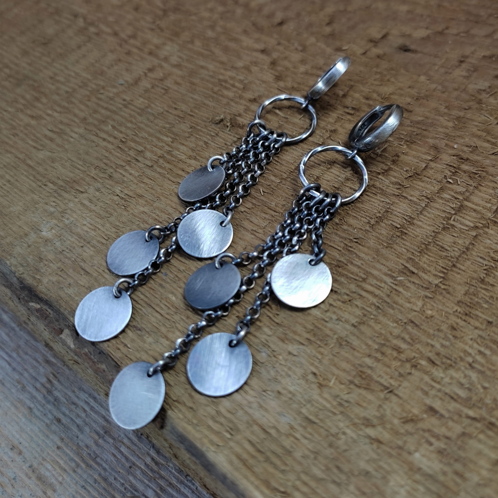 Kolczyki wykonane ze srebra 925, oksydowanego i wypolerowanego. Całkowita długość kolczyków wynosi ok. 7,7 cm. Elegancko zapakowane.