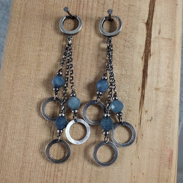 Kolczyki - blaszki z akwamarynem