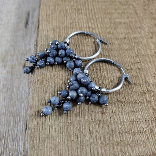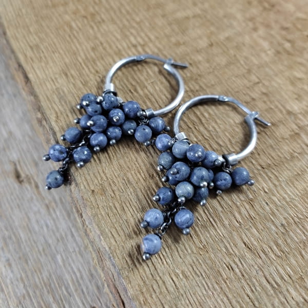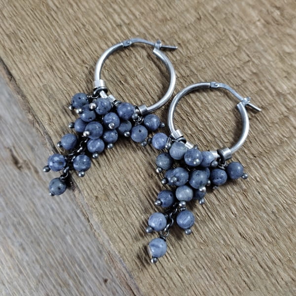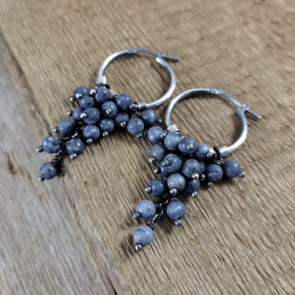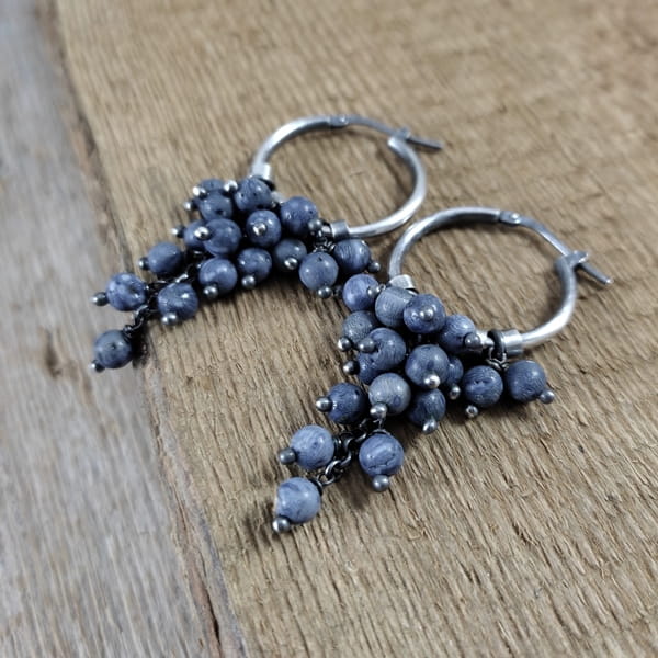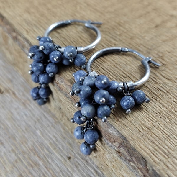 Kolczyki z kulami korala. Koral o średnicy 4 mm. Kamienie posiadają niedoskonałości. Długość całkowita kolczyków wynosi ok. 5.5 cm. Kolczyki zostały wykonane w całości ze srebra 925, srebro oksydowane. Zapakowane w eleganckie pudełko.