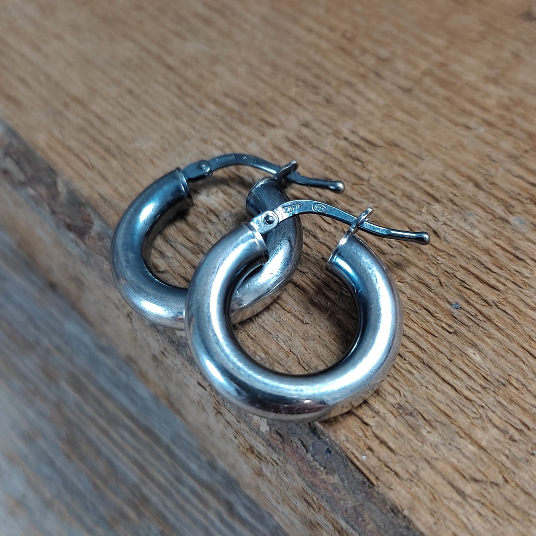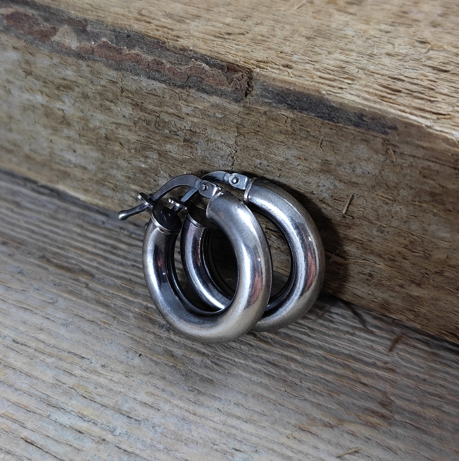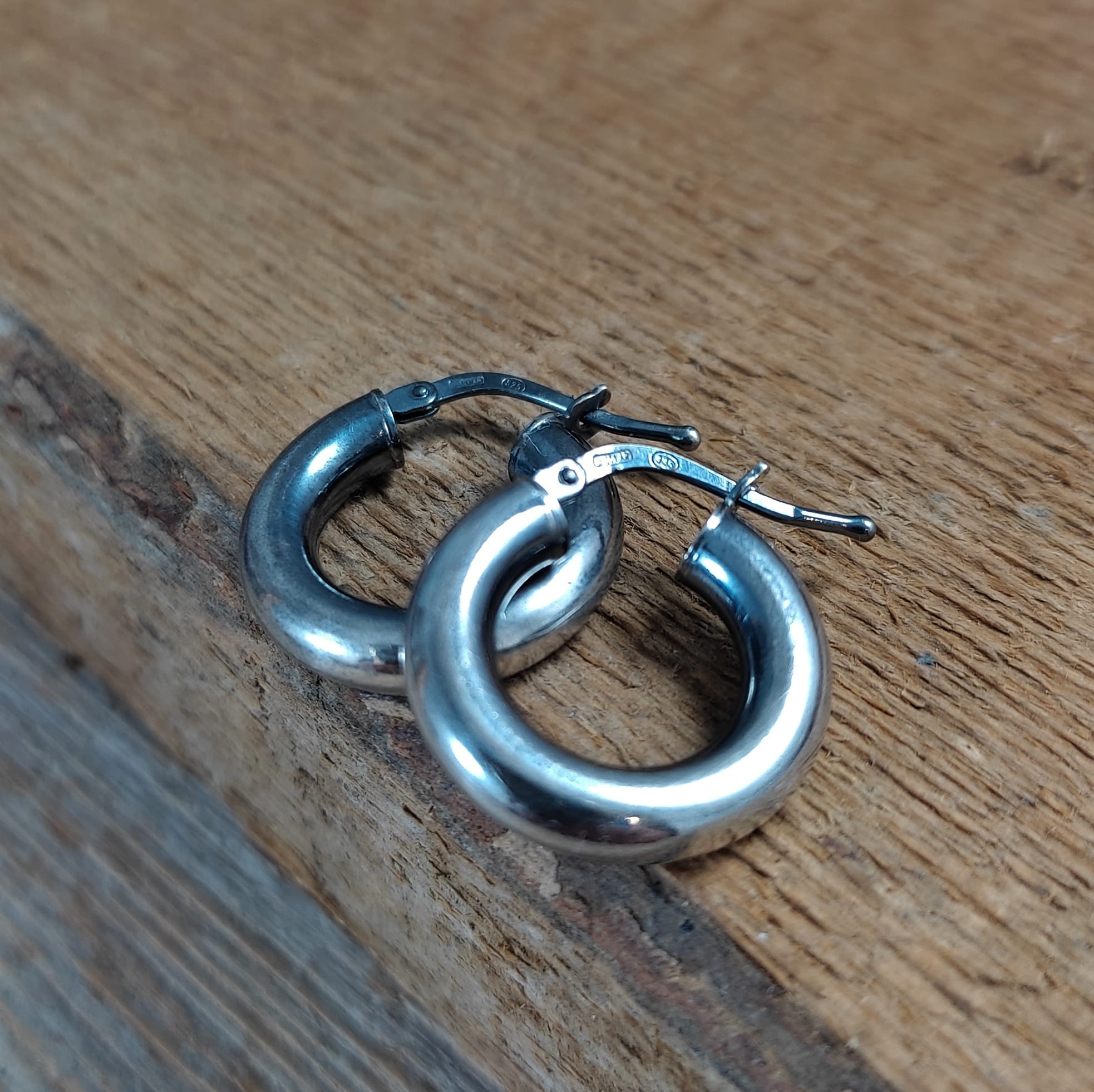 Kolczyki wykonane ze srebra 925, oksydowanego i wypolerowanego. Wielkość kół wynosi: 1,8 cm. Elegancko zapakowane.