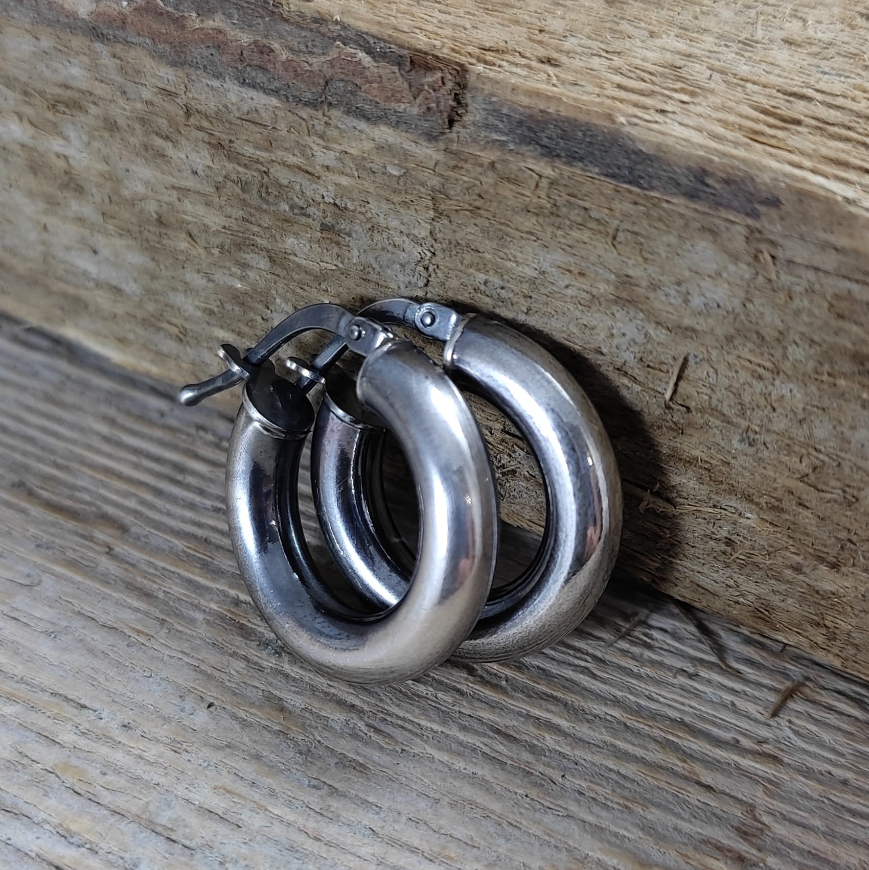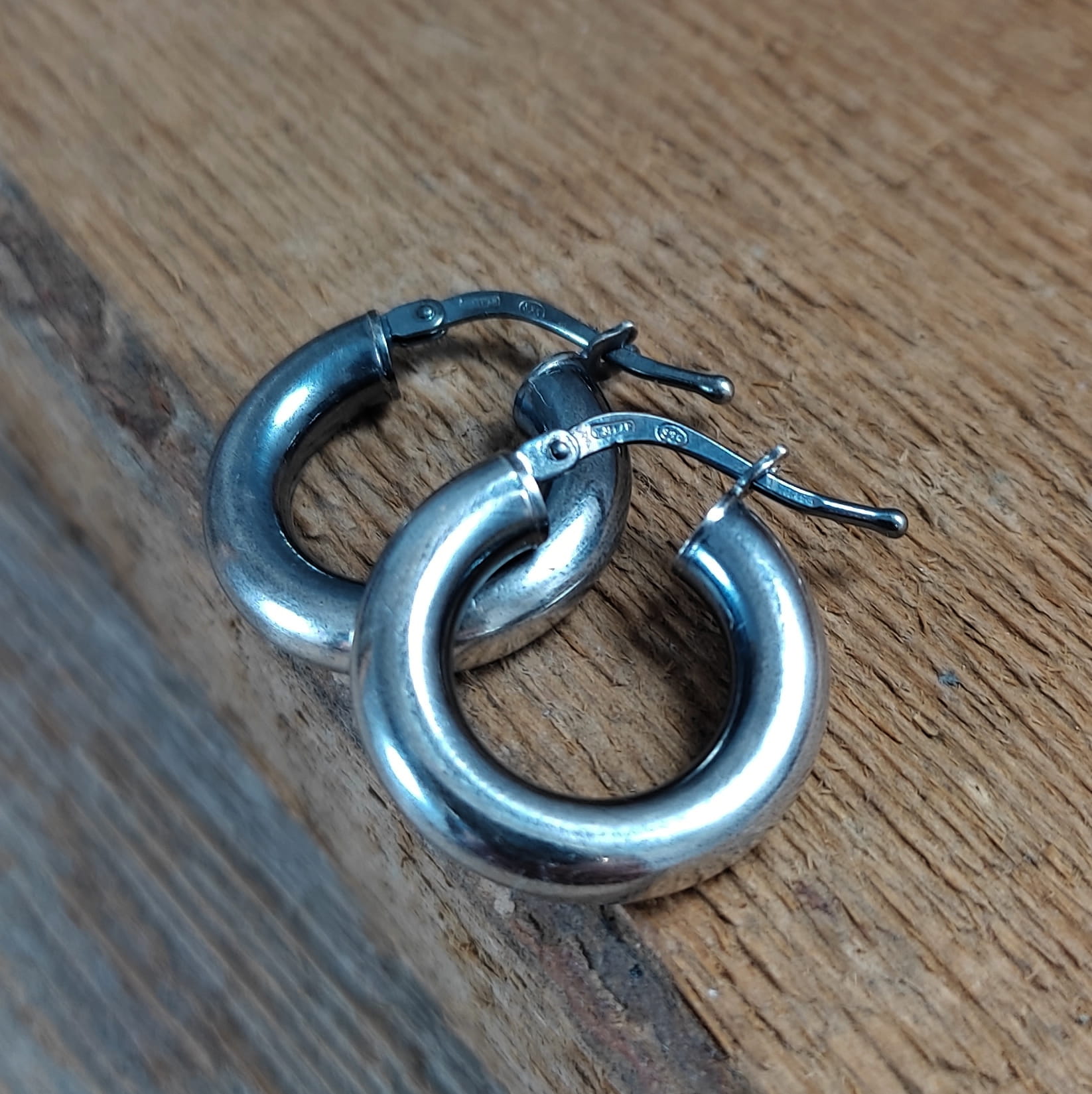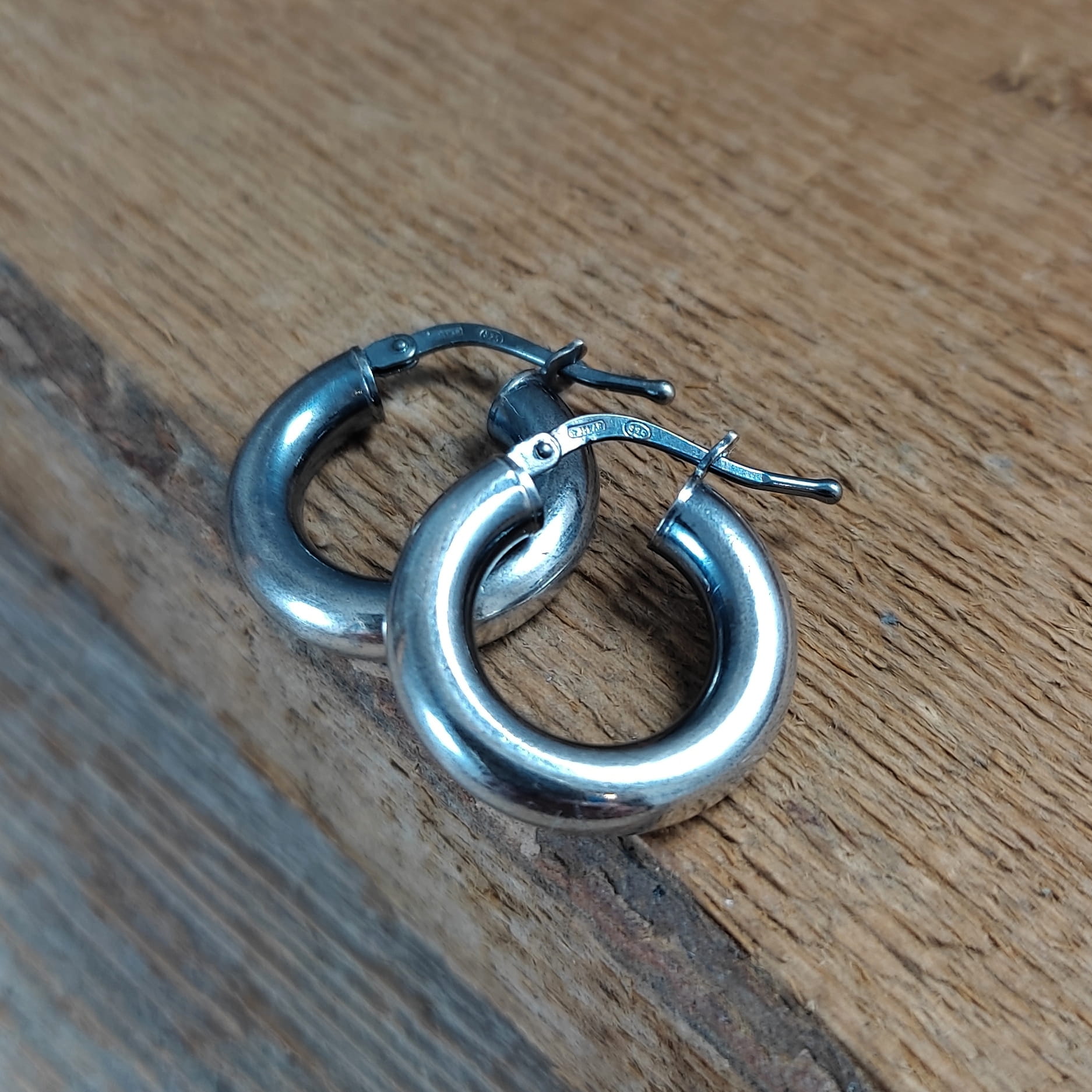 Kolczyki wykonane ze srebra 925, oksydowanego i wypolerowanego. Wielkość kół wynosi: 1,8 cm. Elegancko zapakowane.