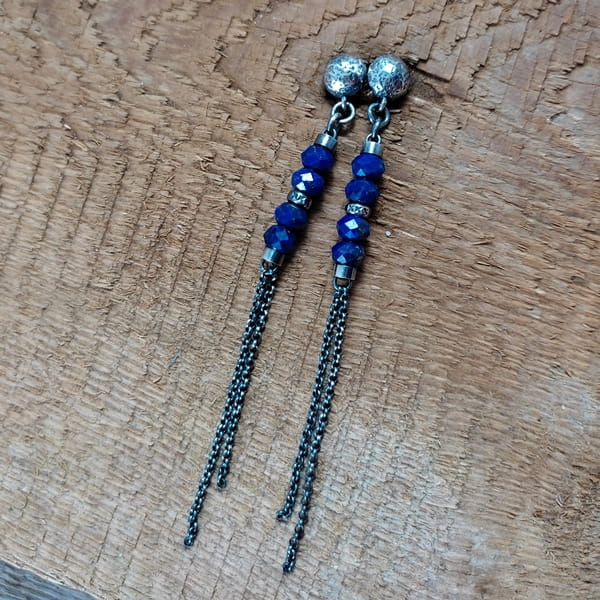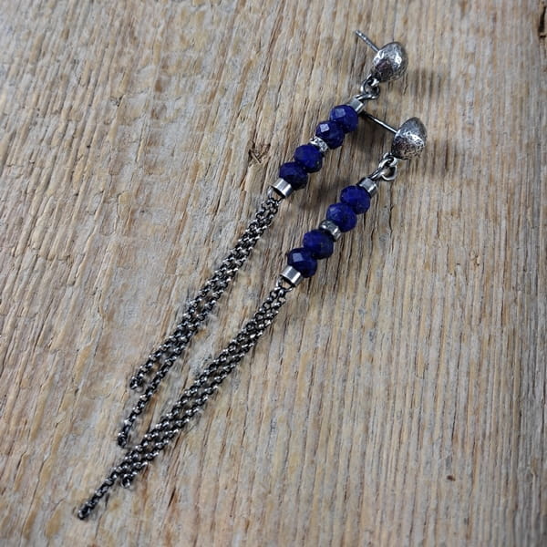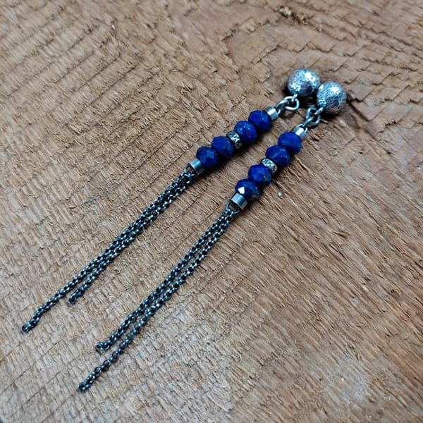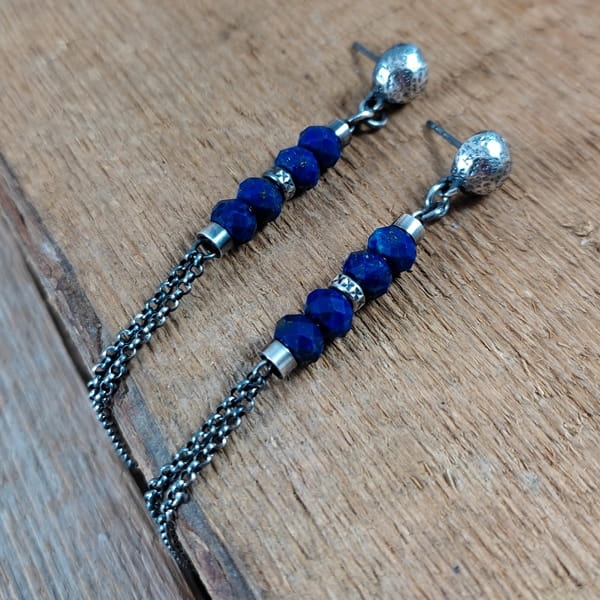 Kolczyki - lapis lazuli z łańcuszkami