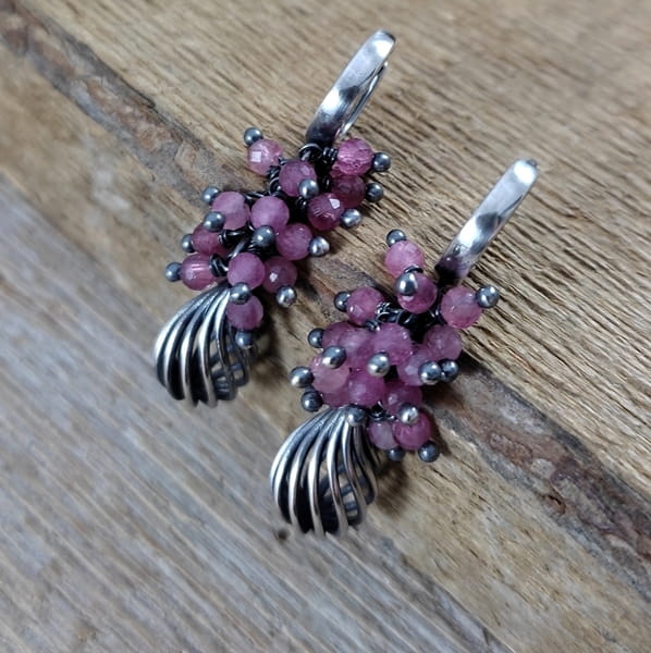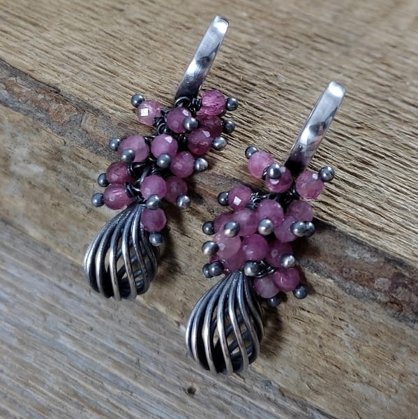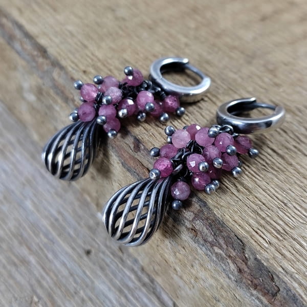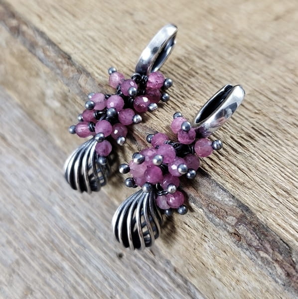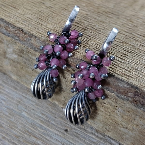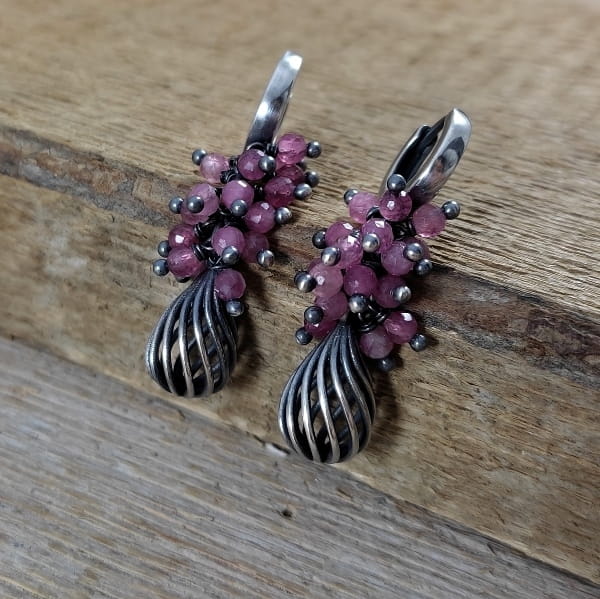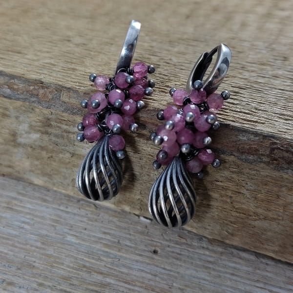 Kolczyki wykonane z fasetowanych kul turmalinu ok. 3 mm. Całość wykończona w srebrze 925, oksydowanym i wypolerowanym. Długość całkowita kolczyków wynosi ok. 4 cm. Elegancko zapakowane. Kamienie z delikatnymi niedoskonałościami.