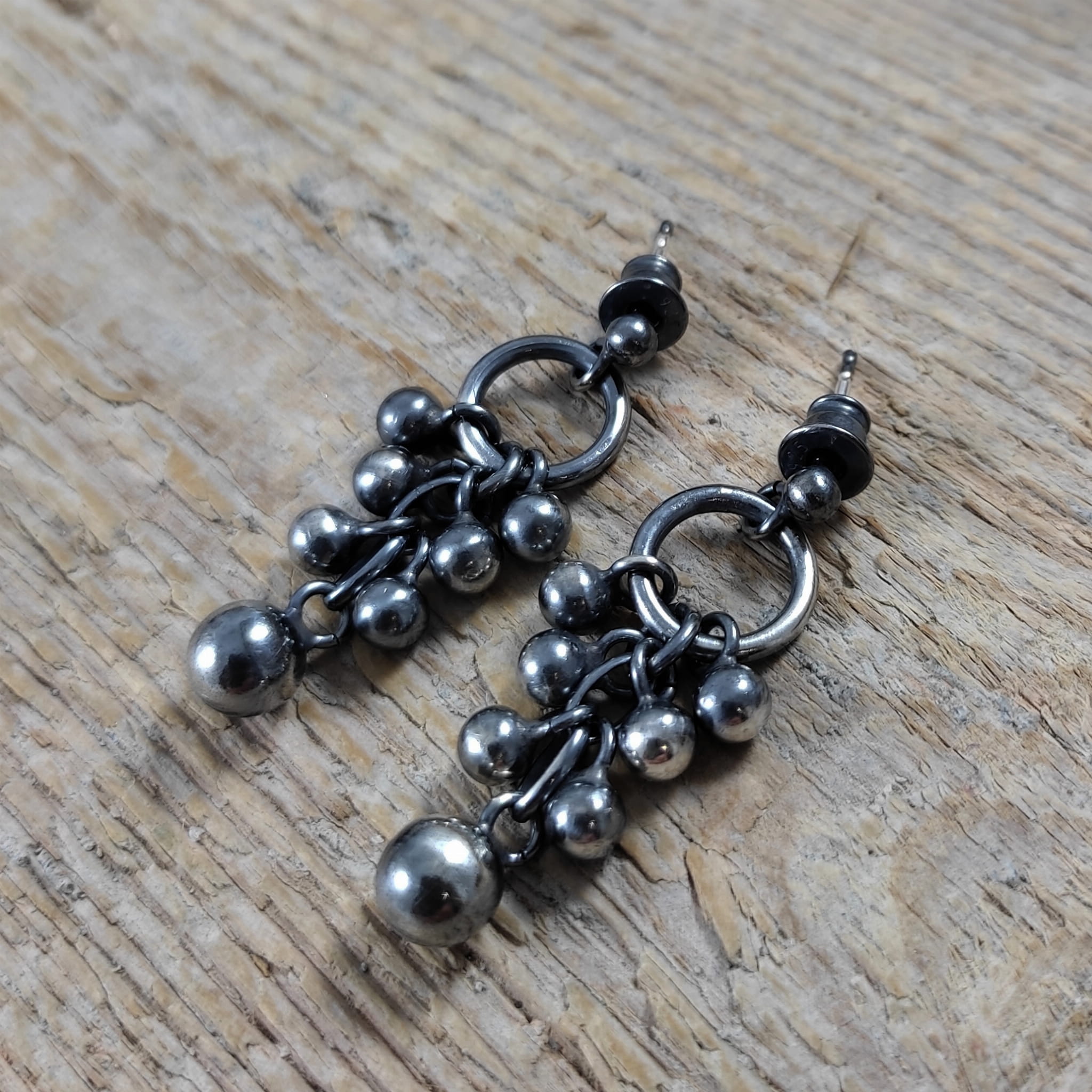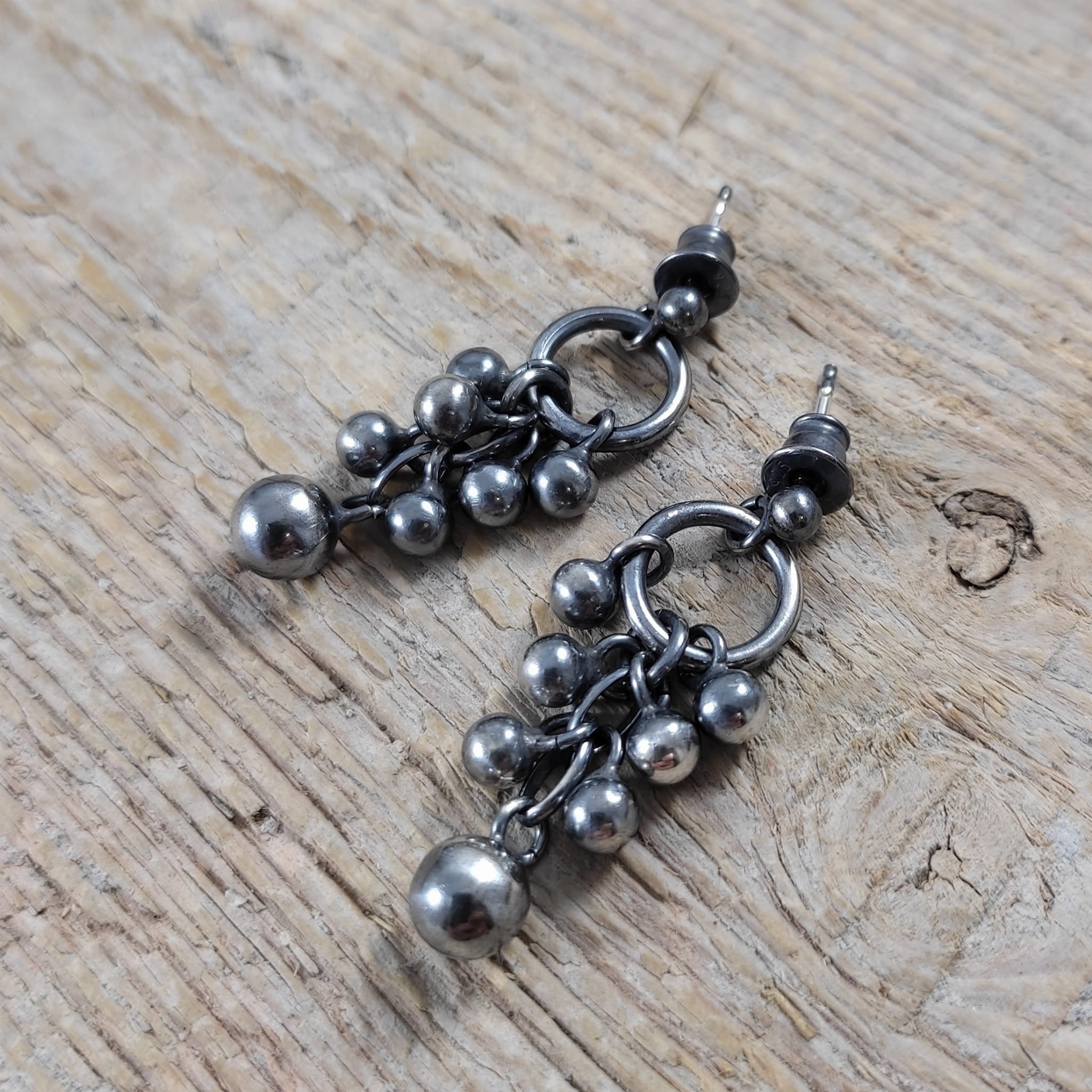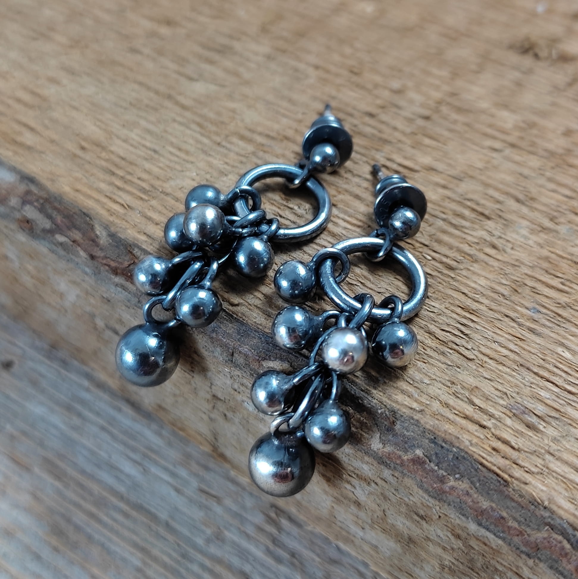 Kolczyki wykonane ze srebra 925, oksydowanego i wypolerowanego. Wielkość kul ok 4-6 mm. Całkowita długość kolczyków wynosi ok. 3,4 cm. Elegancko zapakowane.