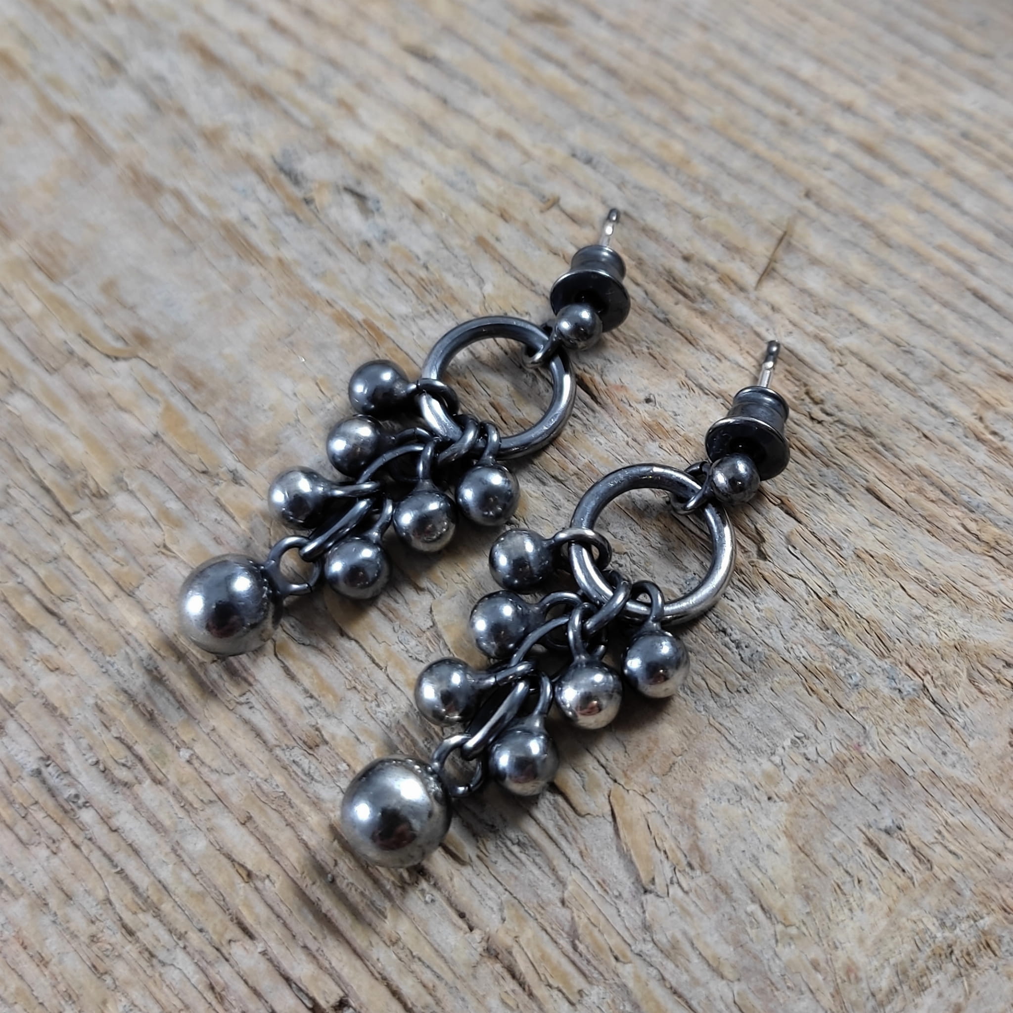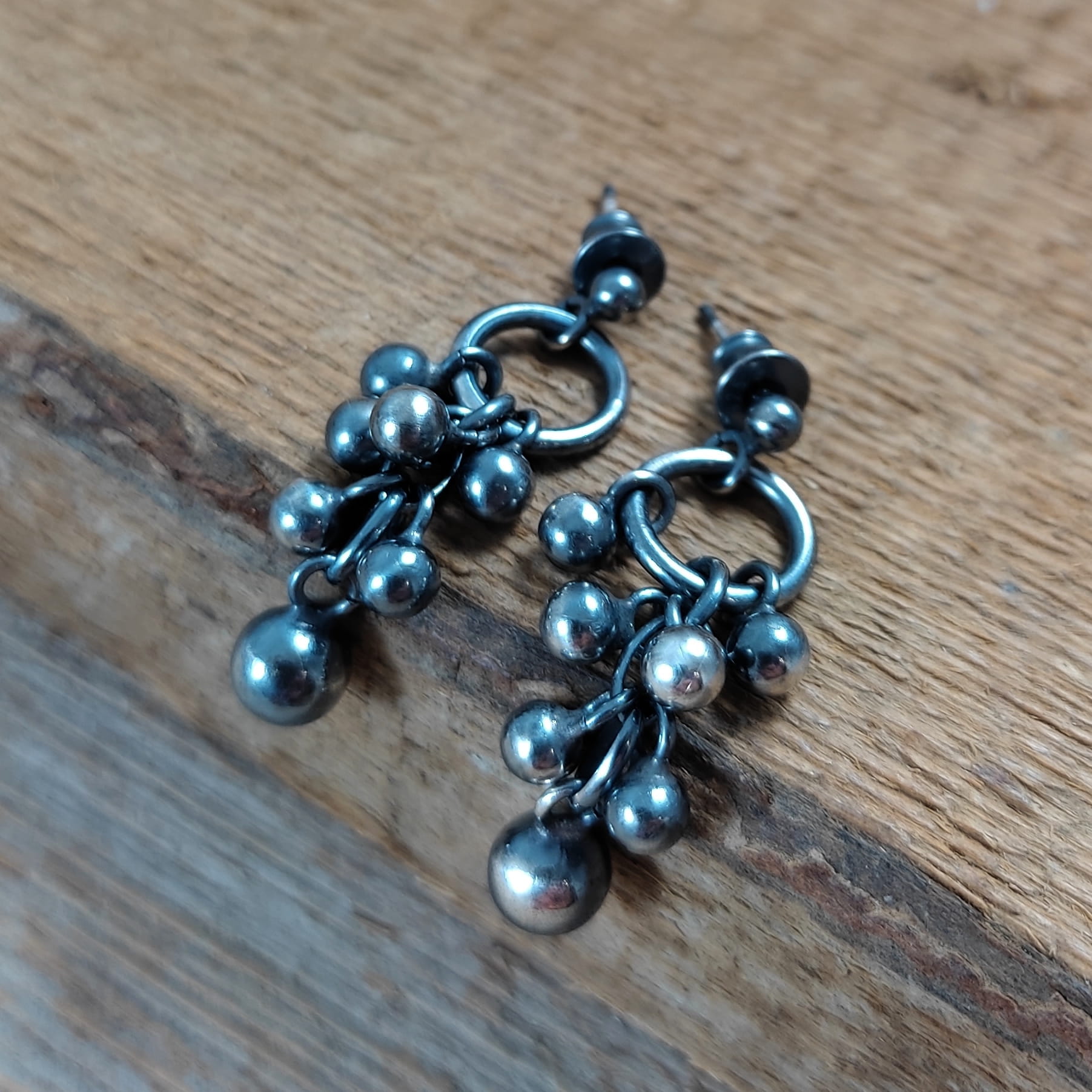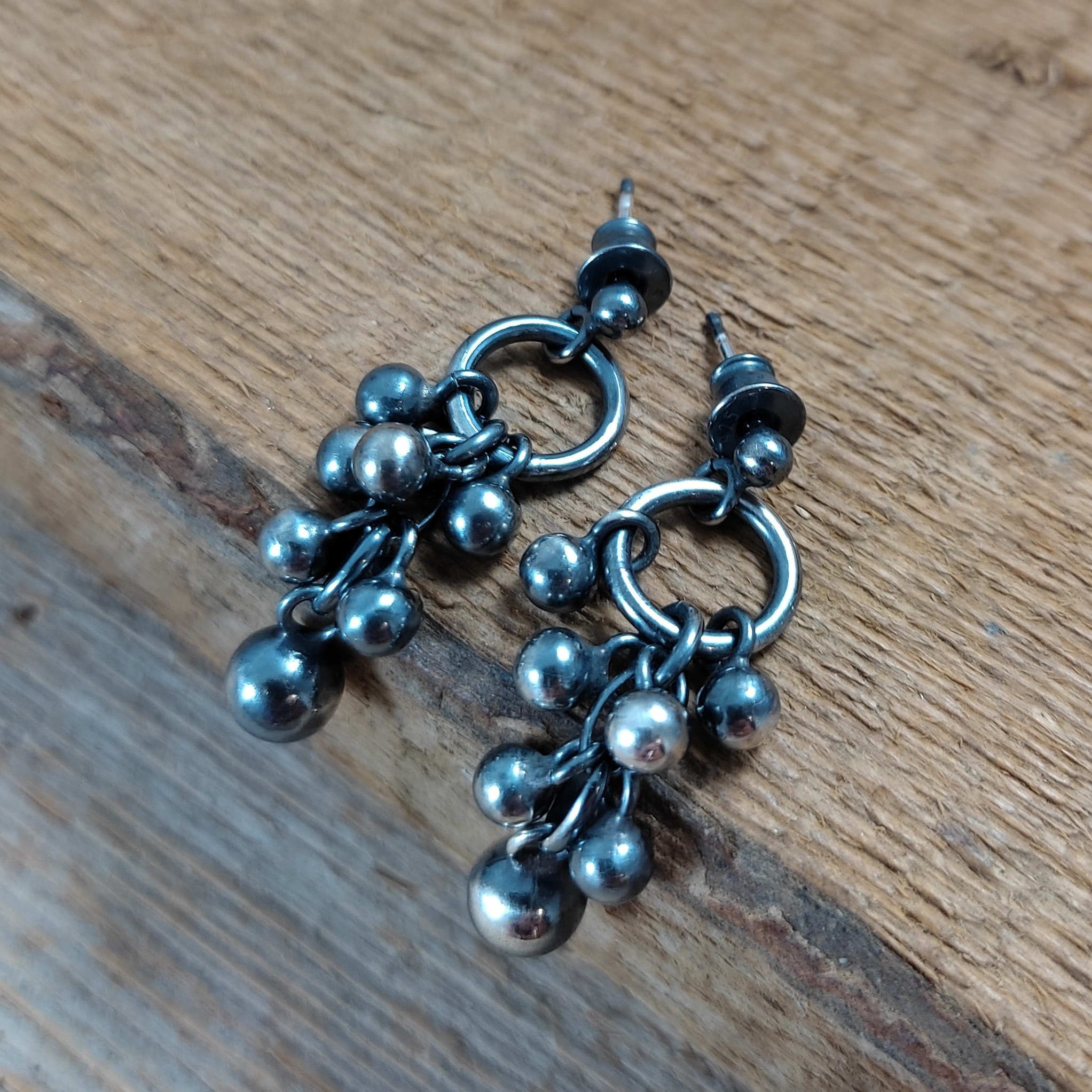 Kolczyki wykonane ze srebra 925, oksydowanego i wypolerowanego. Wielkość kul ok 4-6 mm. Całkowita długość kolczyków wynosi ok. 3,4 cm. Elegancko zapakowane.