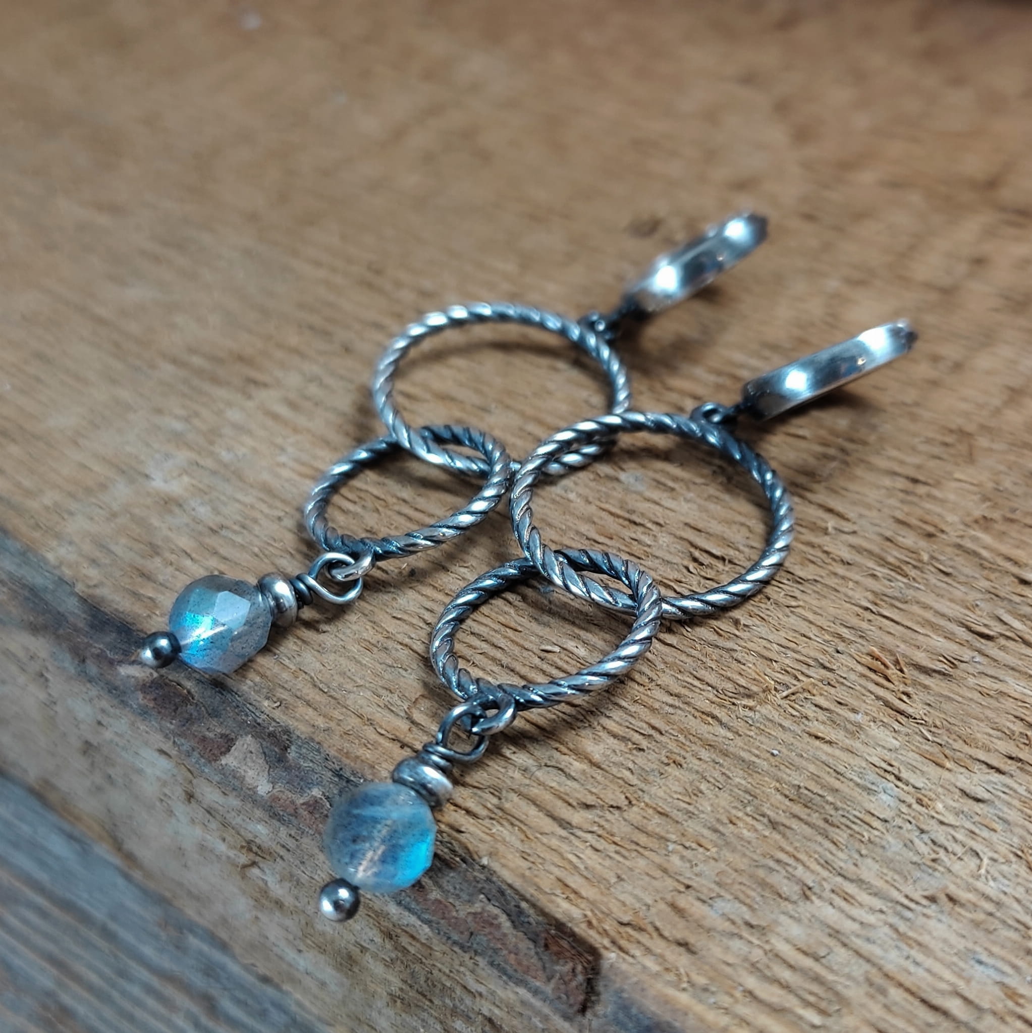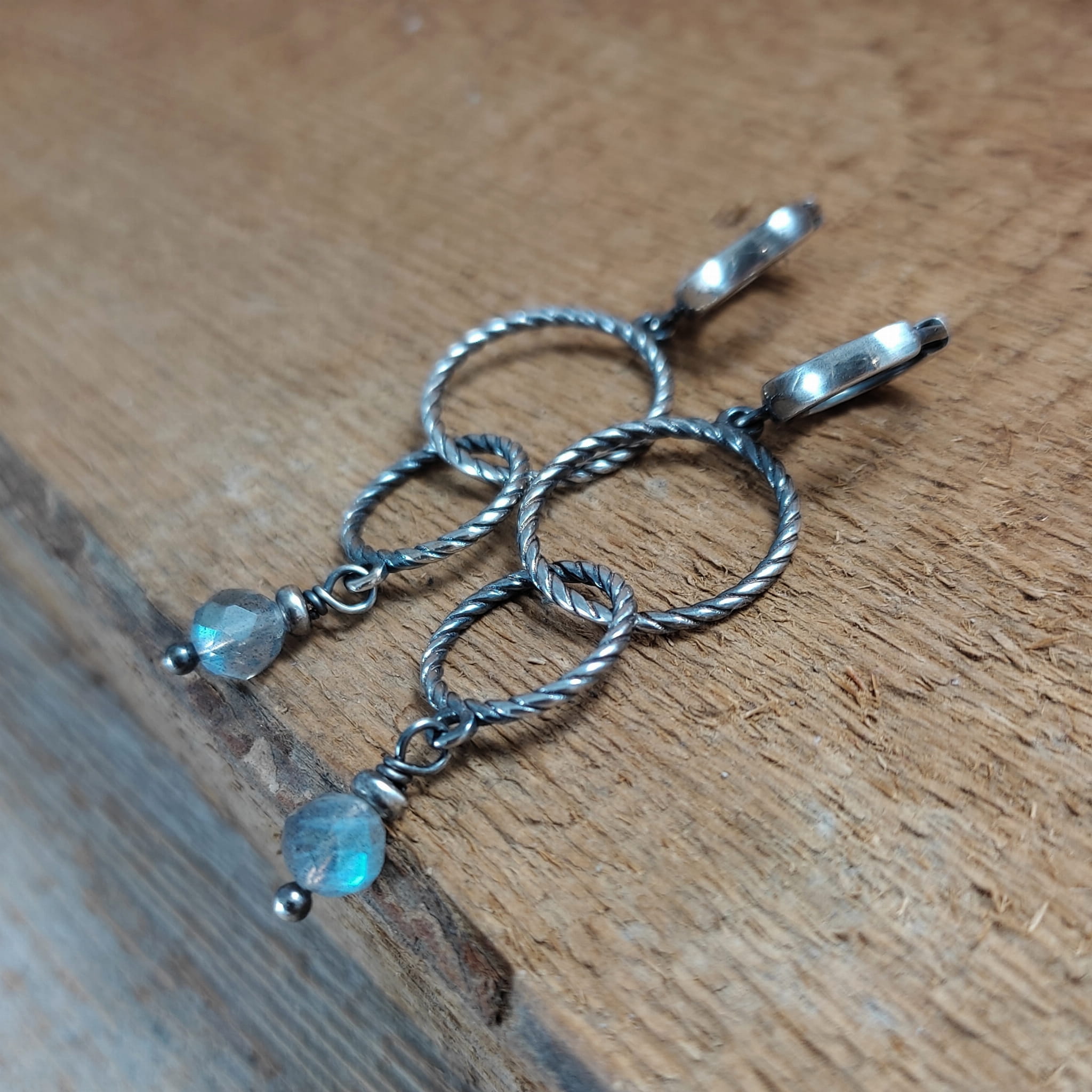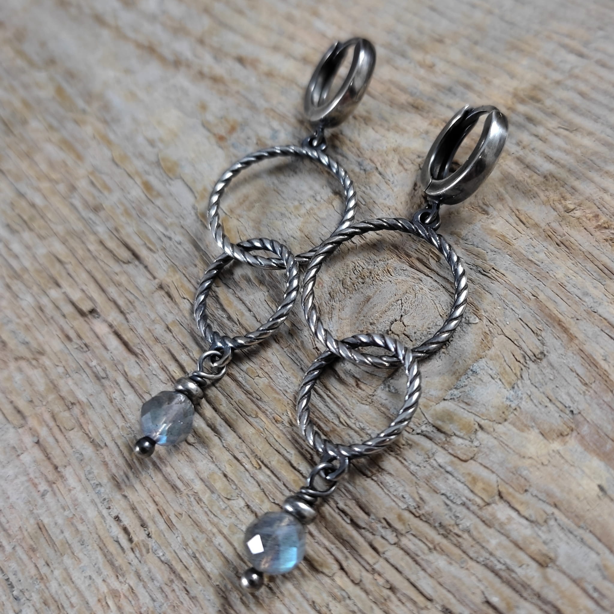 Kolczyki - obręcze z labradorytem