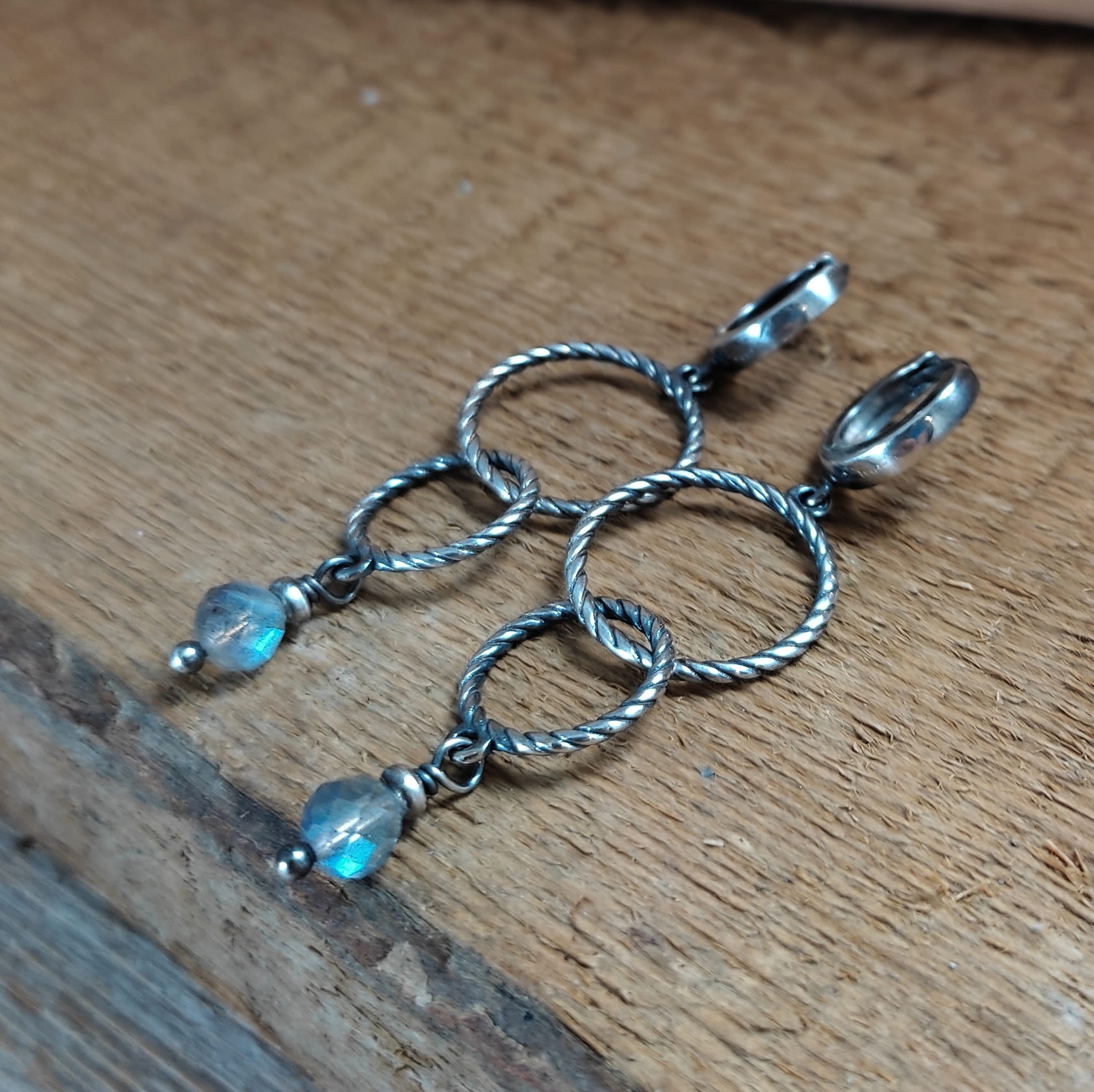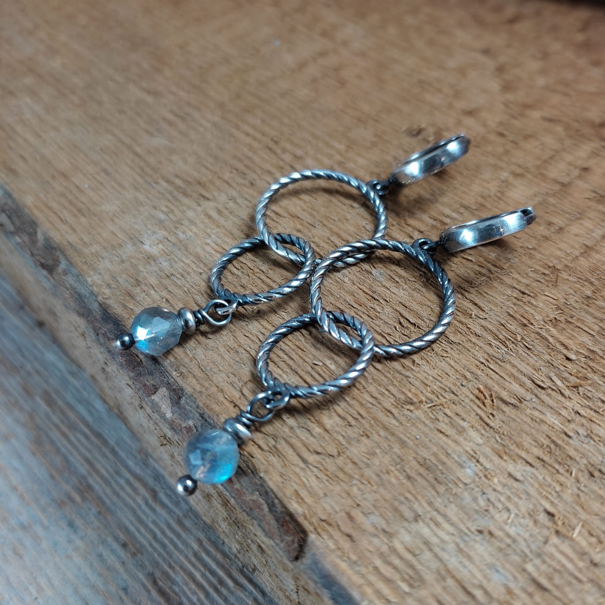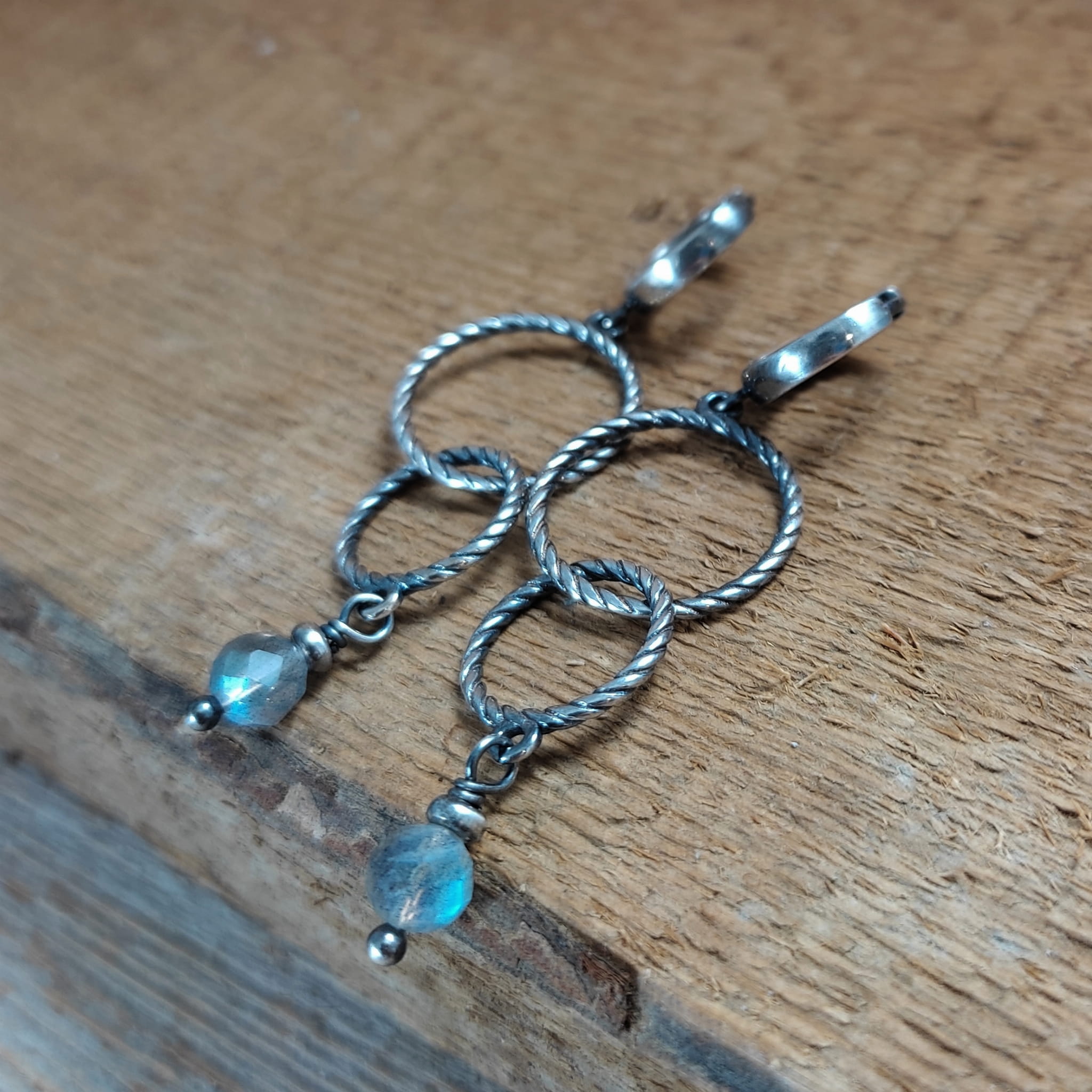 Kolczyki - obręcze z labradorytem