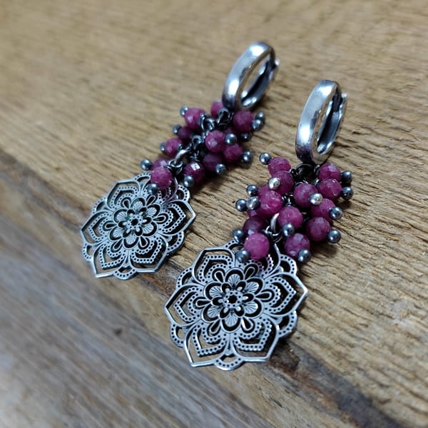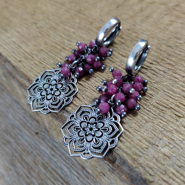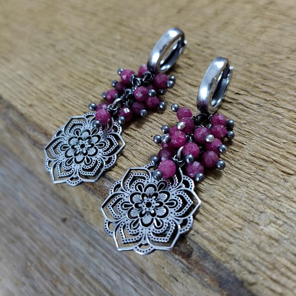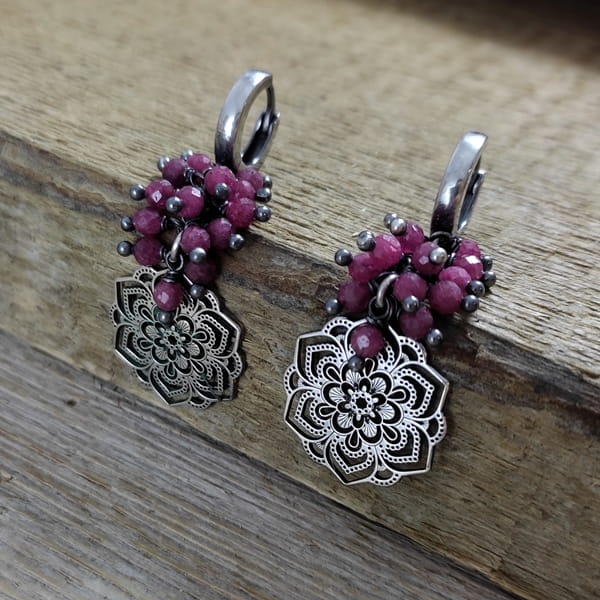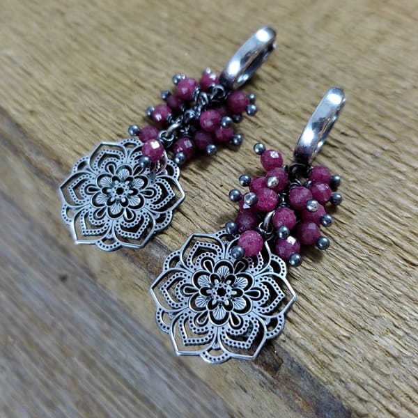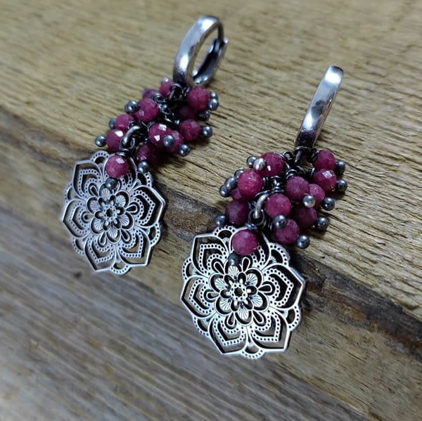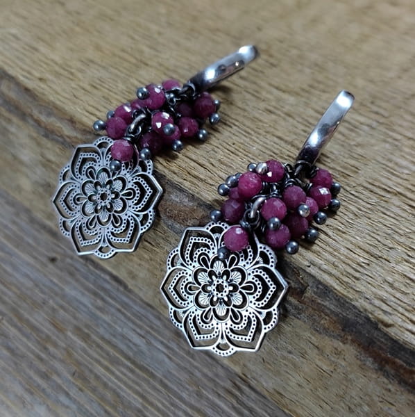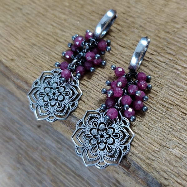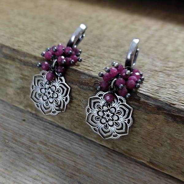 Kolczyki - rubin z ażurową rozetą