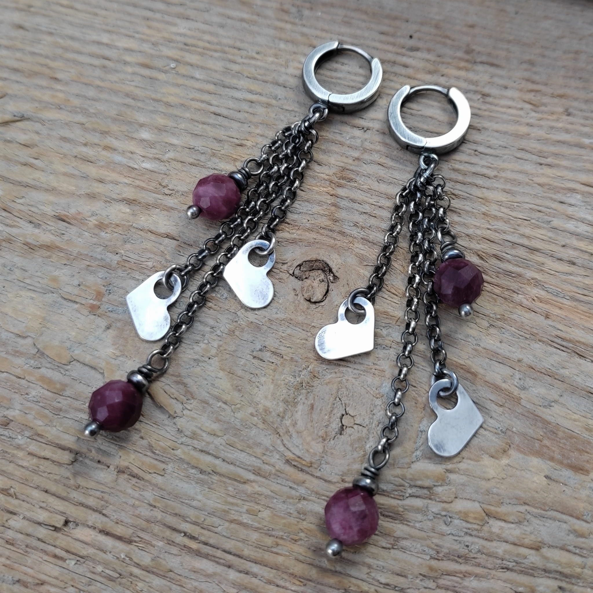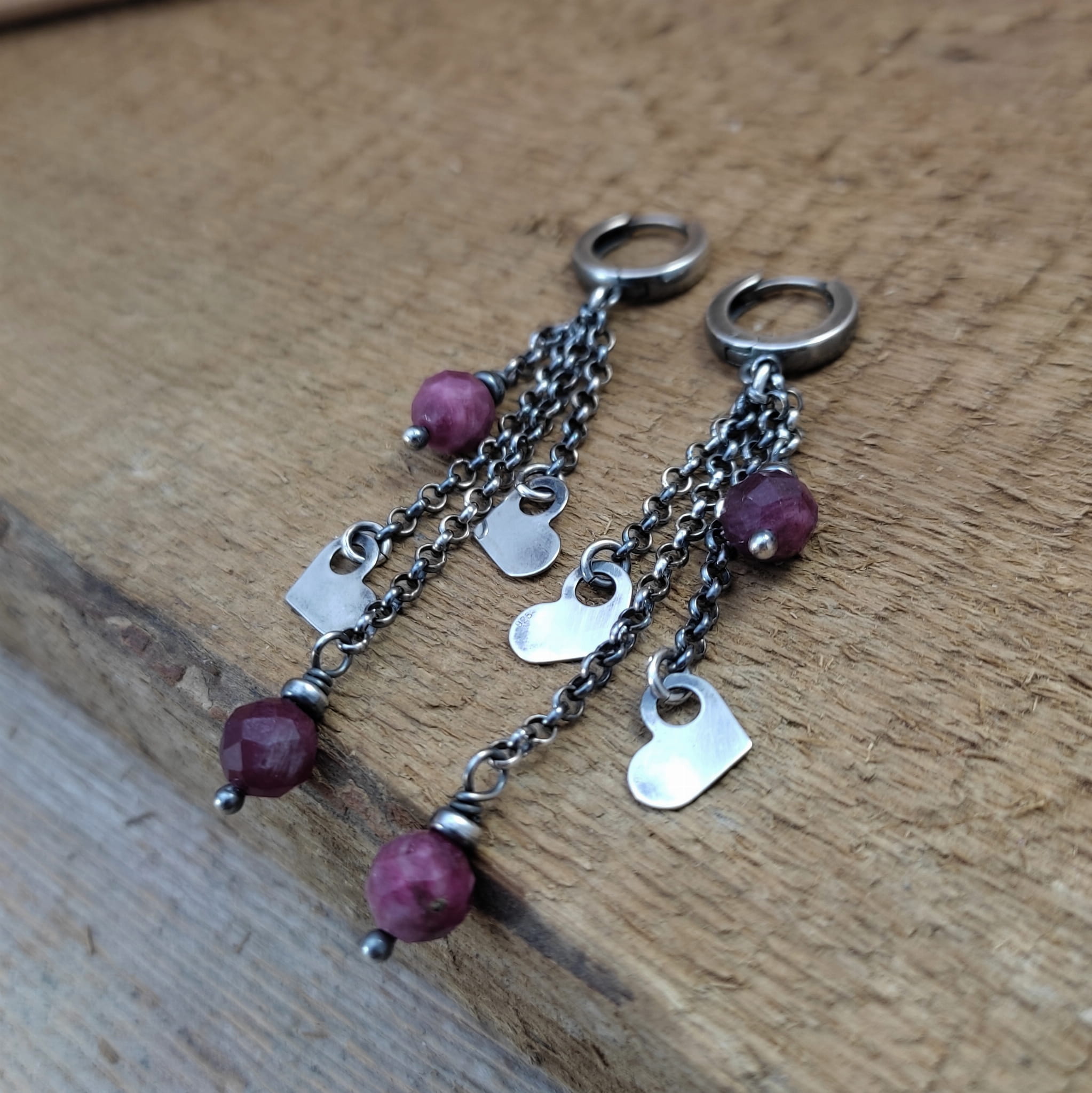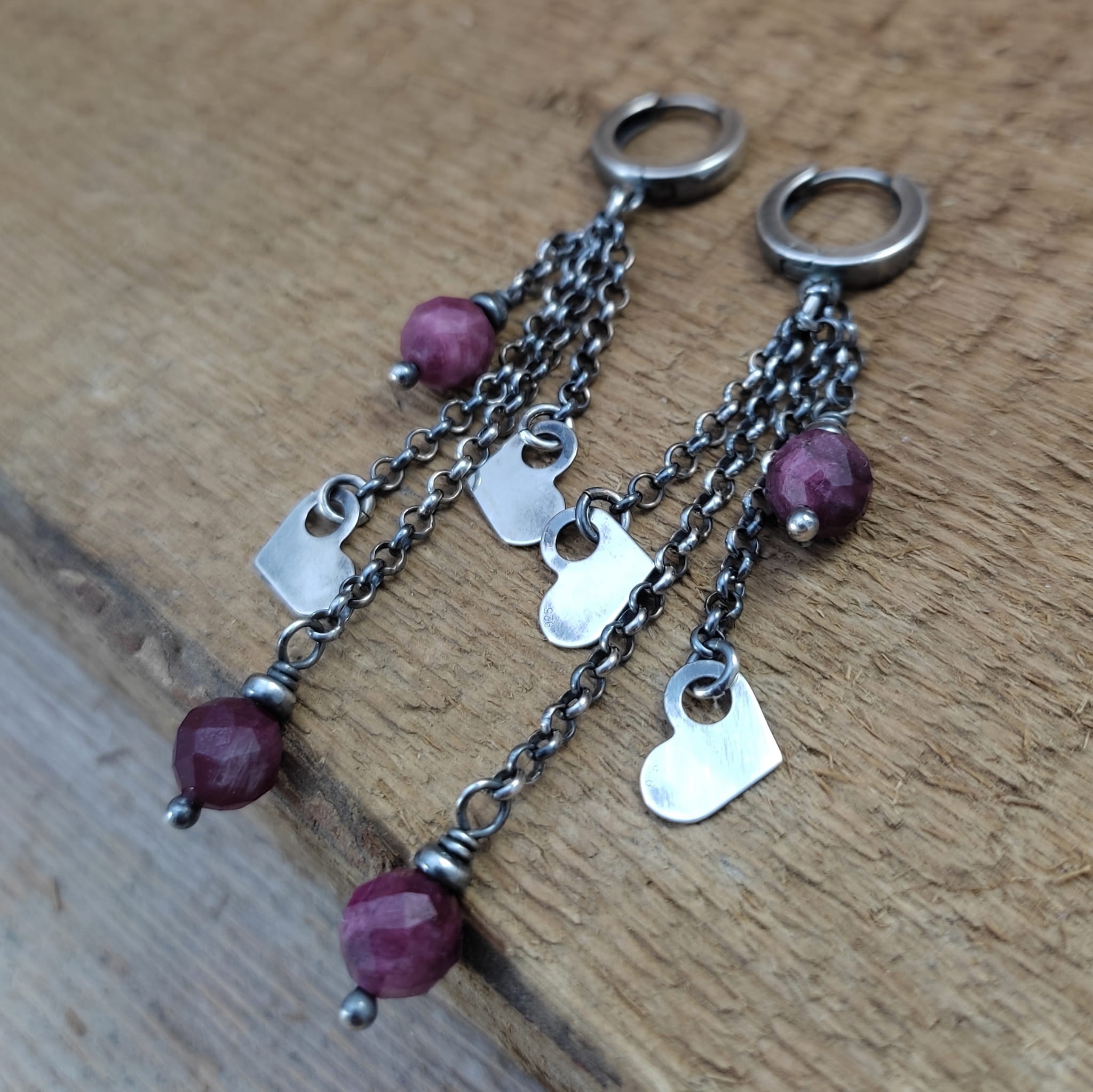 Kolczyki - serca z turmalinem