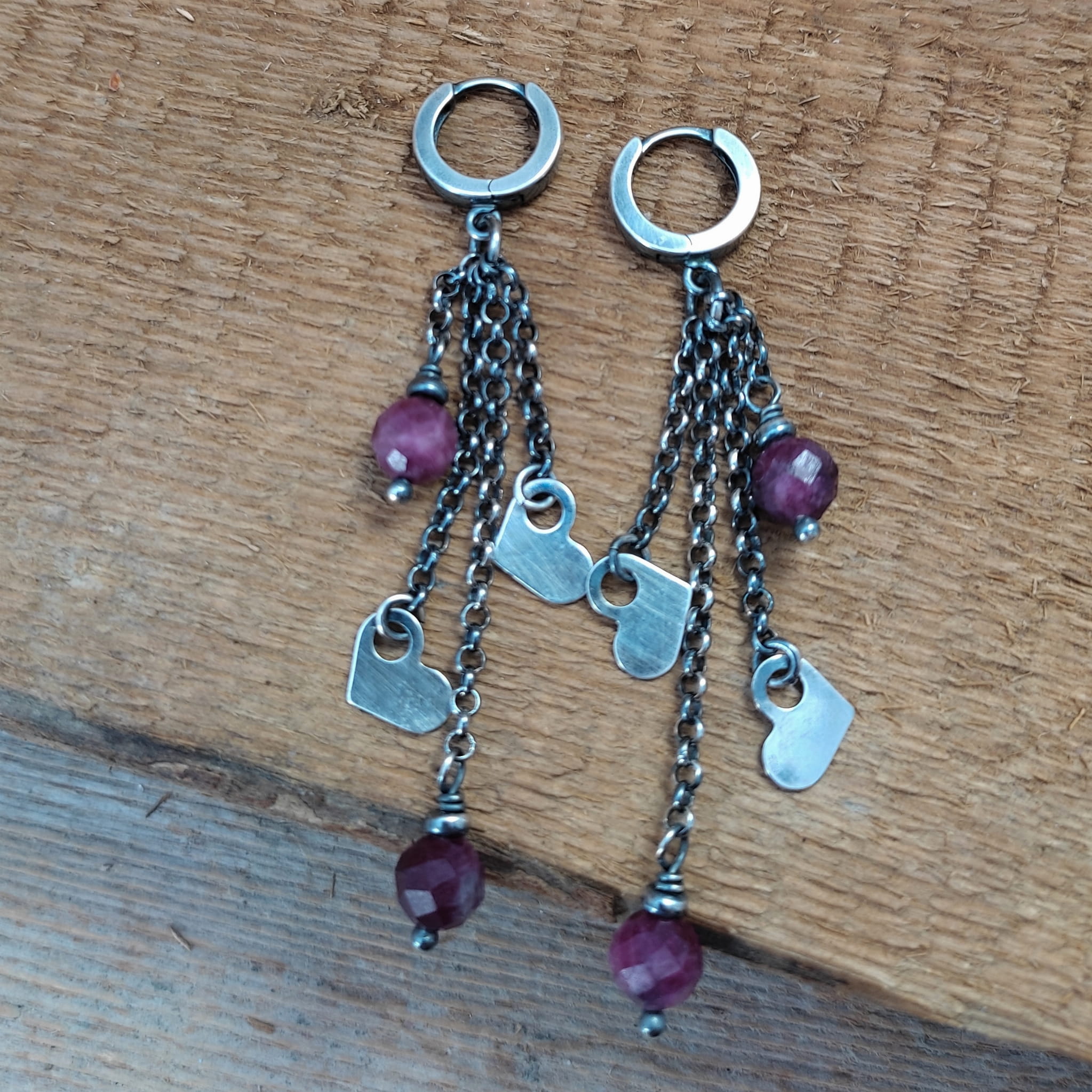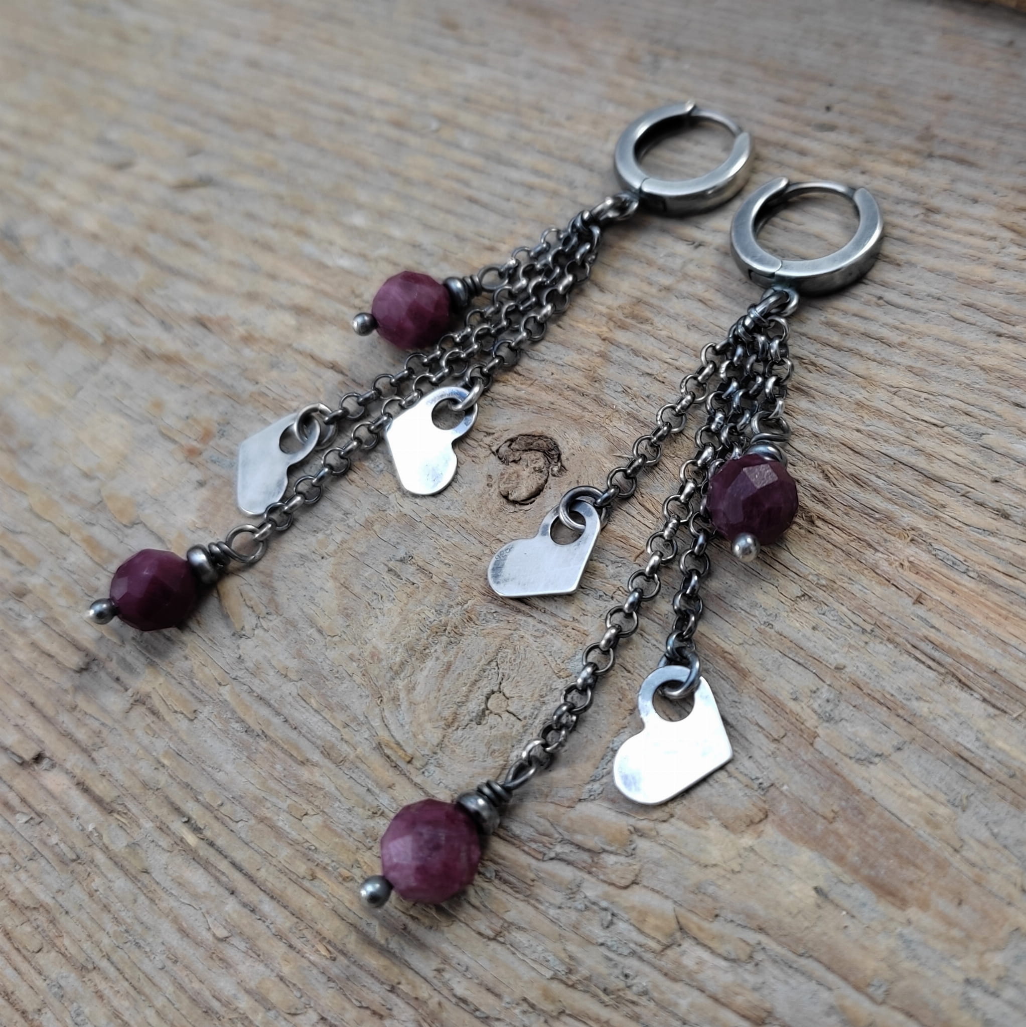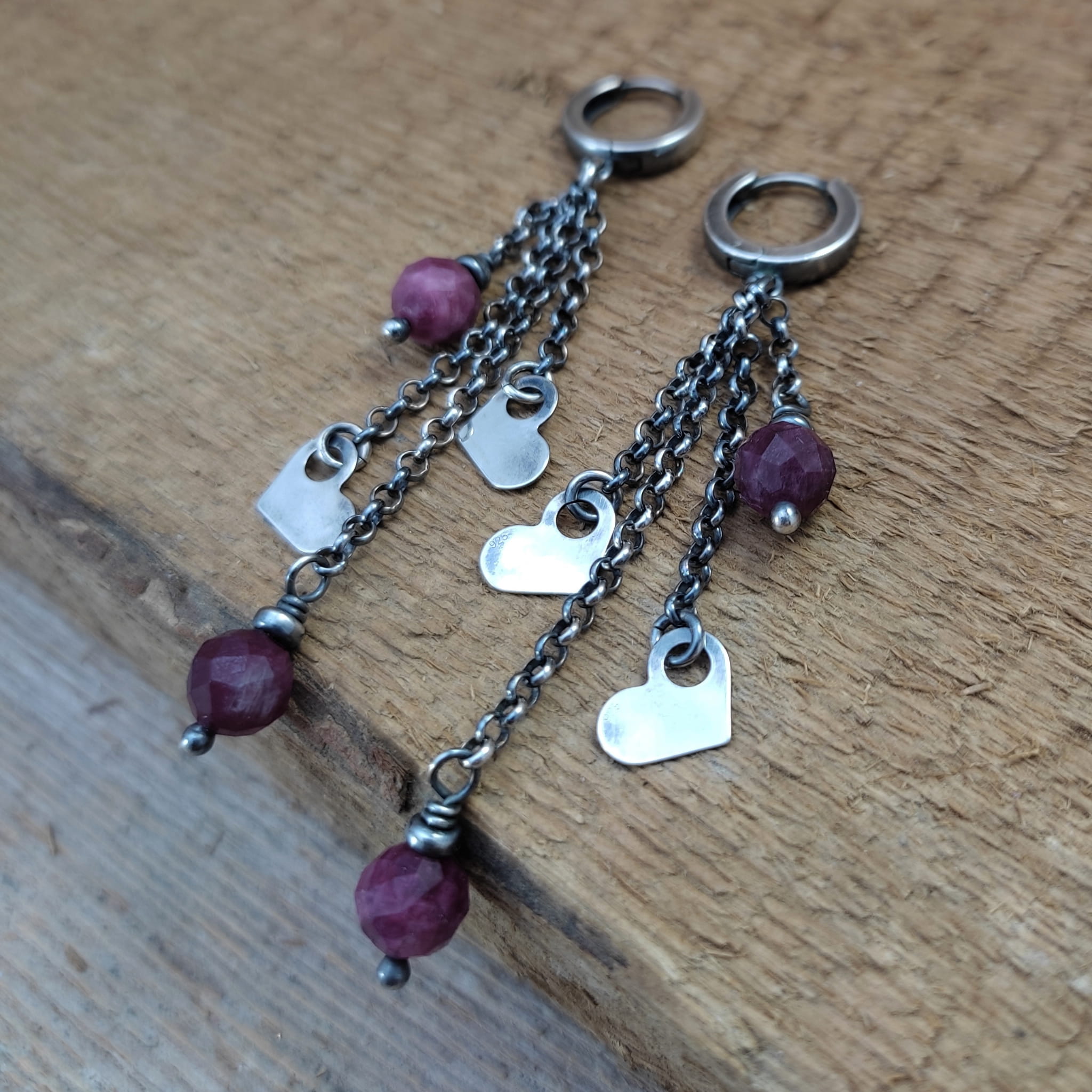 Kolczyki - serca z turmalinem