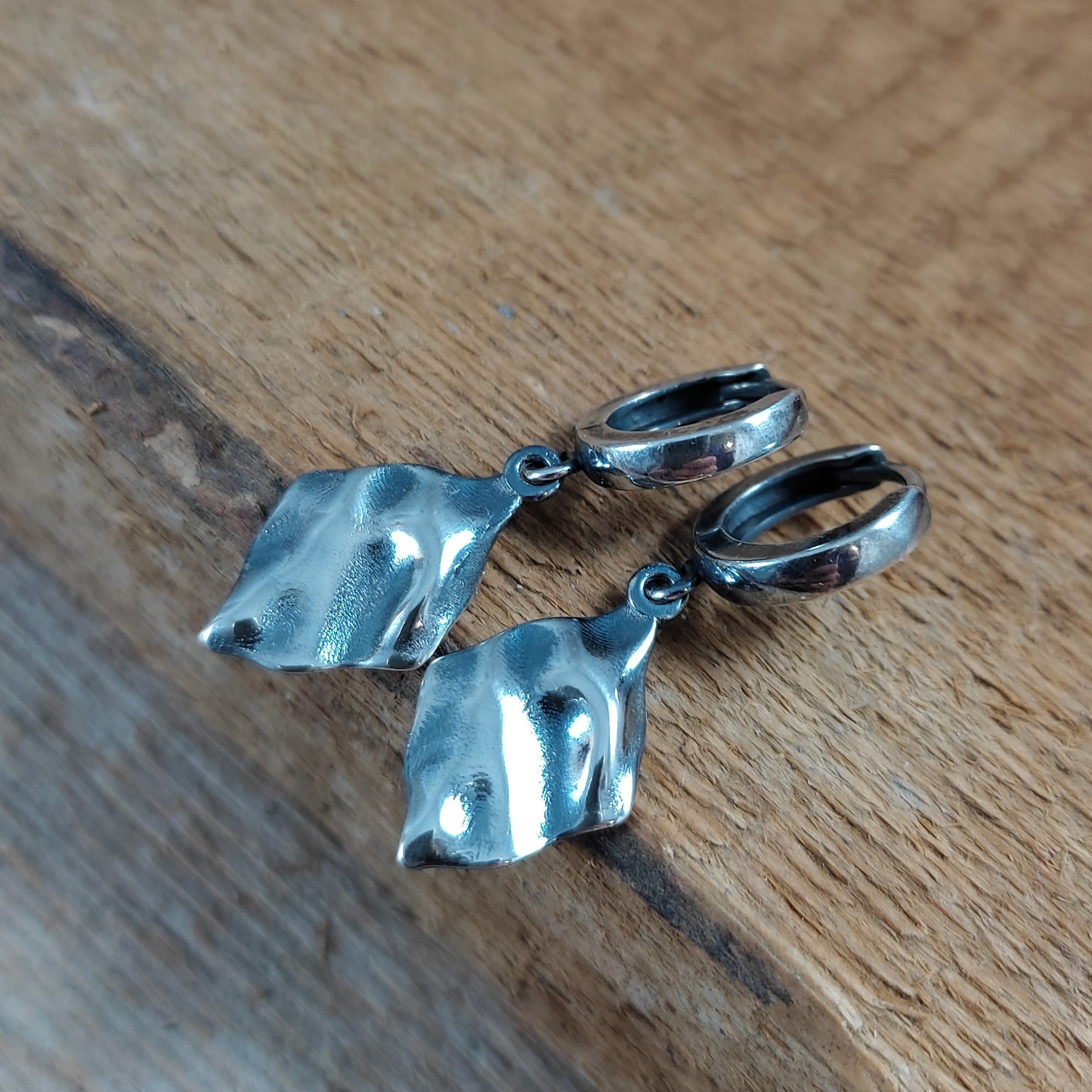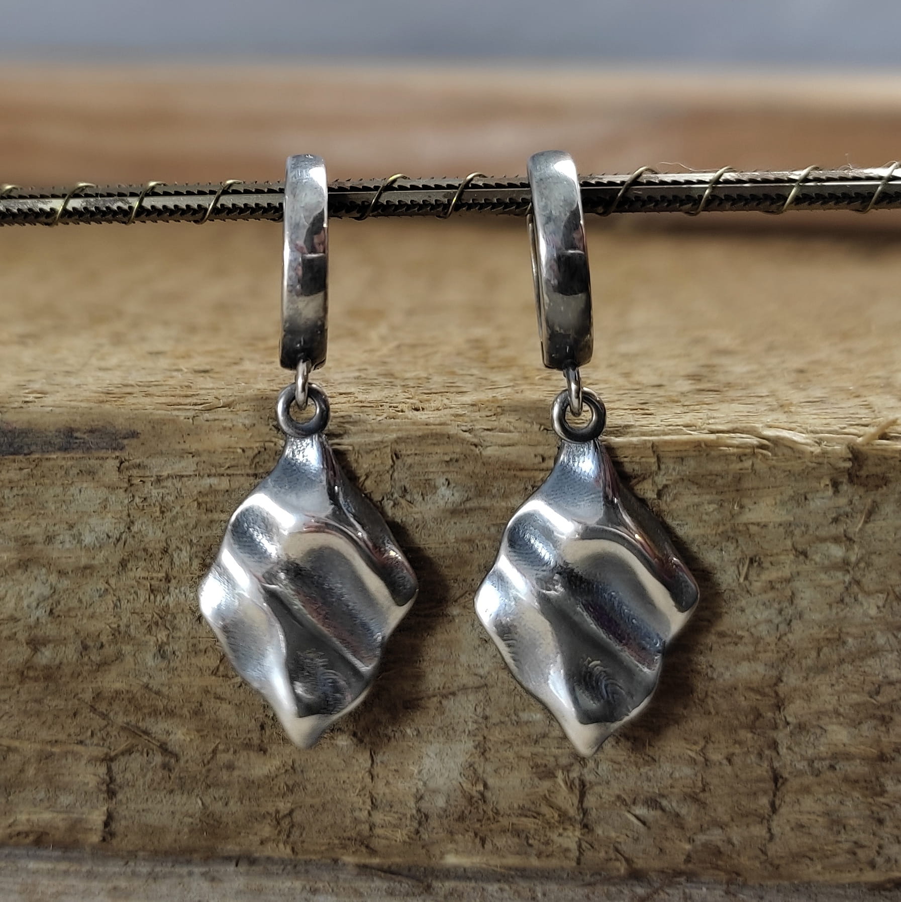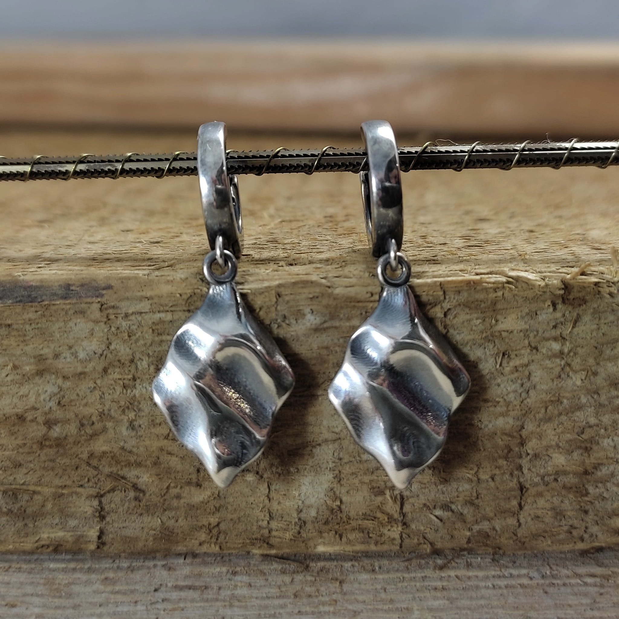 Kolczyki srebrne z pogniecionymi rombami
