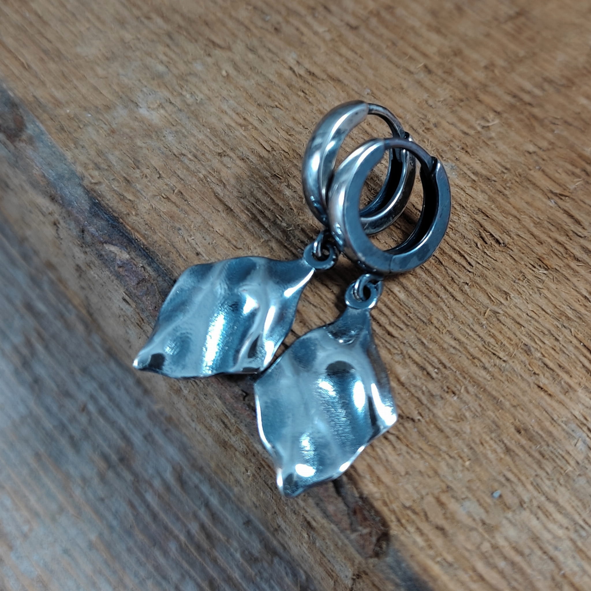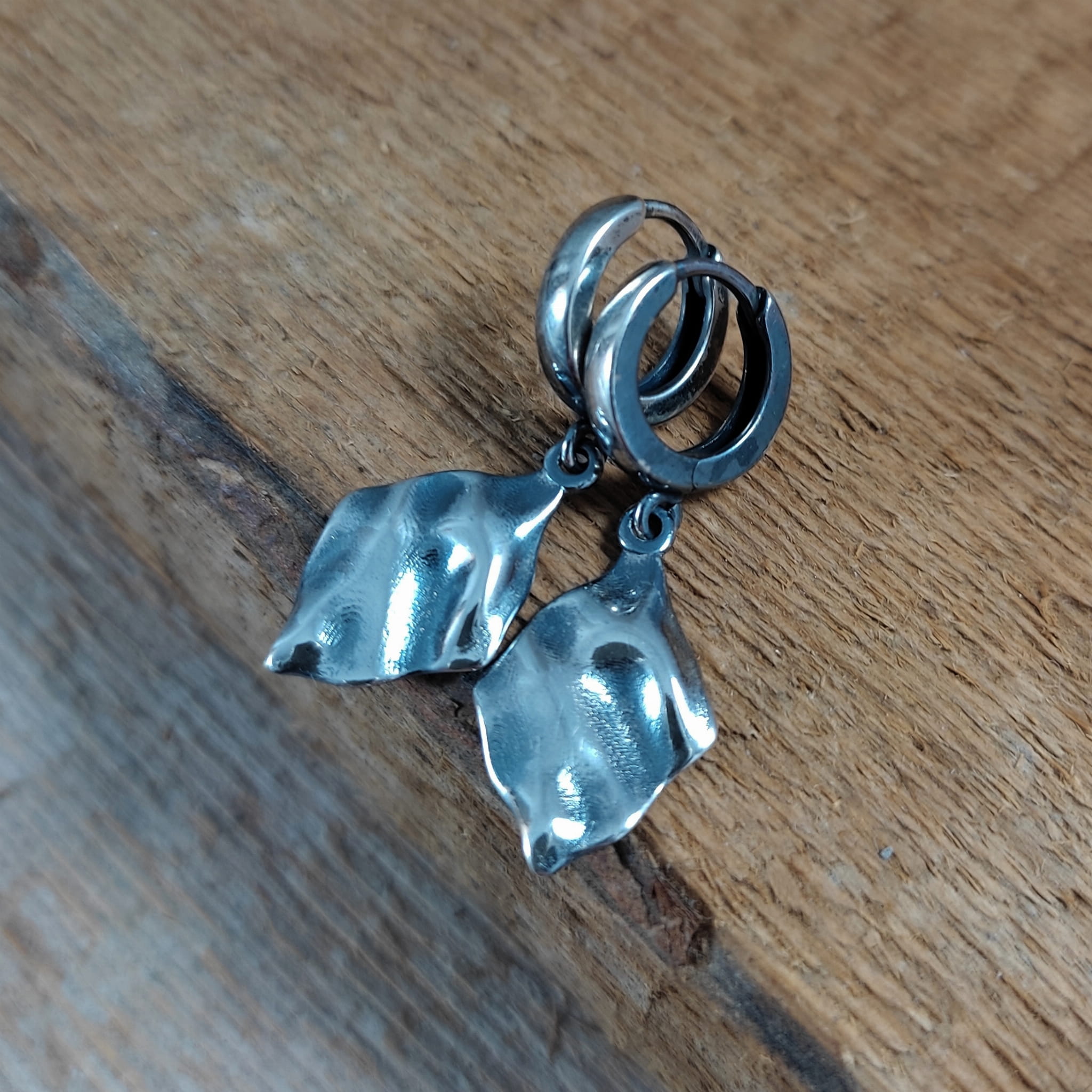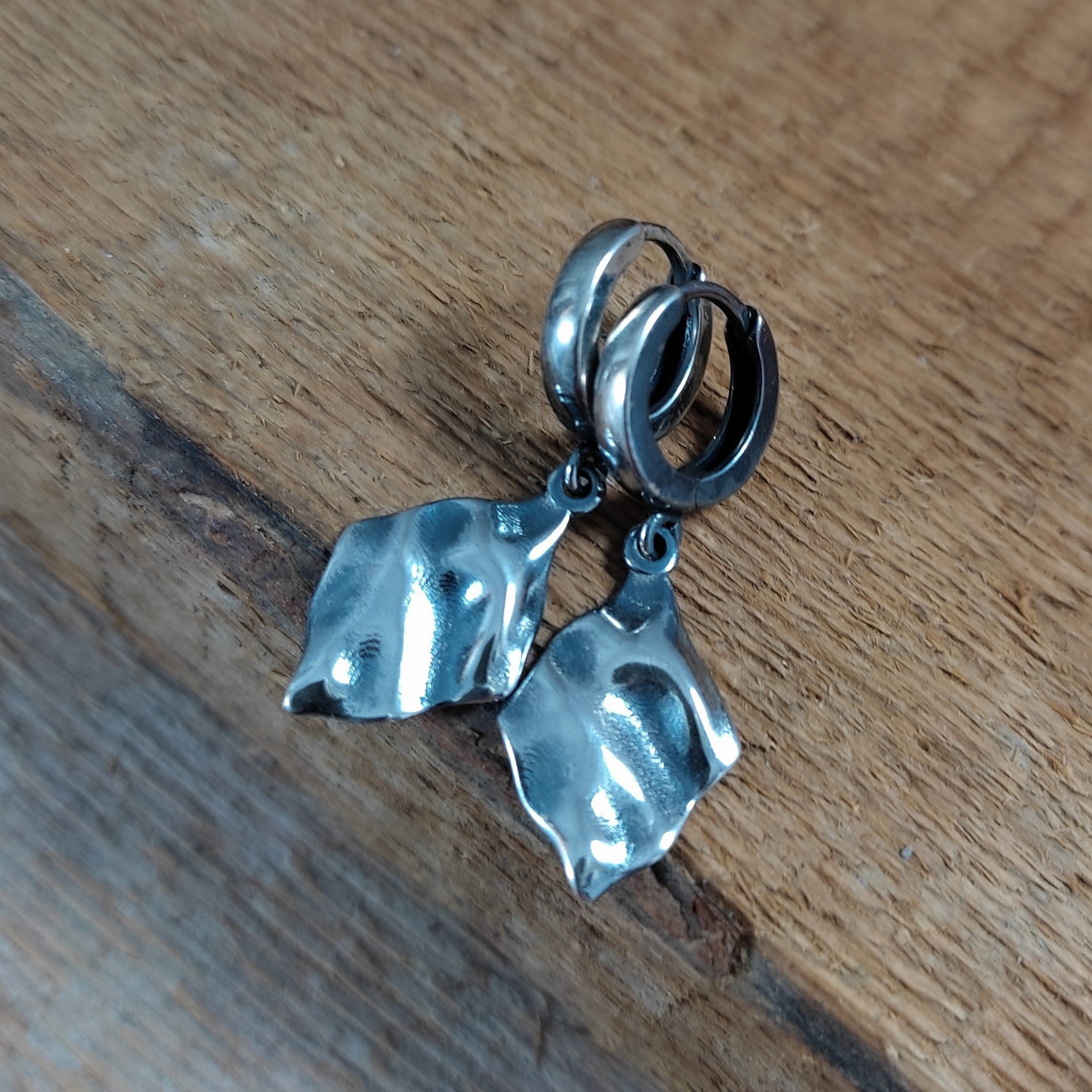 Kolczyki srebrne z pogniecionymi rombami