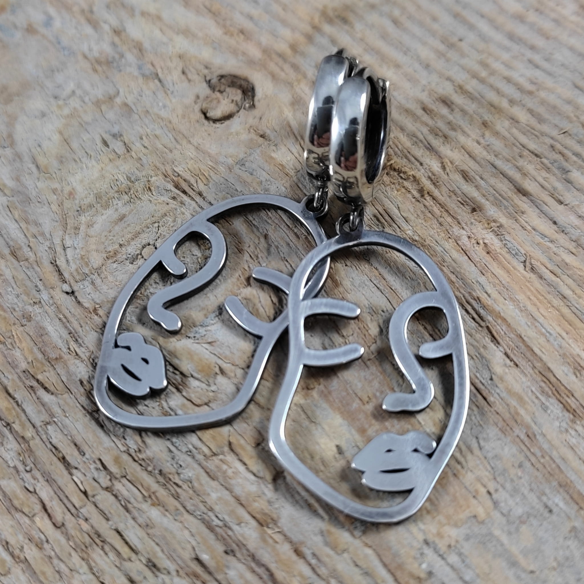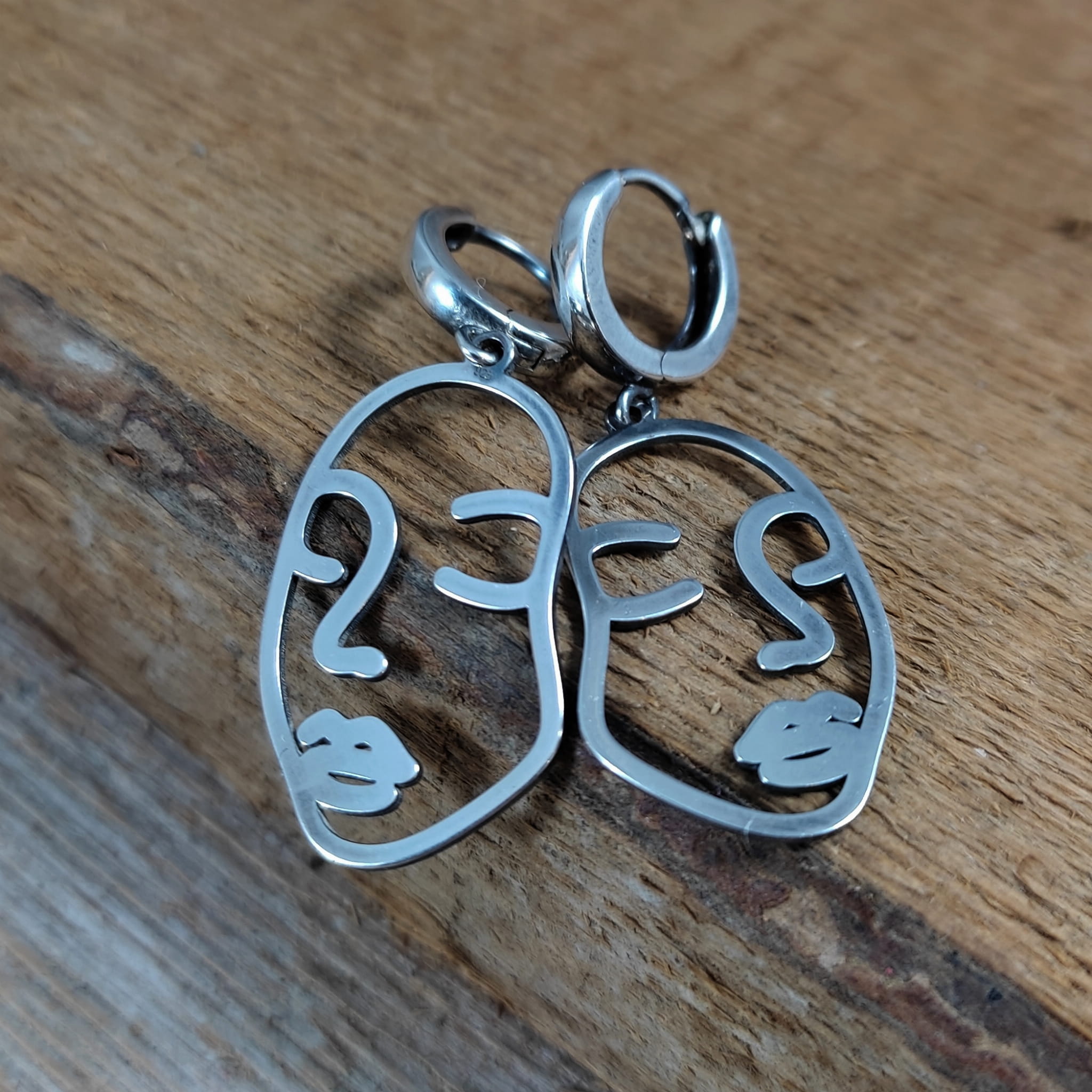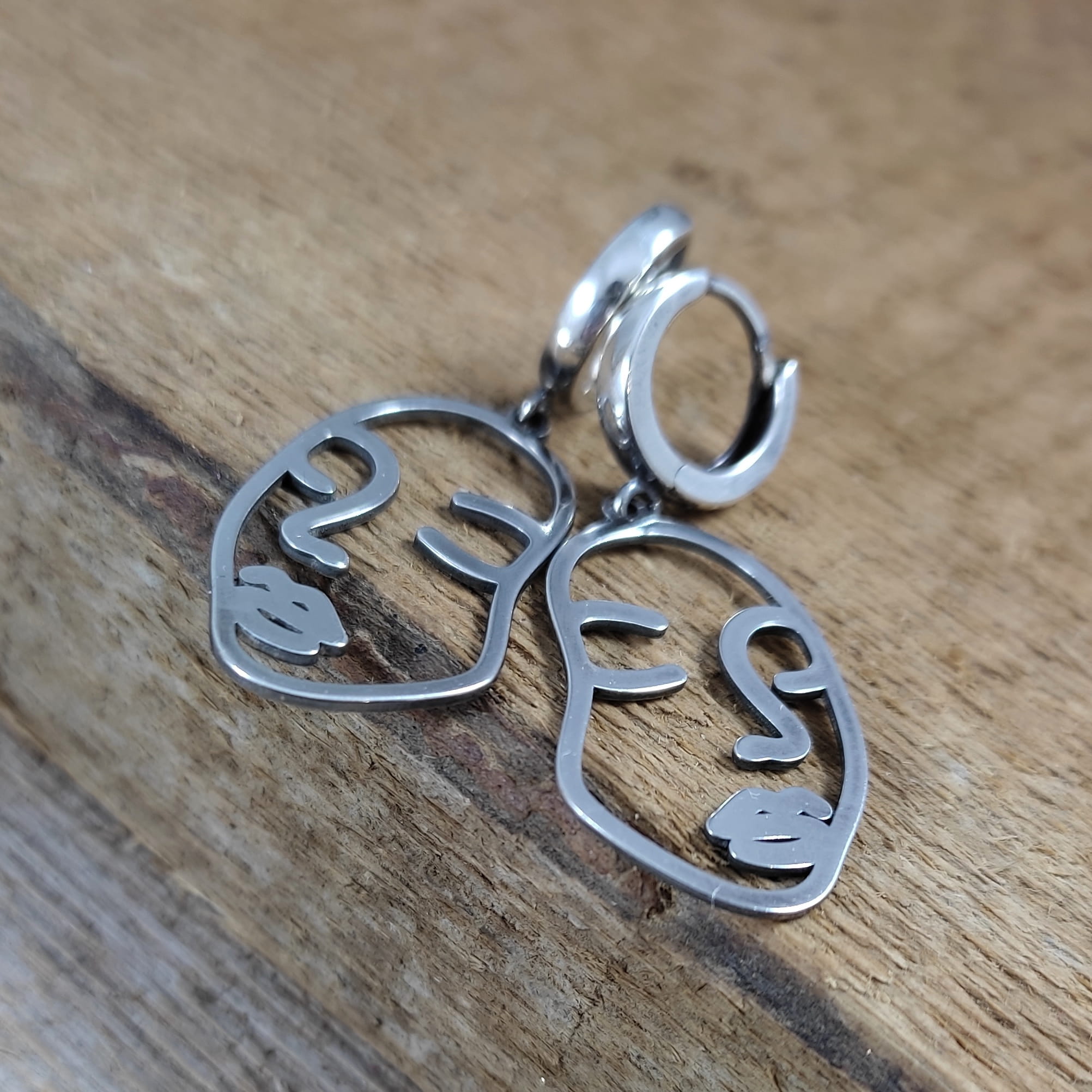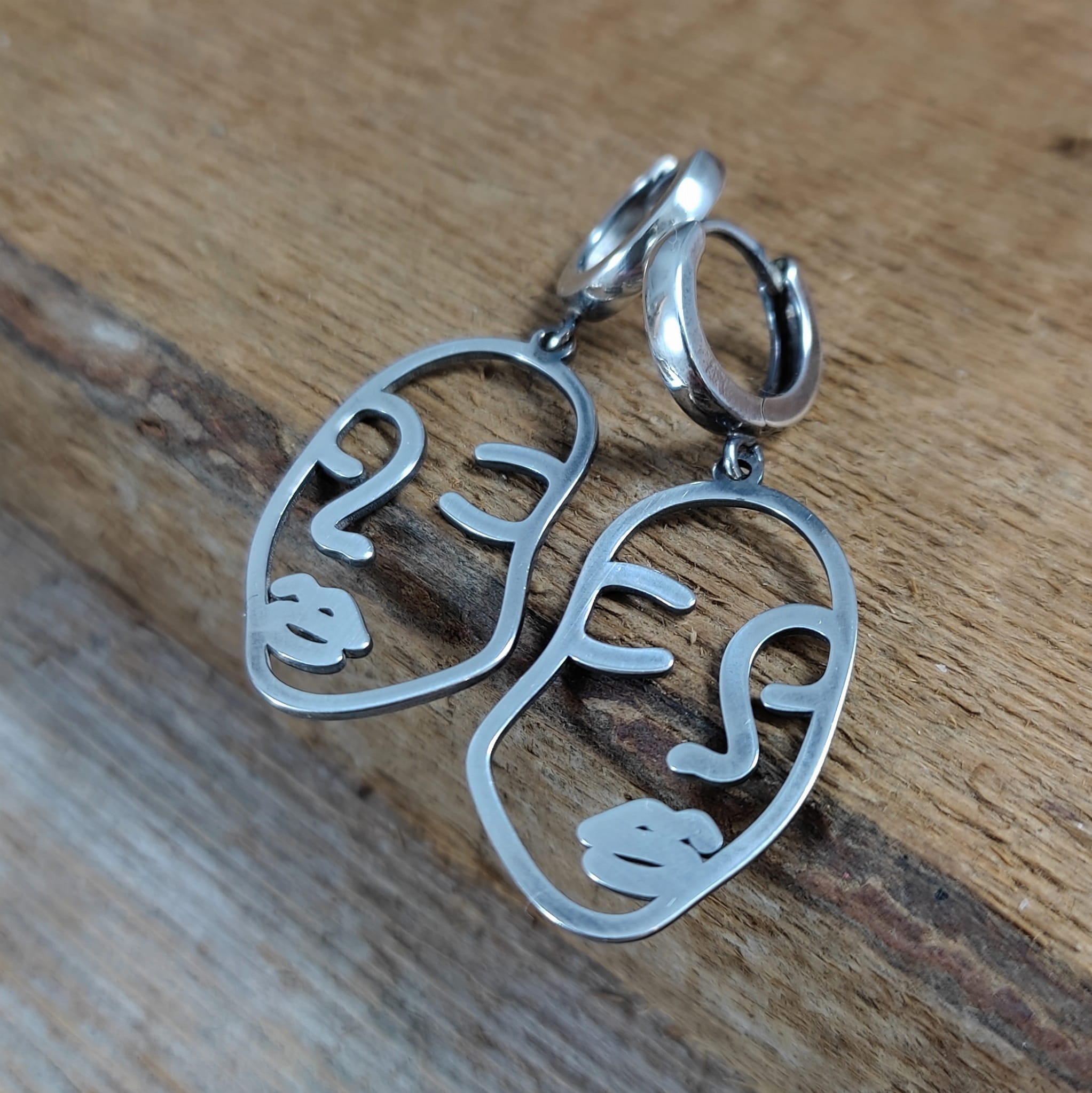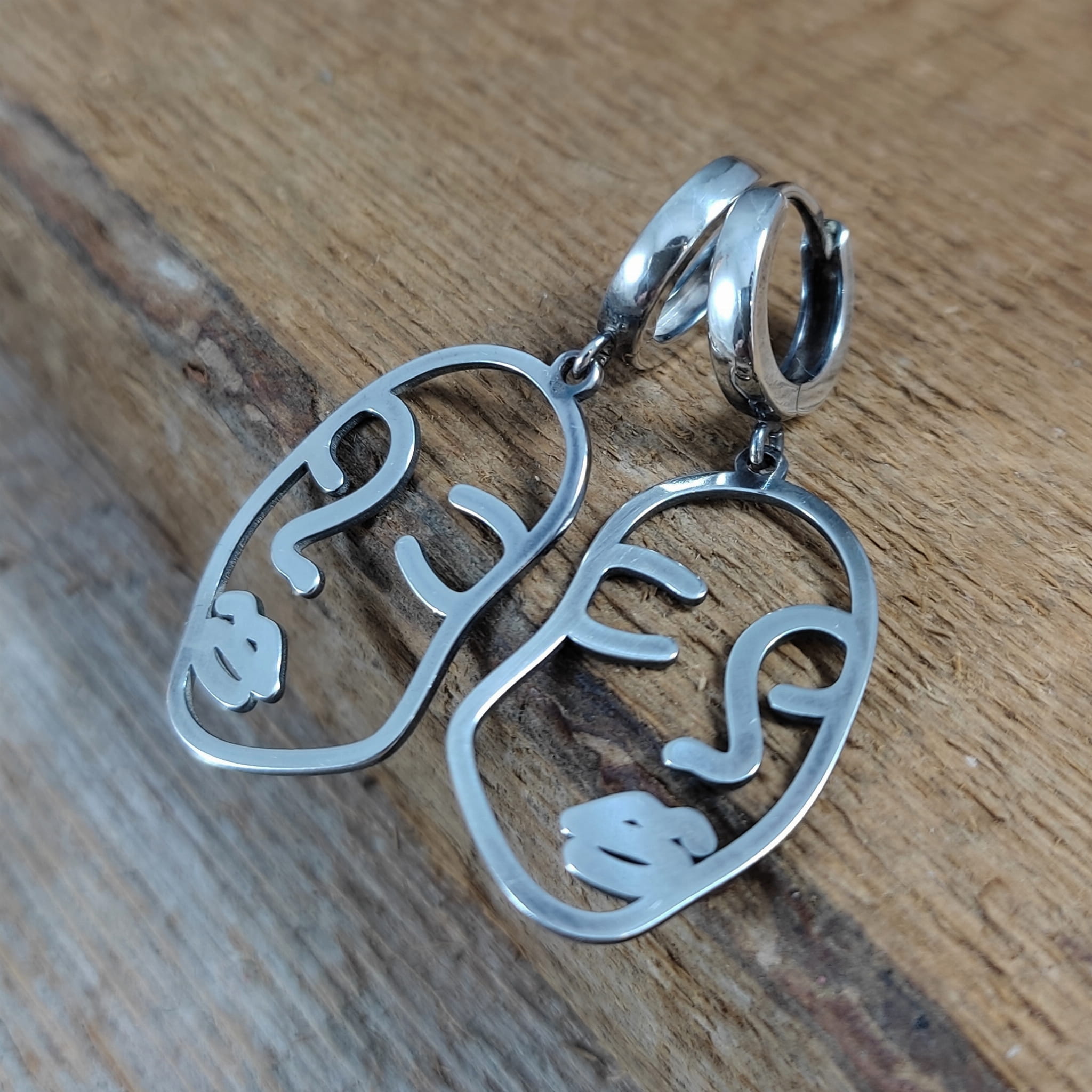 Kolczyki w kształcie twarzy kobiety. Długość całkowita kolczyków wynosi ok. 40 mm. Wymiary blaszki to 27,3/16,4 mm. Kolczyki zostały wykonane w całości ze srebra 925, srebro oksydowane. Zapakowane w eleganckie pudełko.